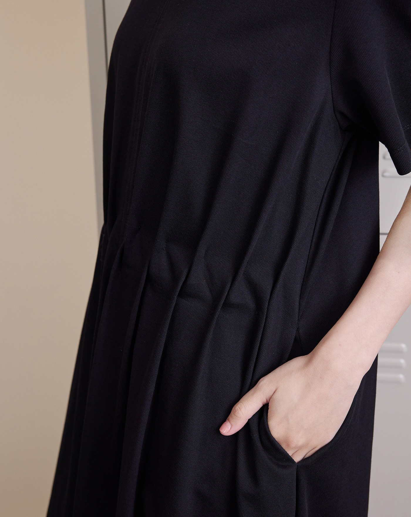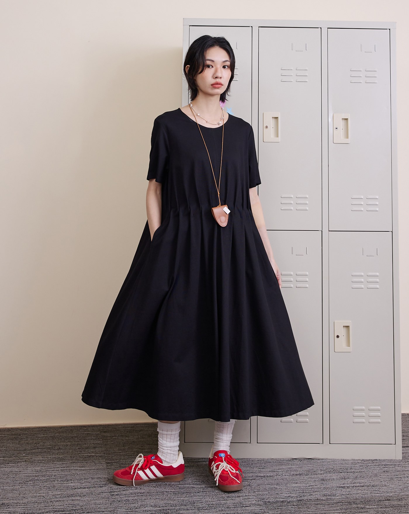 顯瘦打摺背後透氣簍空剪接洋裝(兩色)