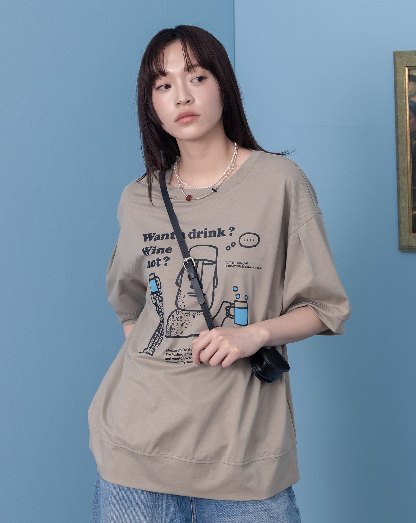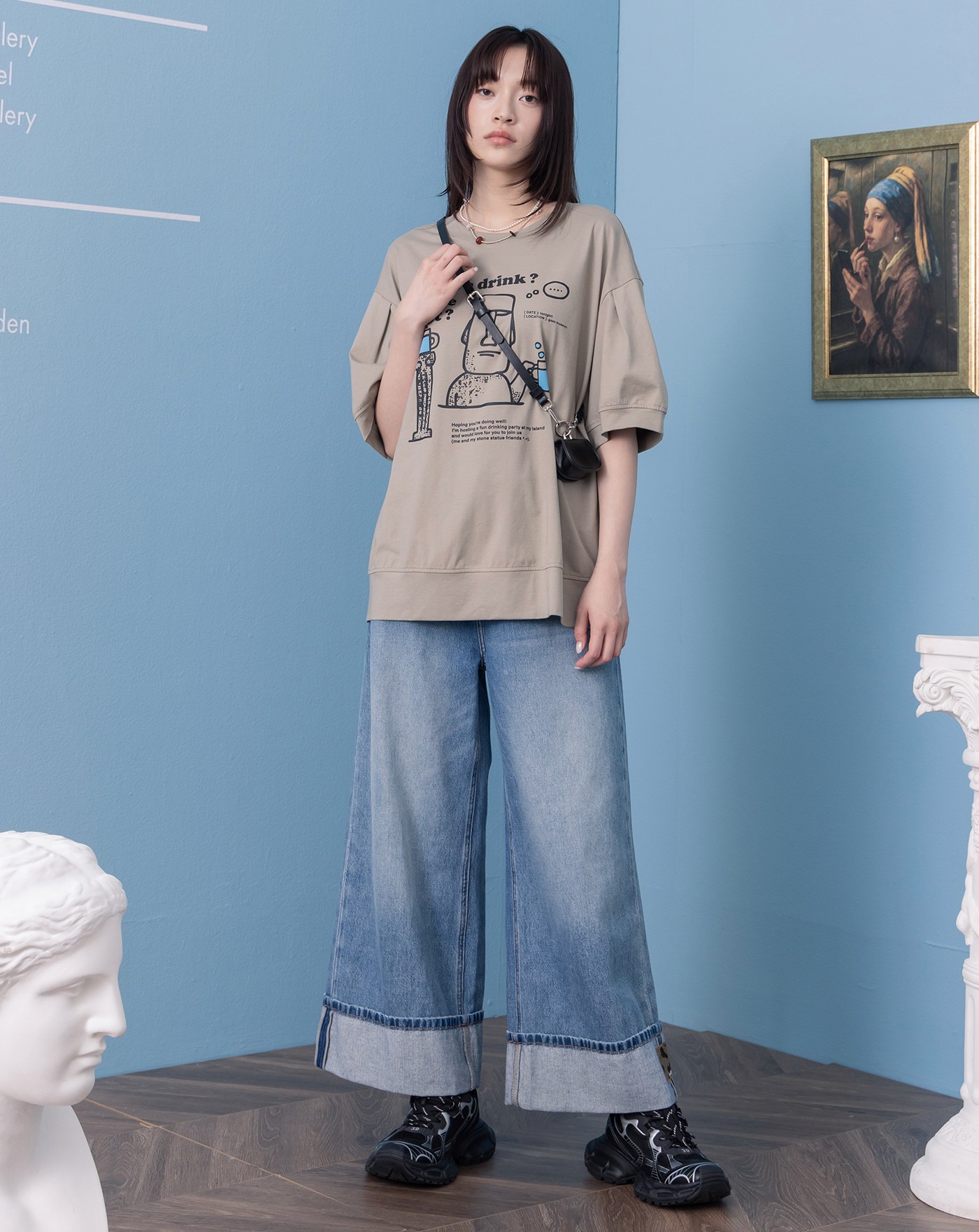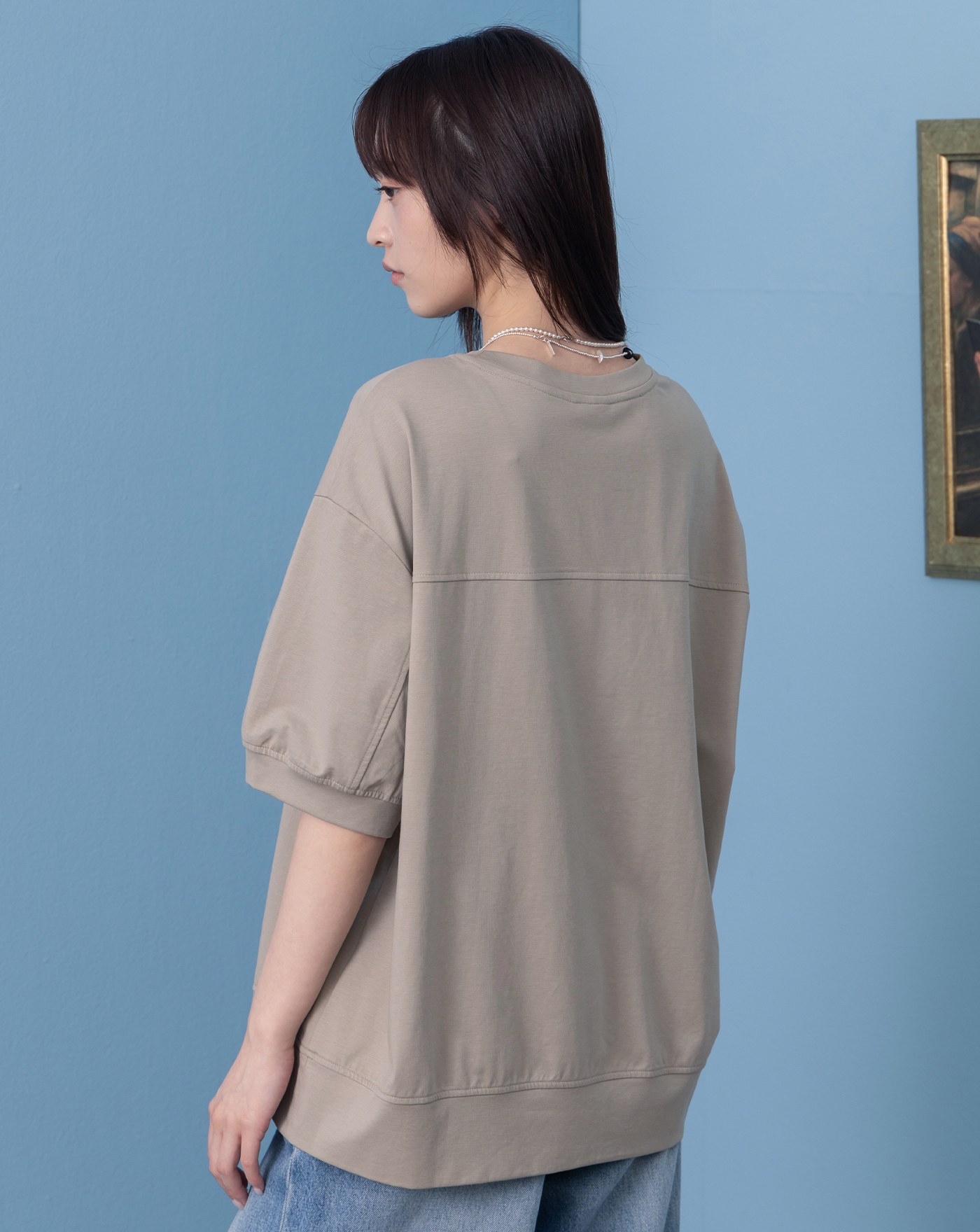 為雕像化妝下擺配色羅紋T恤(兩色)