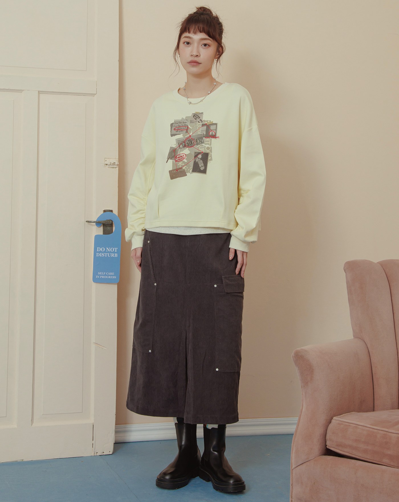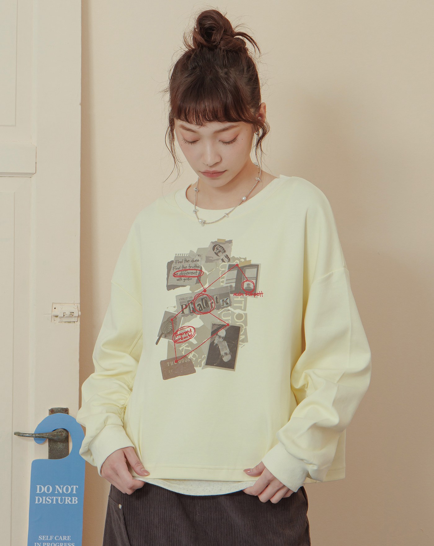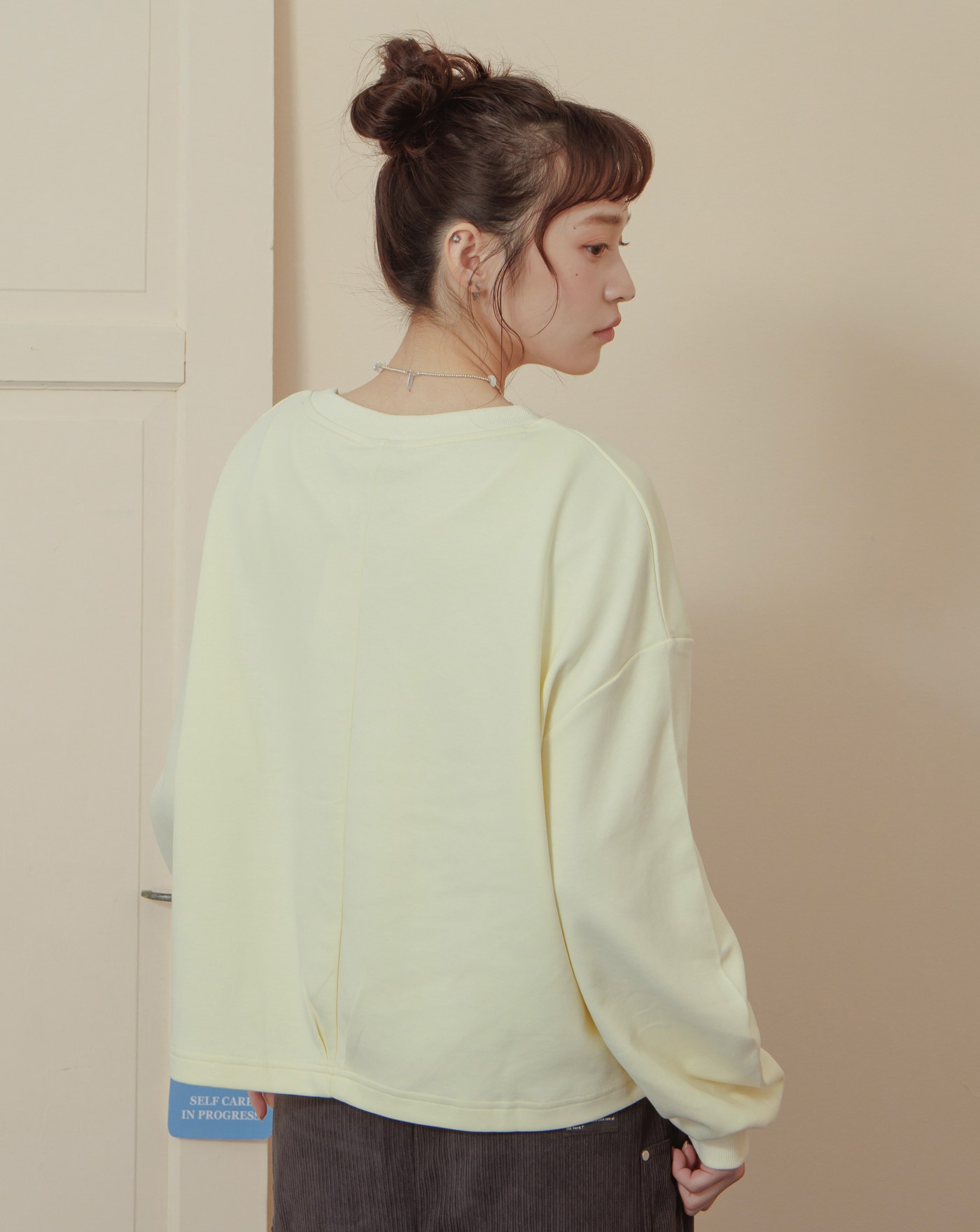 英文標語刺繡配色拼接大學T(兩色)