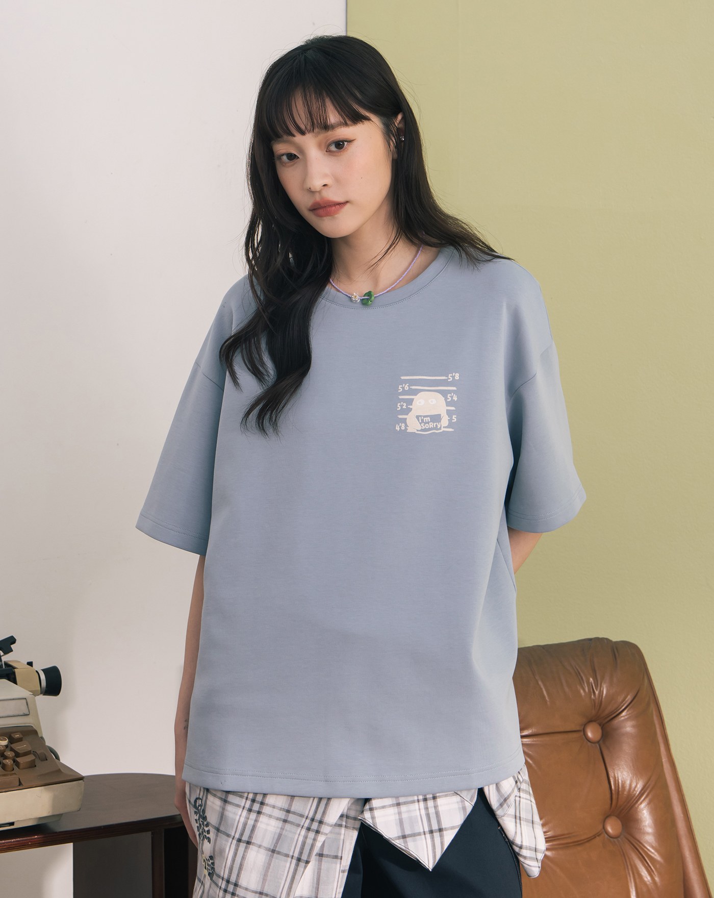 偵探印花假兩件造型涼感T恤(兩色)