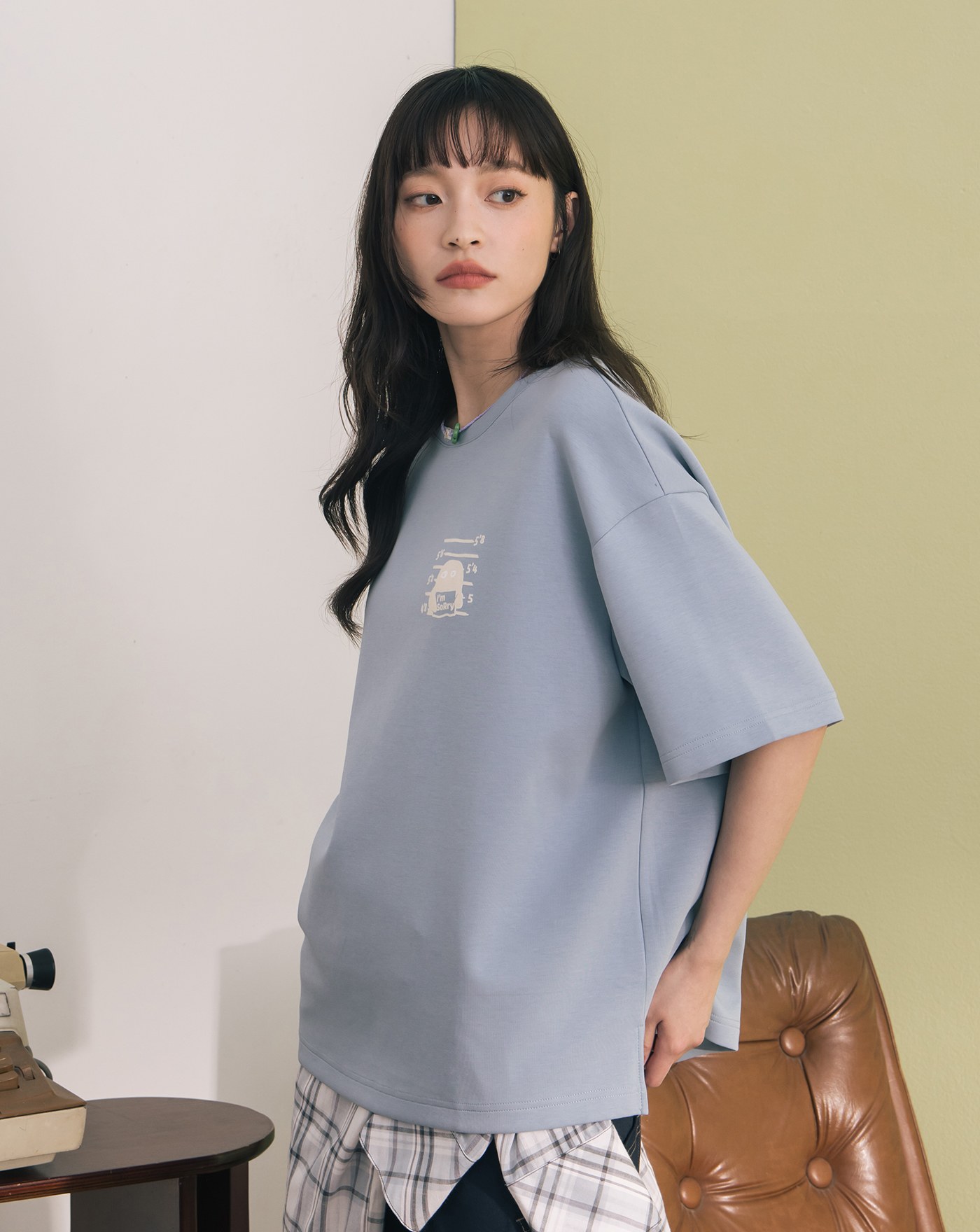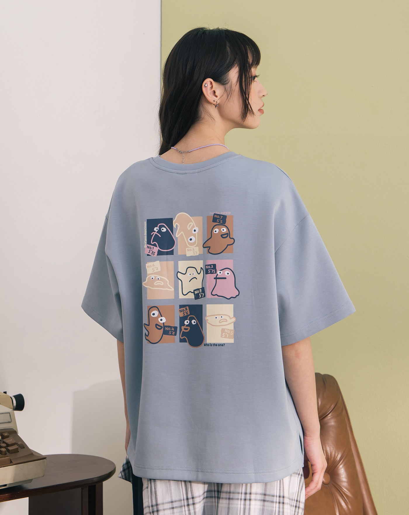➤案發現場圖騰印花格紋寬鬆襯衫(兩色)