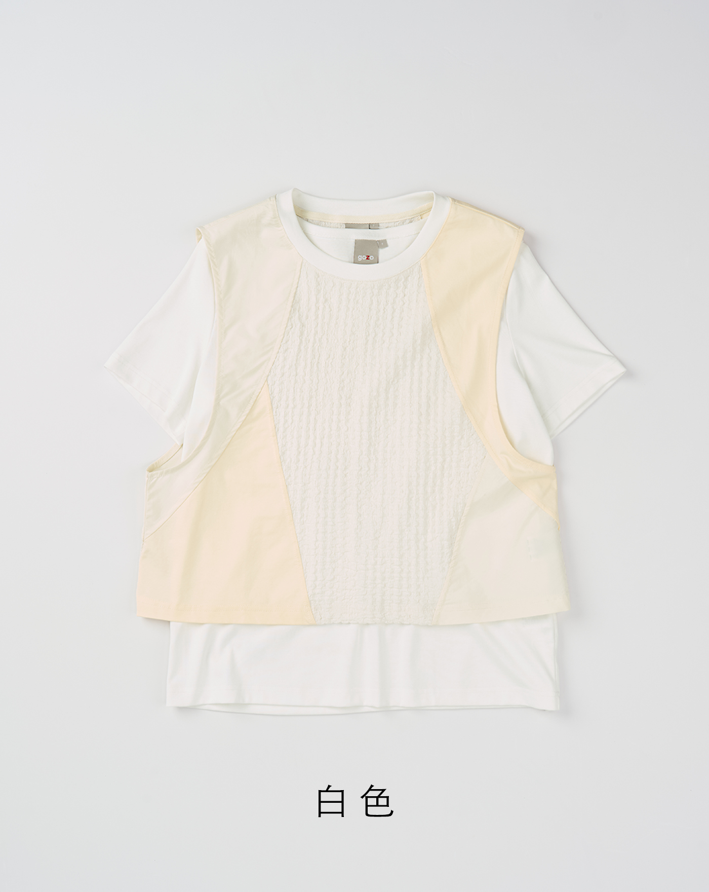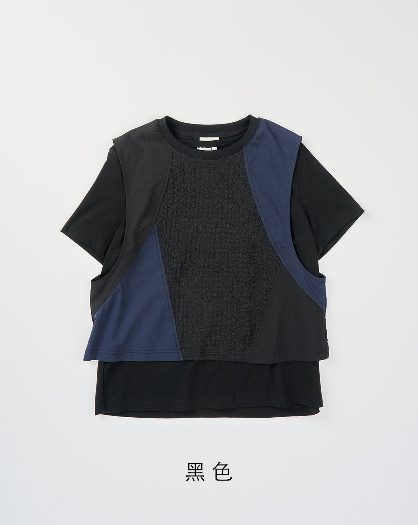 針織背心刺繡火山甜點兩件式T恤(兩色)
