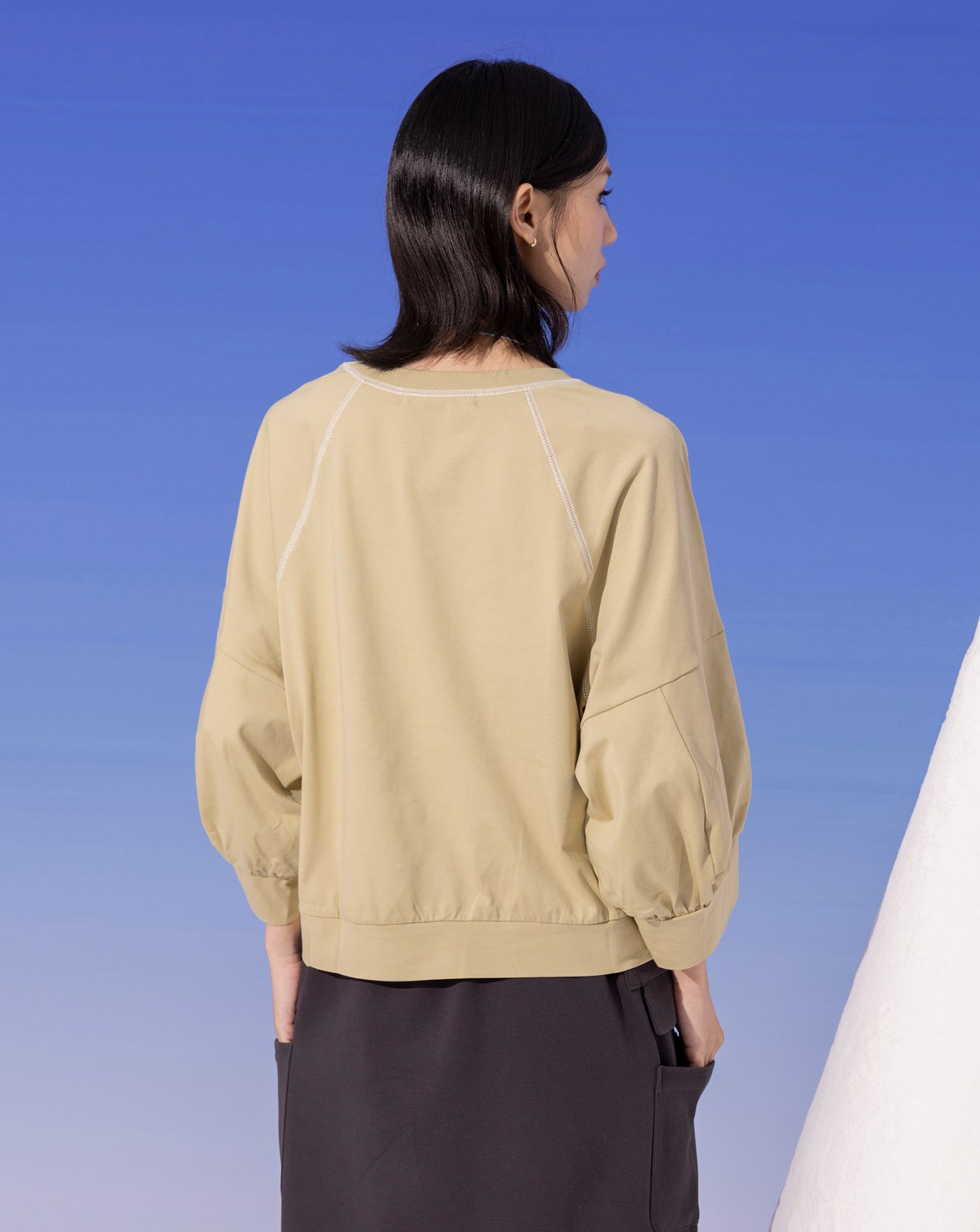 小鑰匙細坑條七分澎袖上衣(兩色)