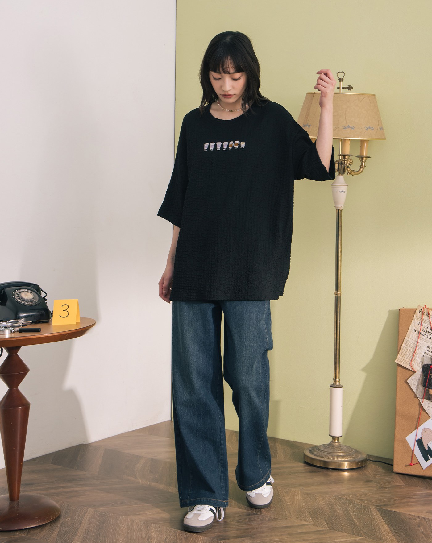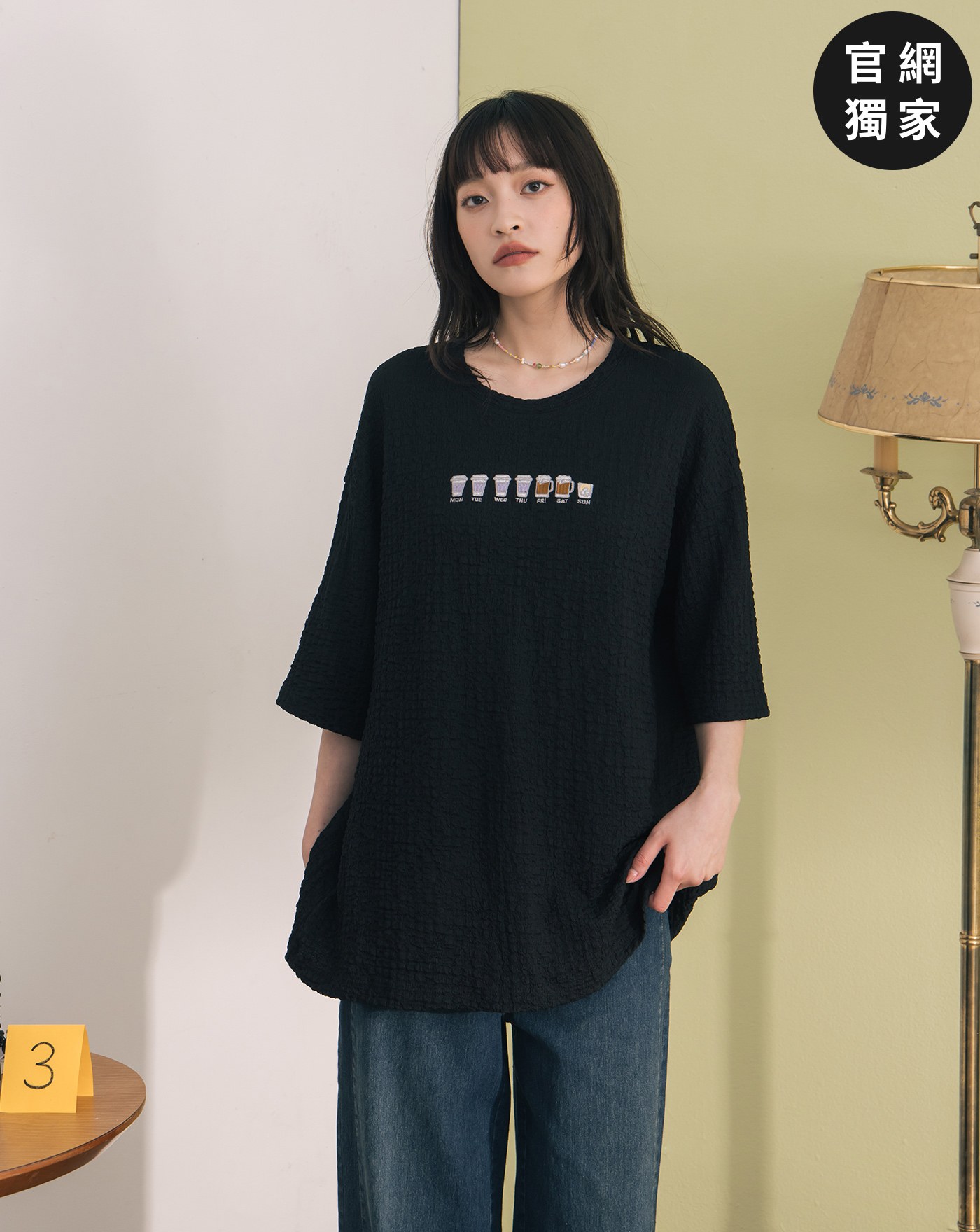 CLASSIC漂浮感繡花皺皺織紋上衣(兩色)