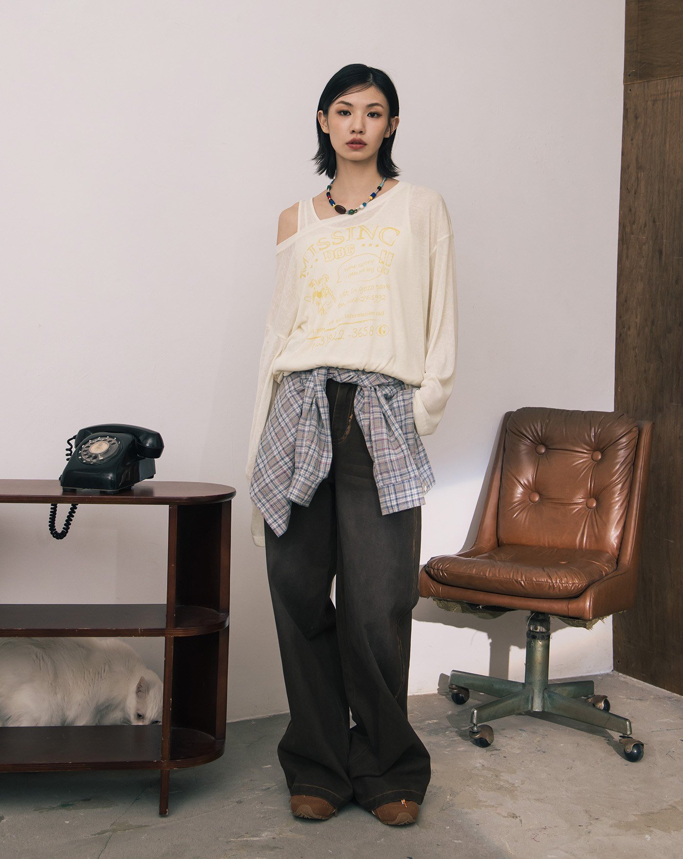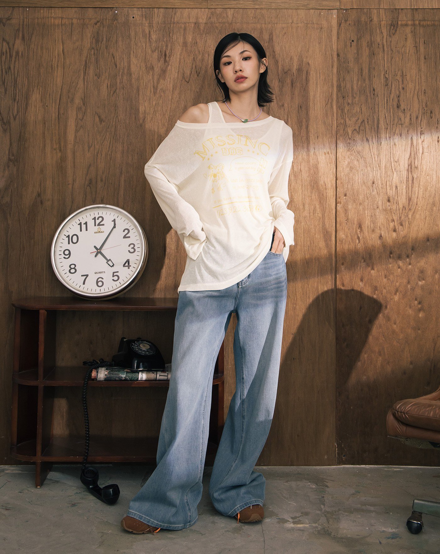 A|復古風線條刷色水洗牛仔寬褲(兩色)
