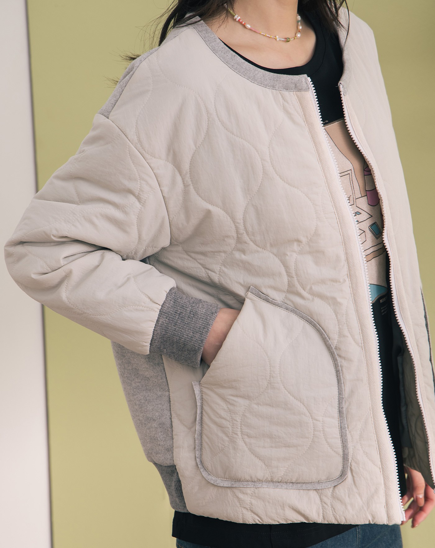 ➤發熱異材質拼接衍縫鋪棉背心(兩色)