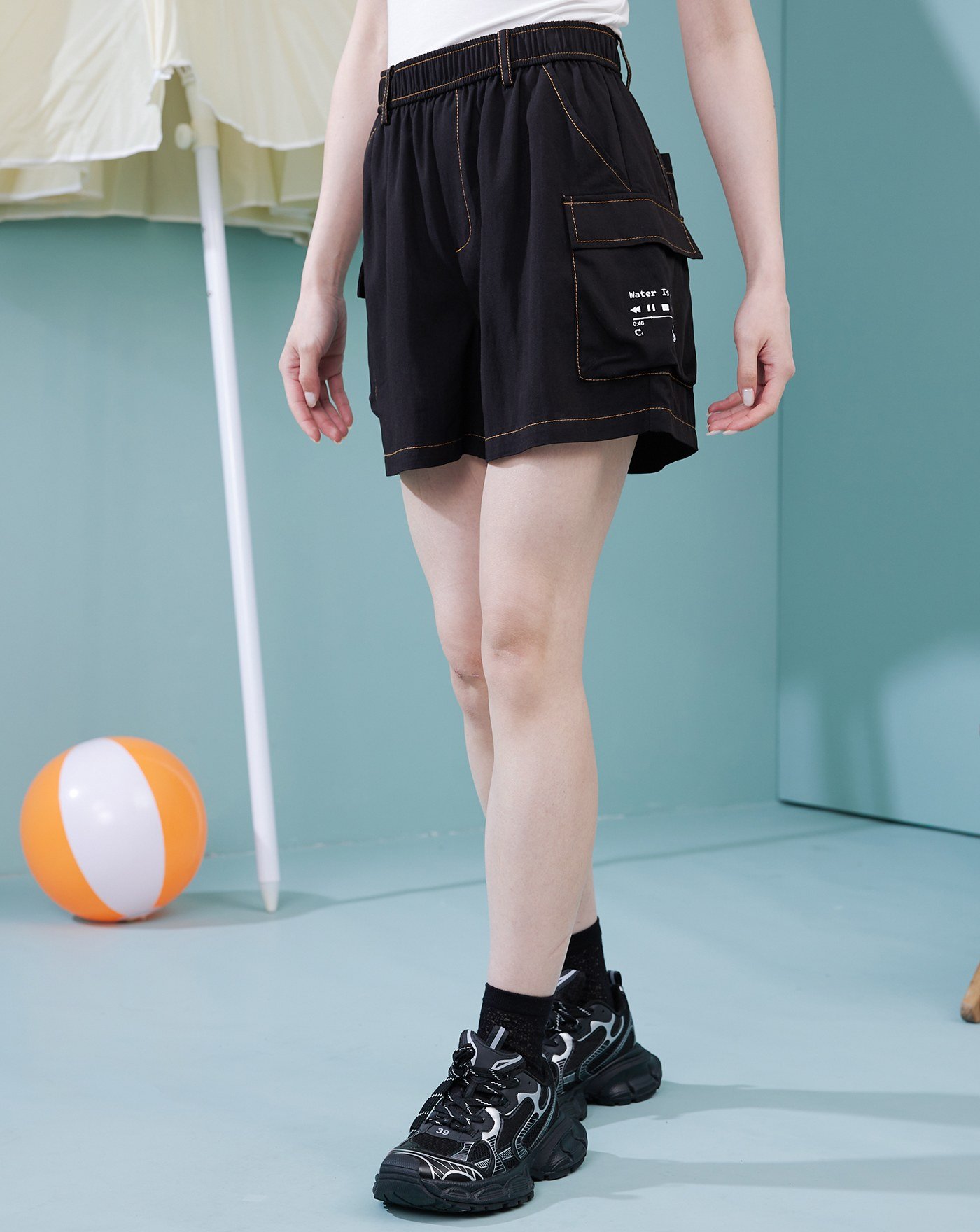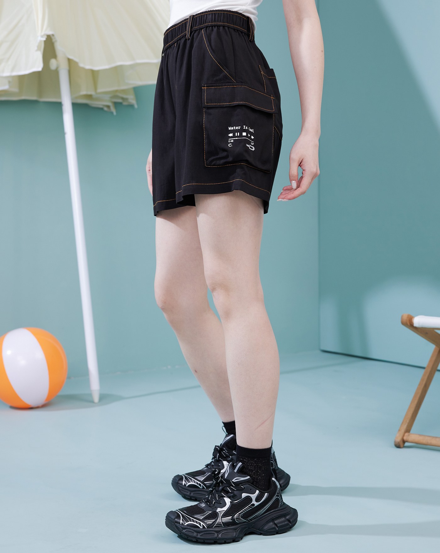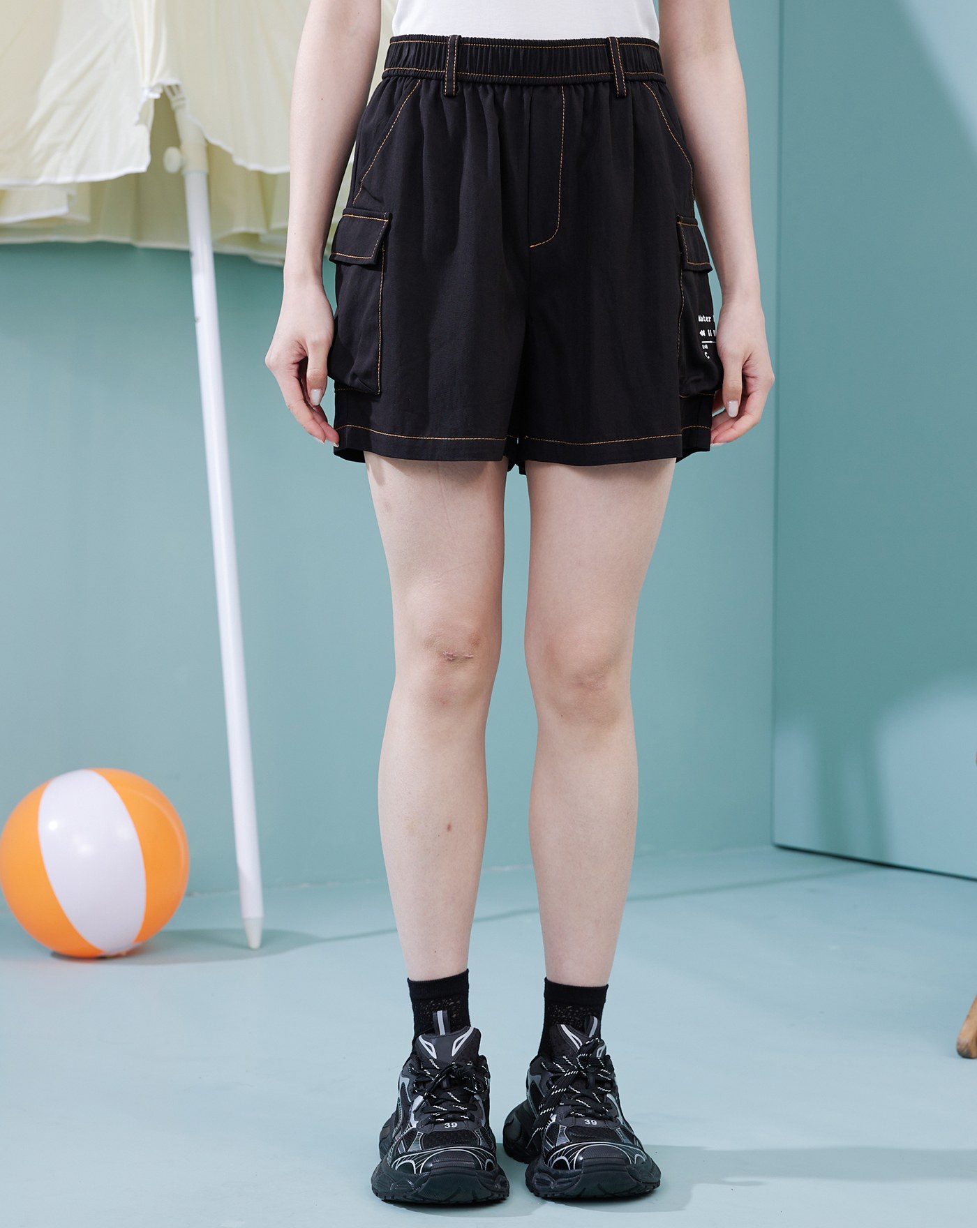 天絲棉皮標鬆緊短褲(兩色)