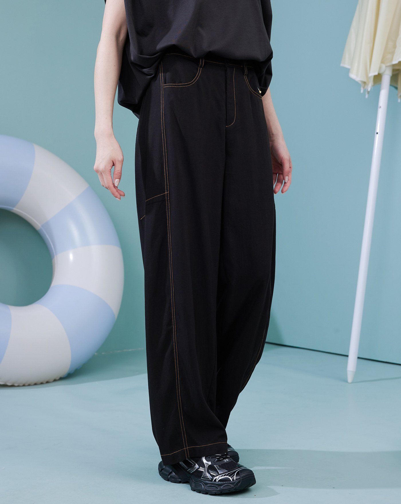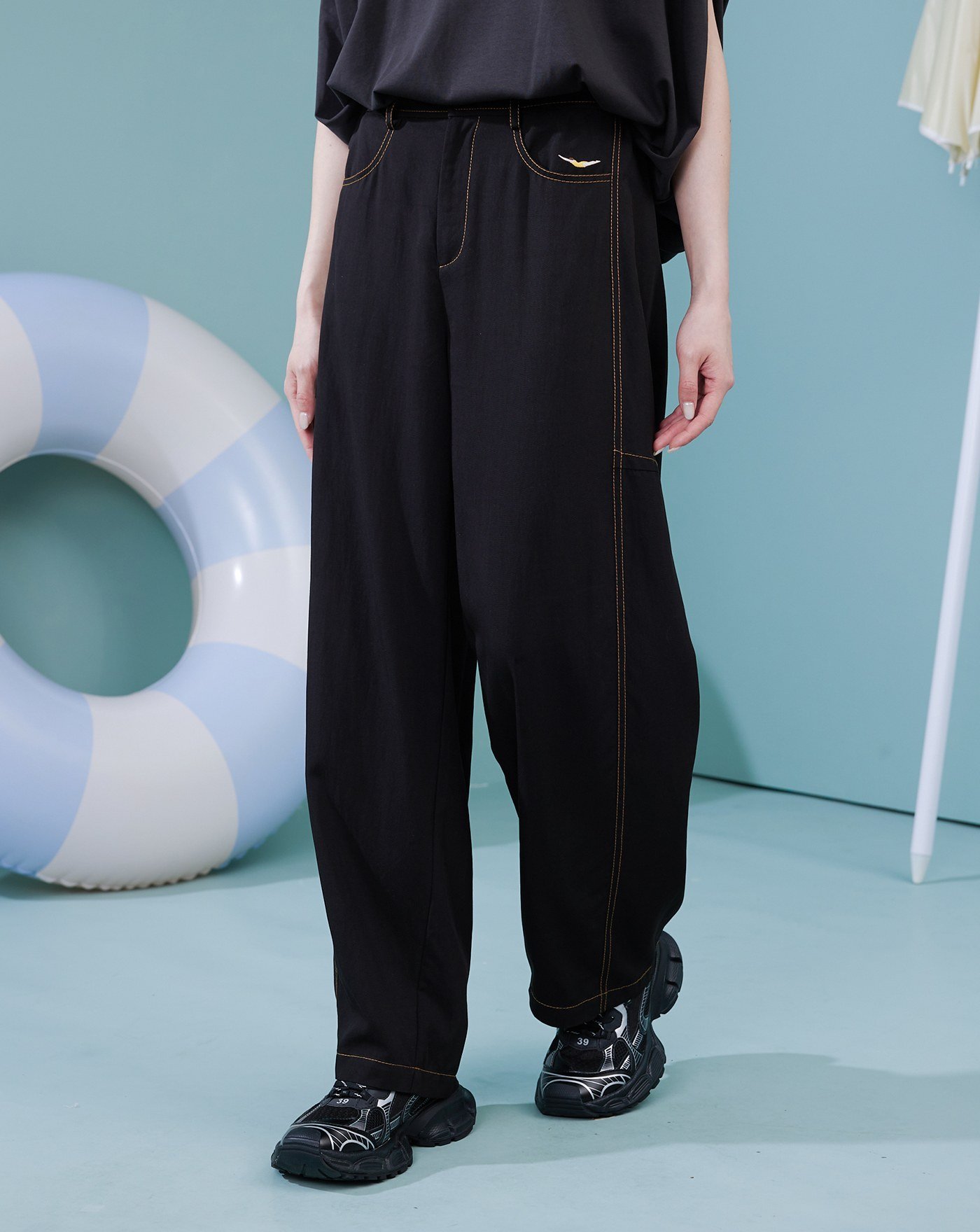帥氣斑駁感寬鬆彎刀褲(兩色)