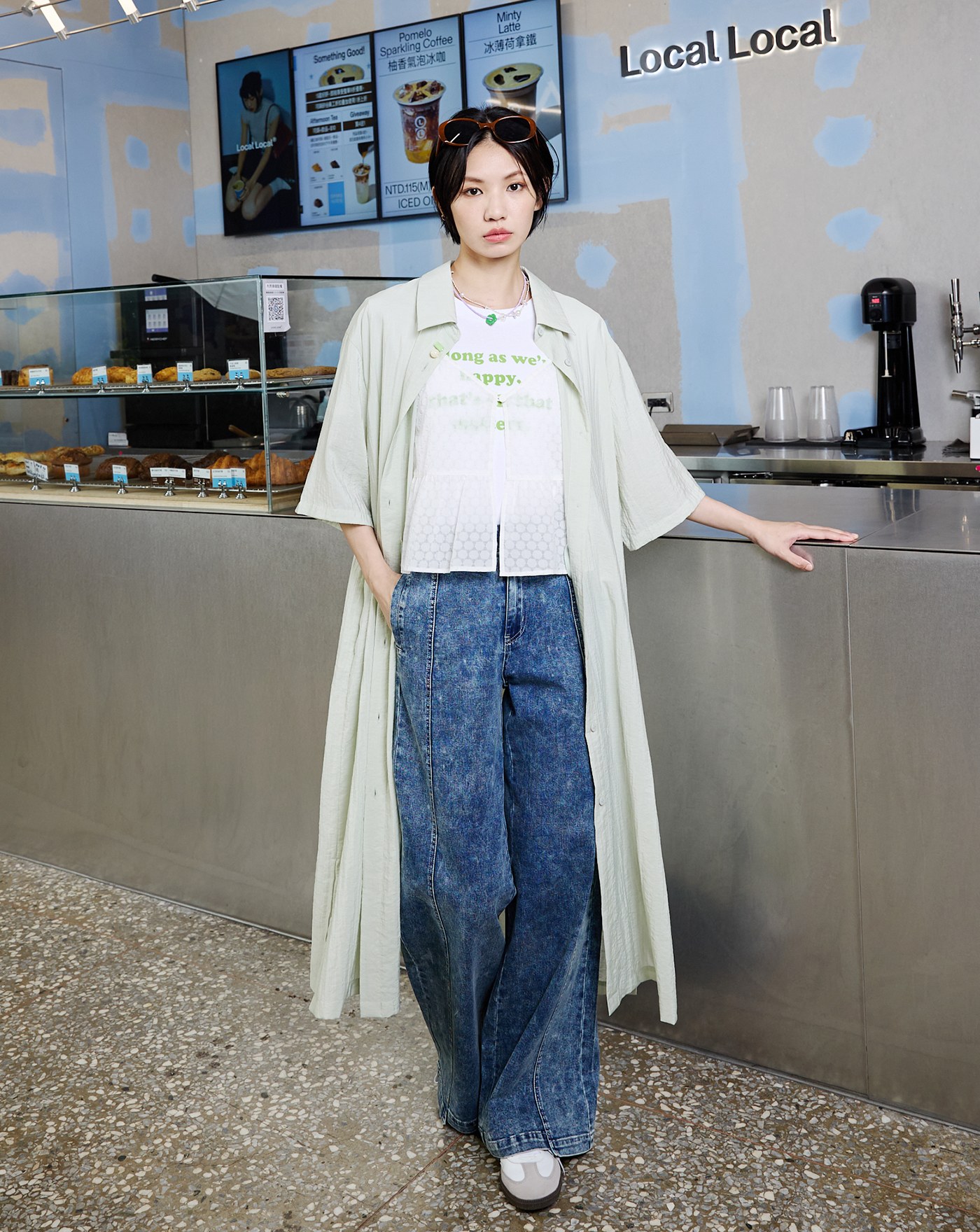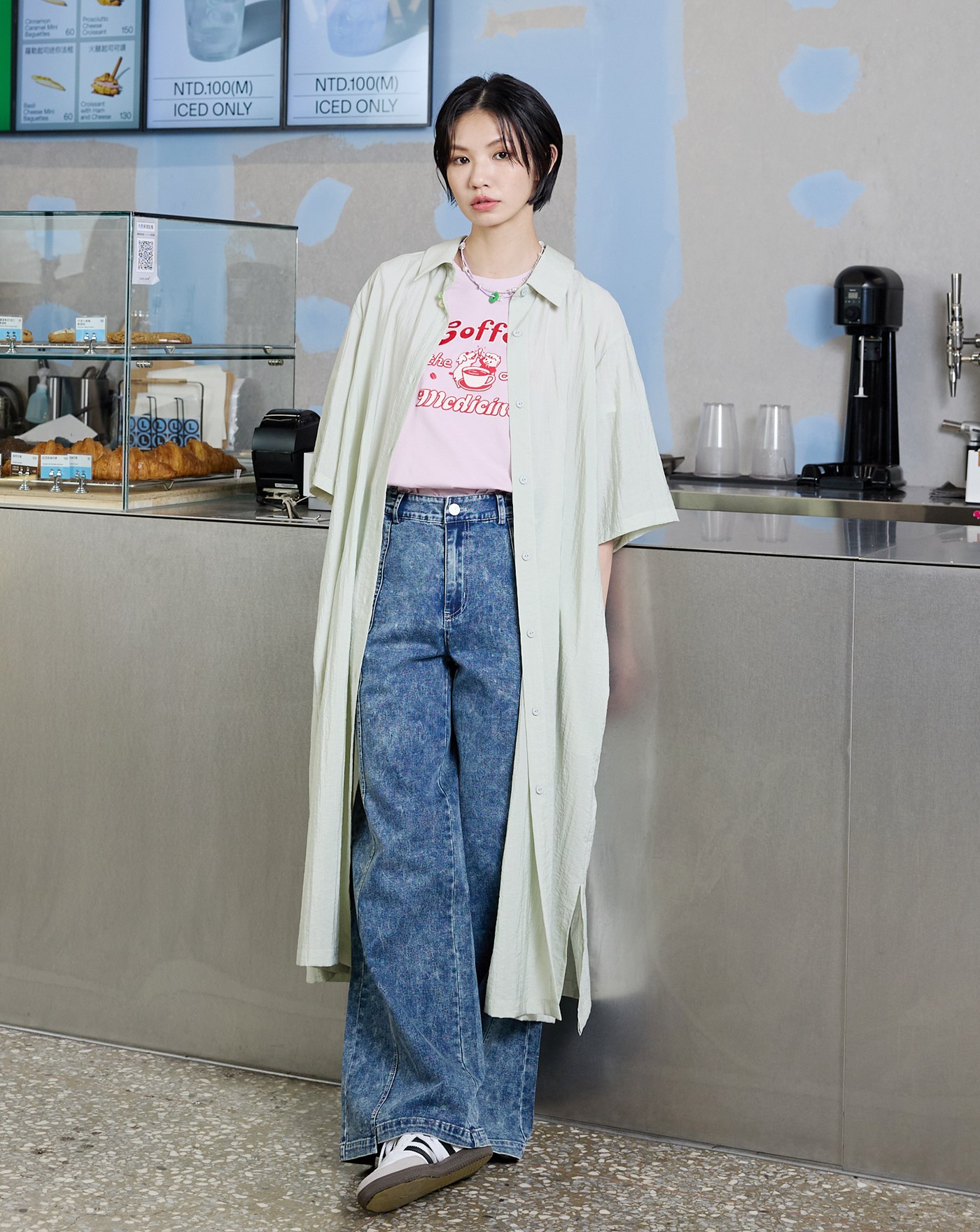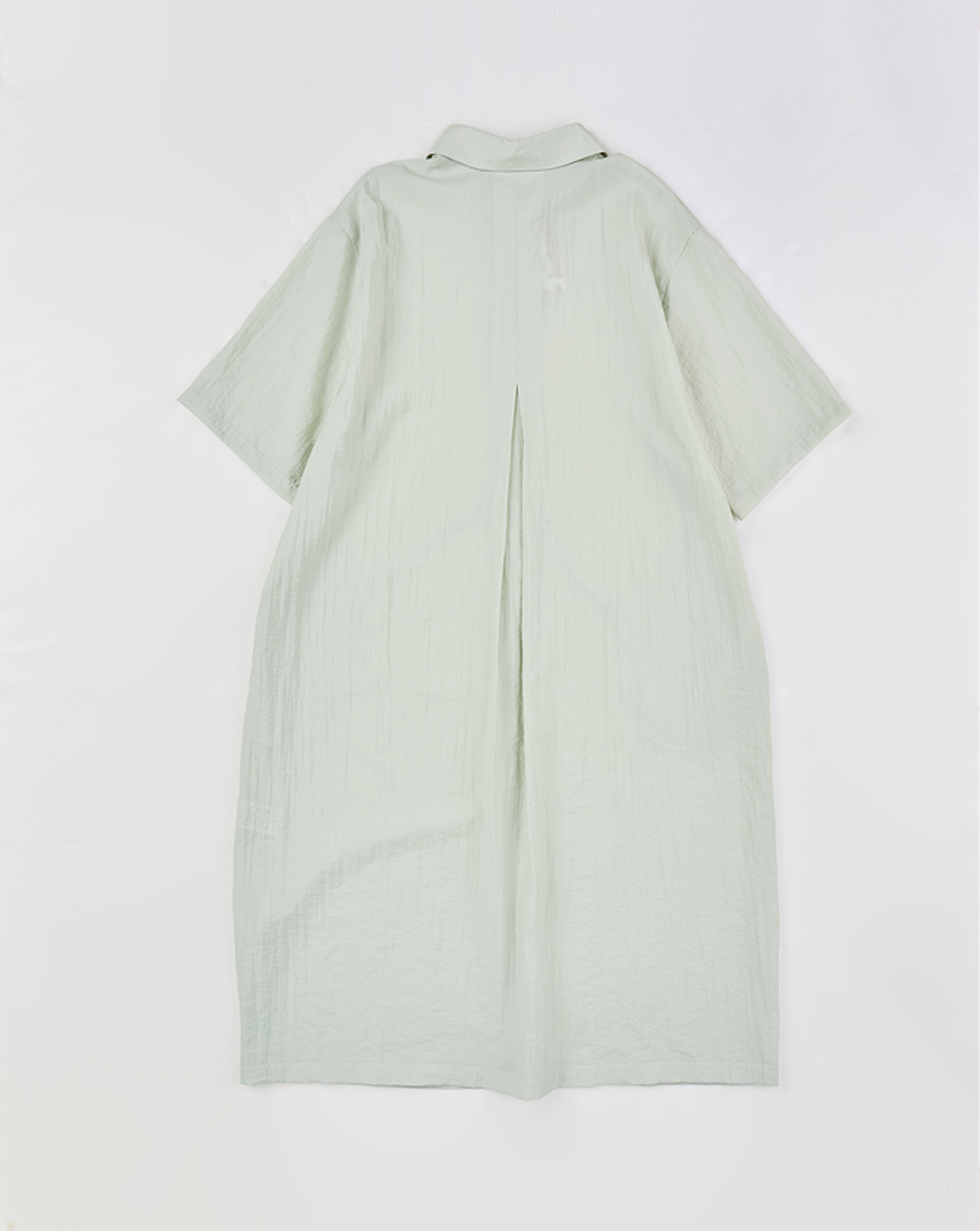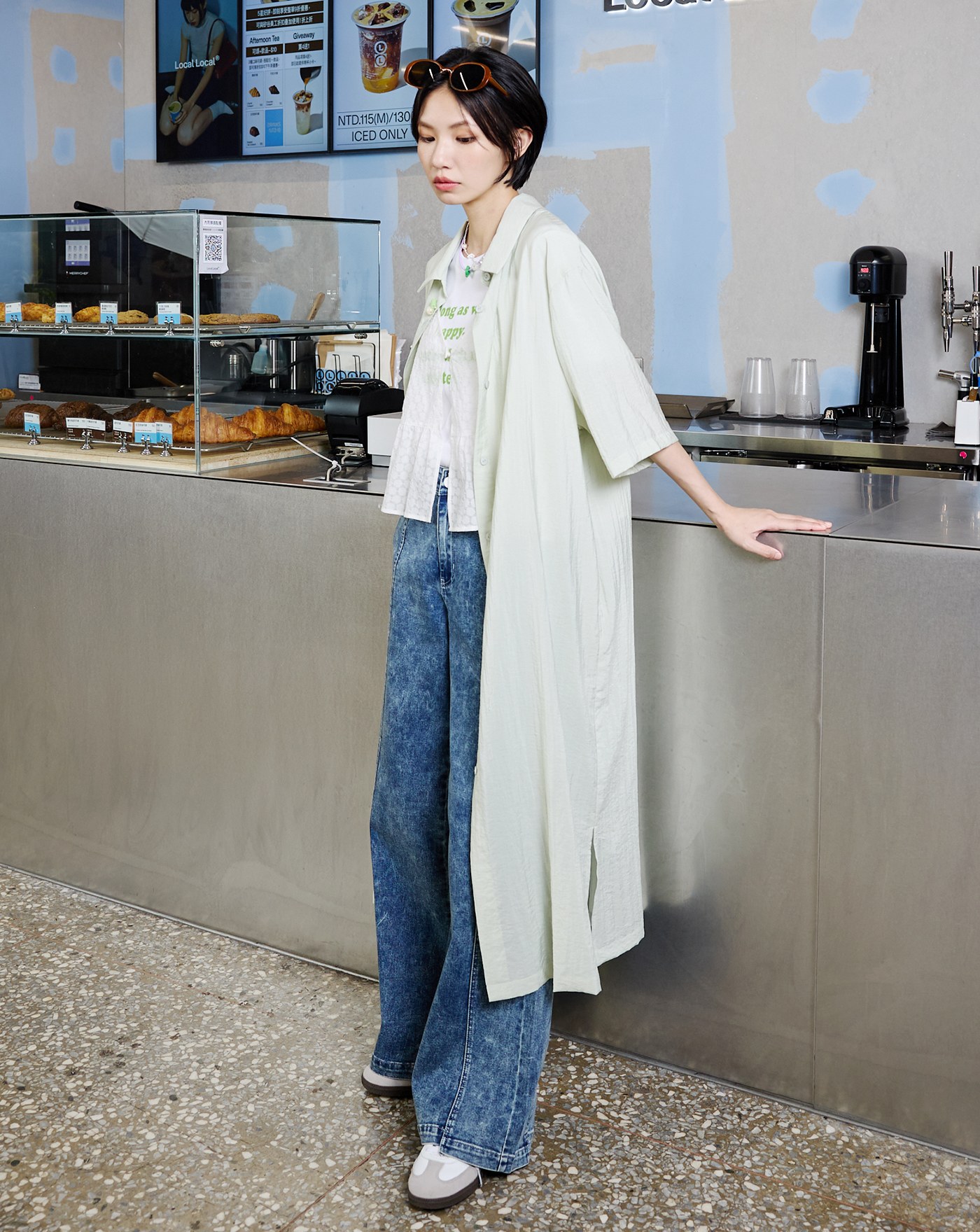 澎澎袖半開襟柔軟仿牛仔洋裝(兩色)