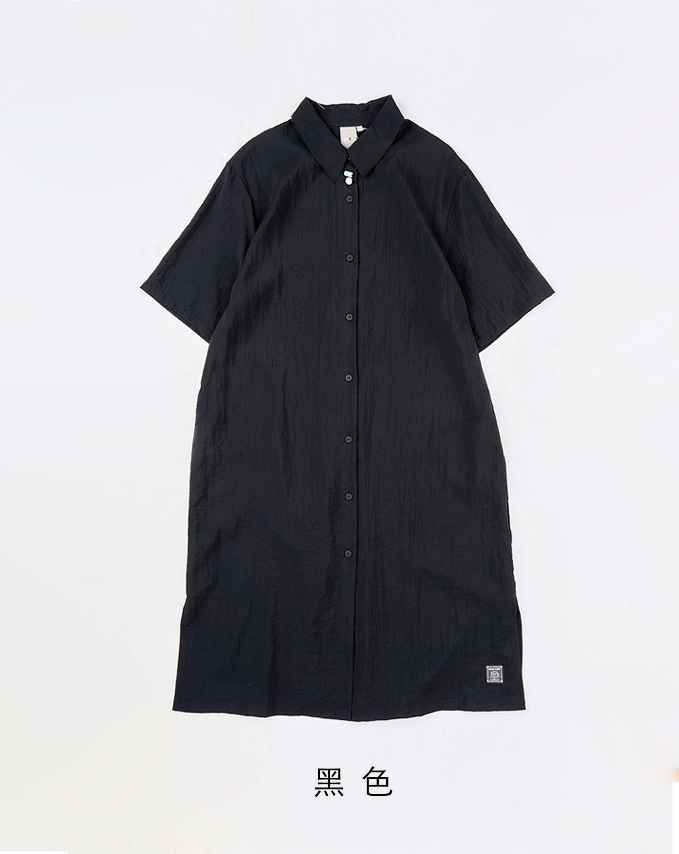 電影台詞刺繡半開襟直筒洋裝(兩色)