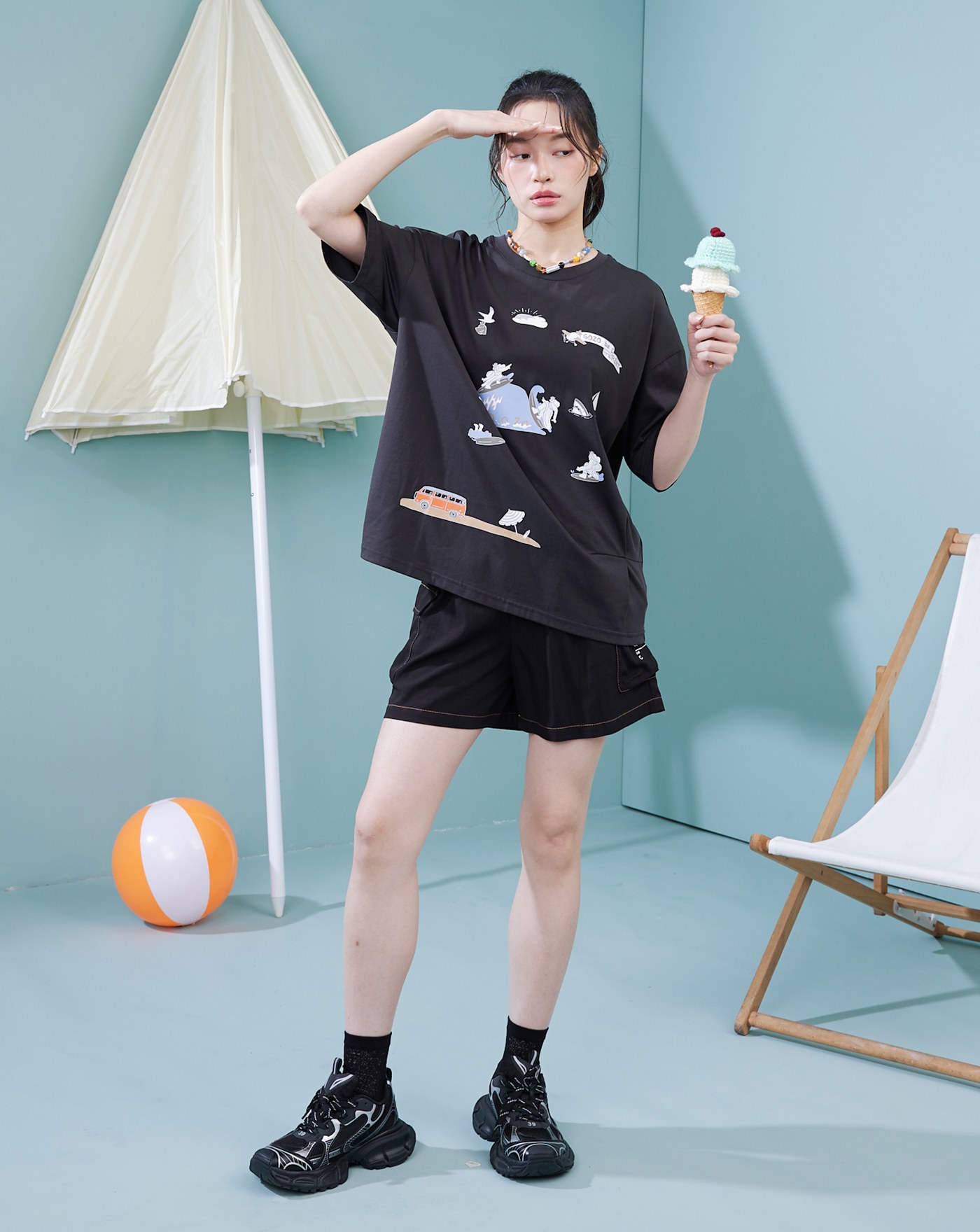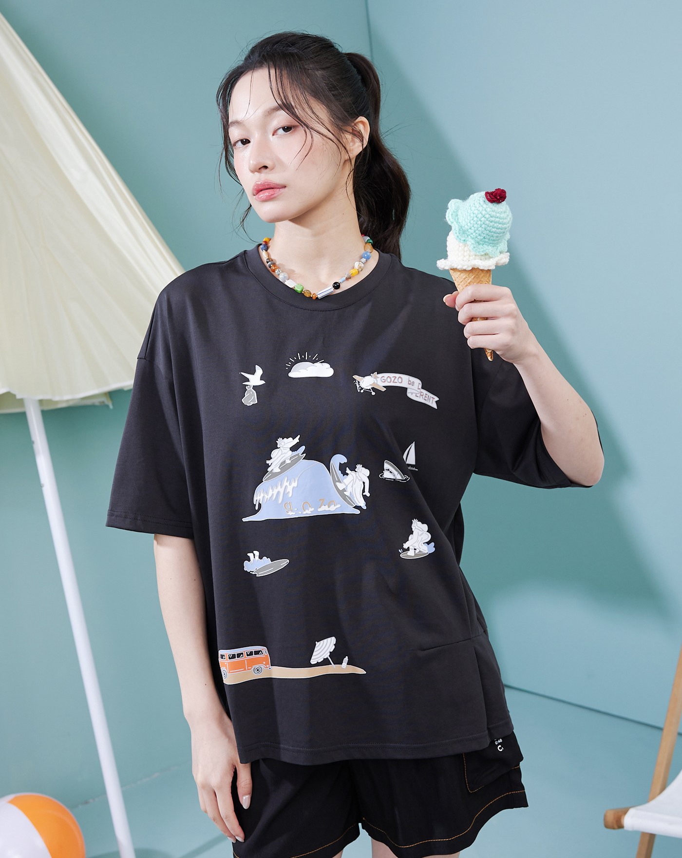 蛋糕織片口袋抓褶涼感T恤(兩色)