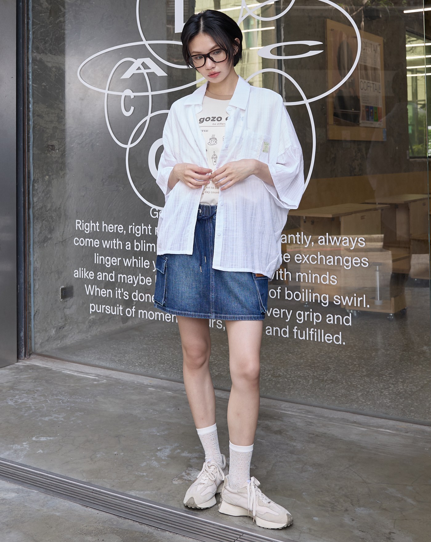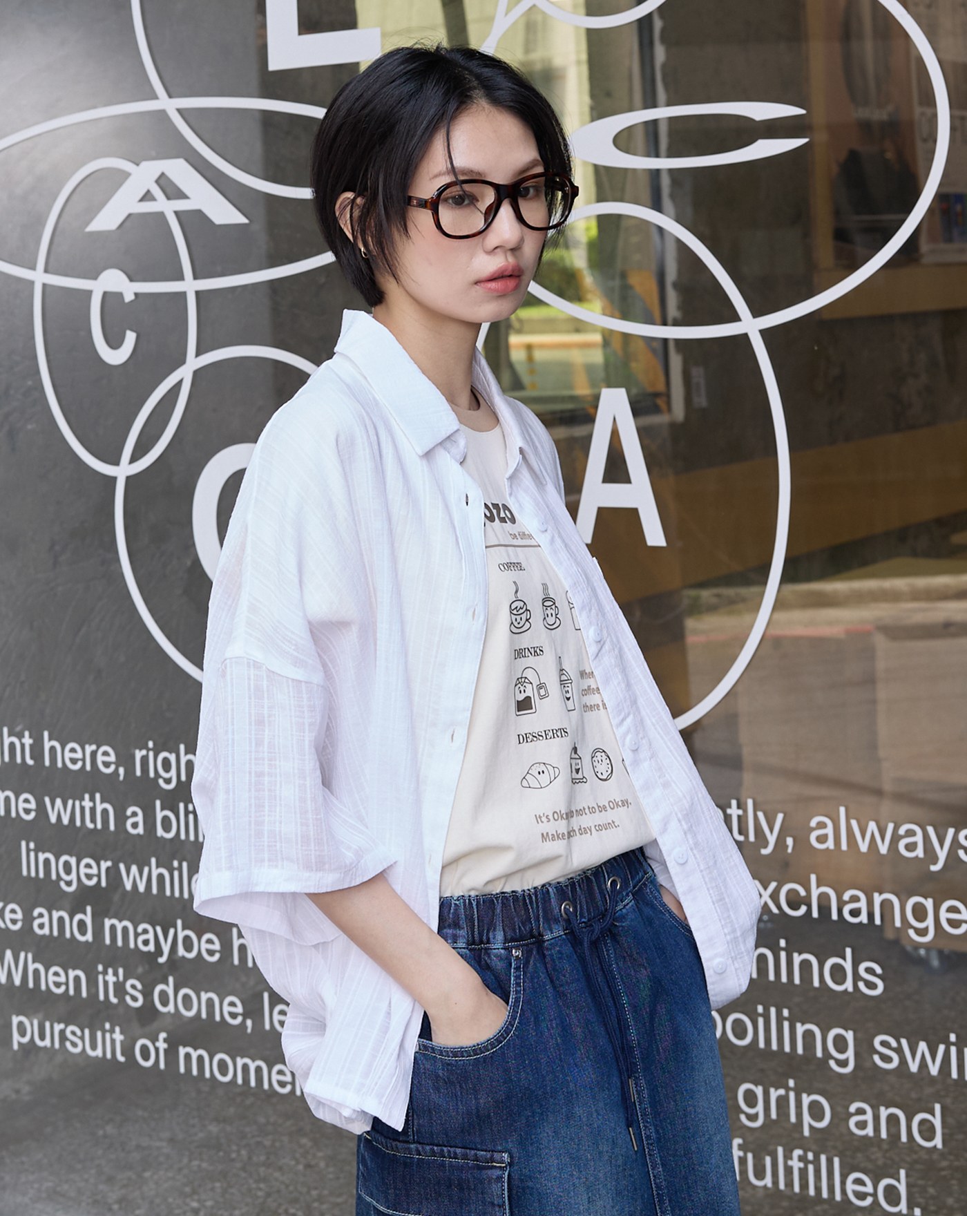 電影台詞刺繡天絲棉抓褶短袖襯衫(兩色)