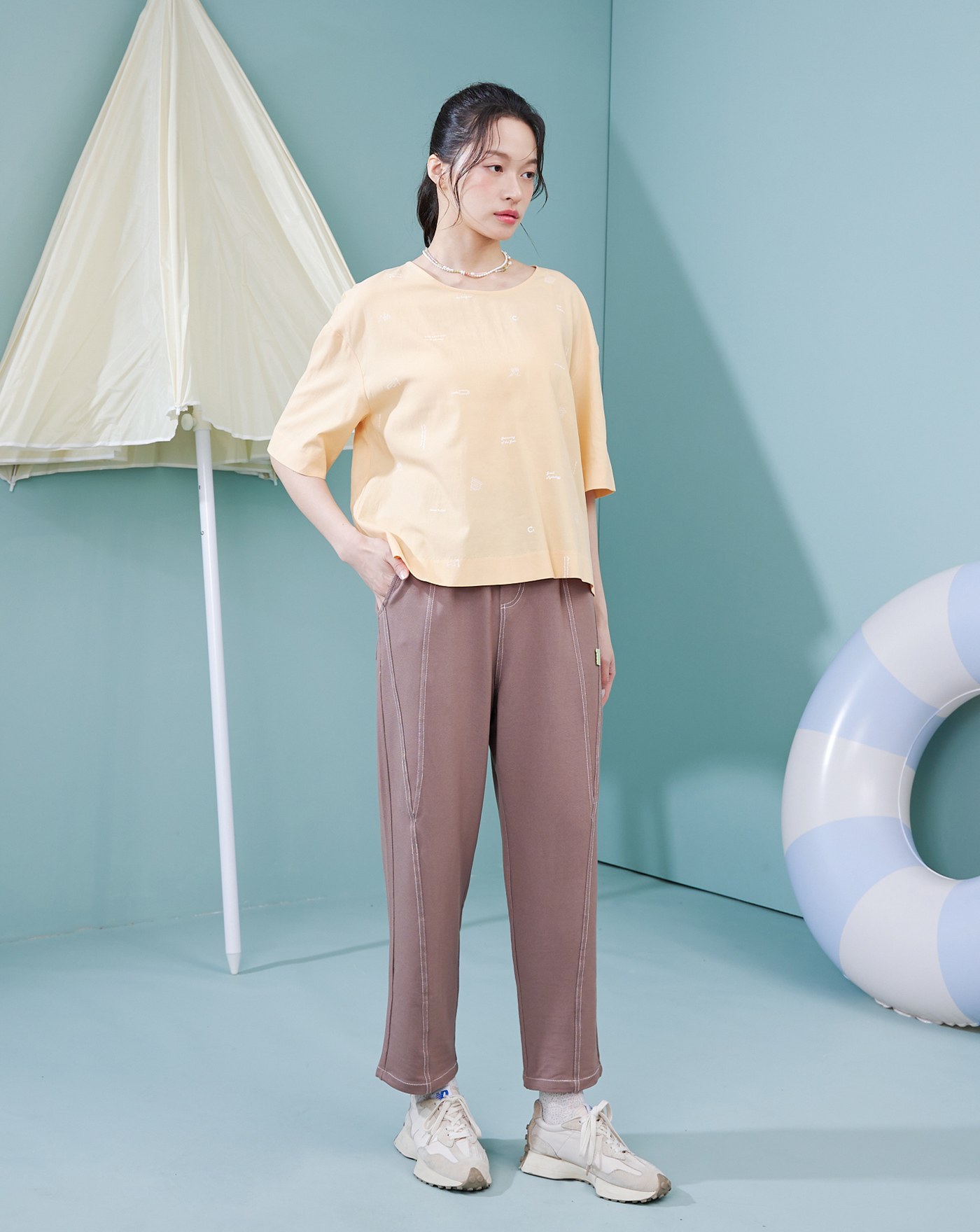 裝飾配色線單邊口袋彈力男友褲(兩色)