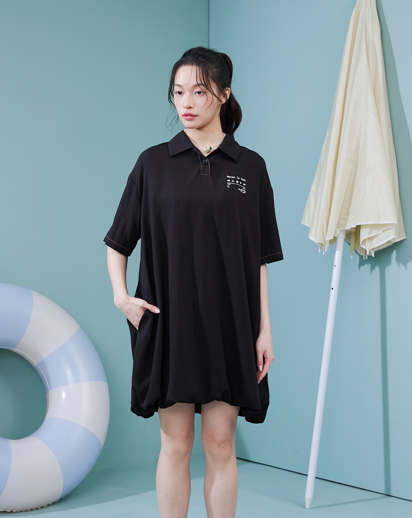 Sea you letter織紋天絲襯衫洋裝(兩色)