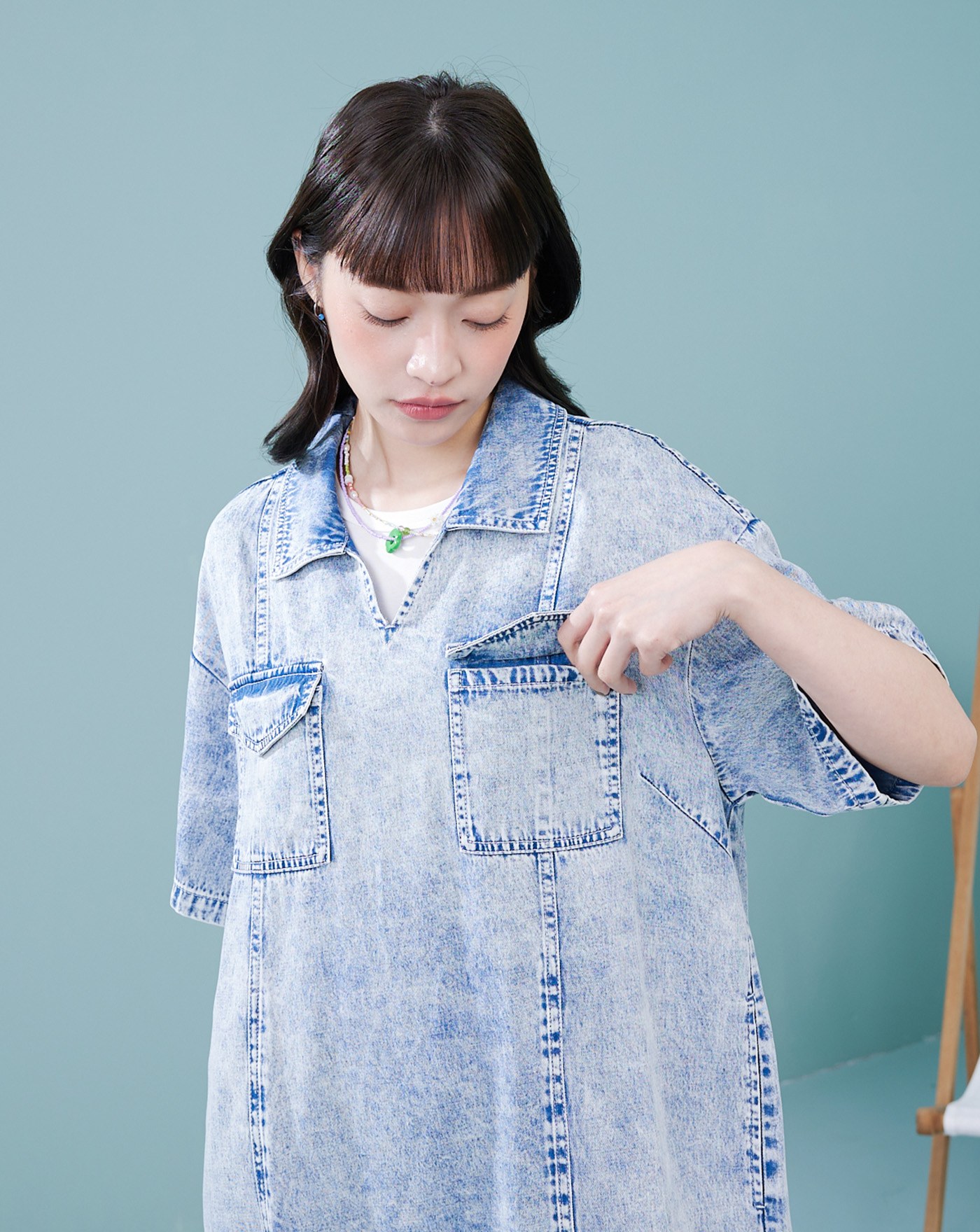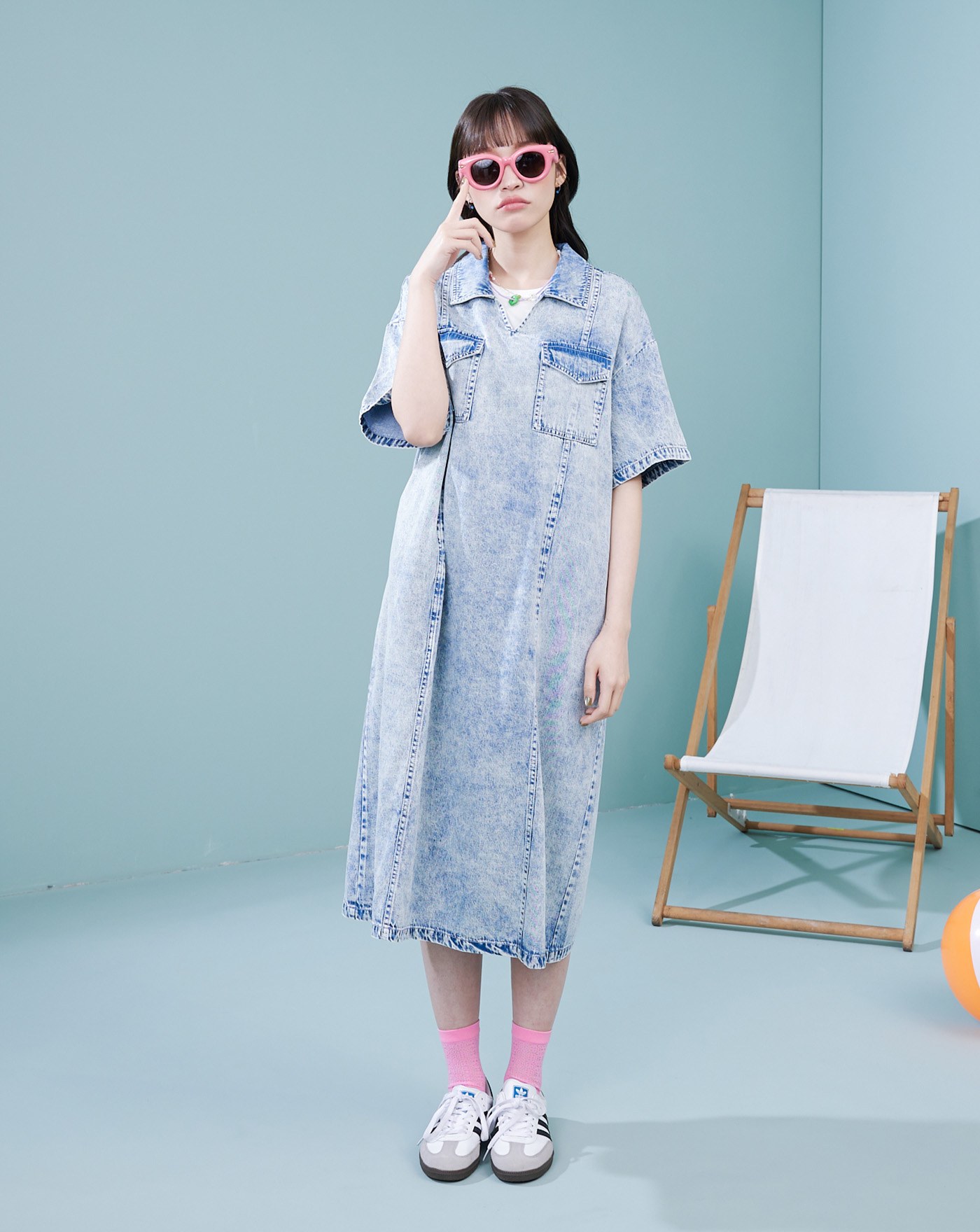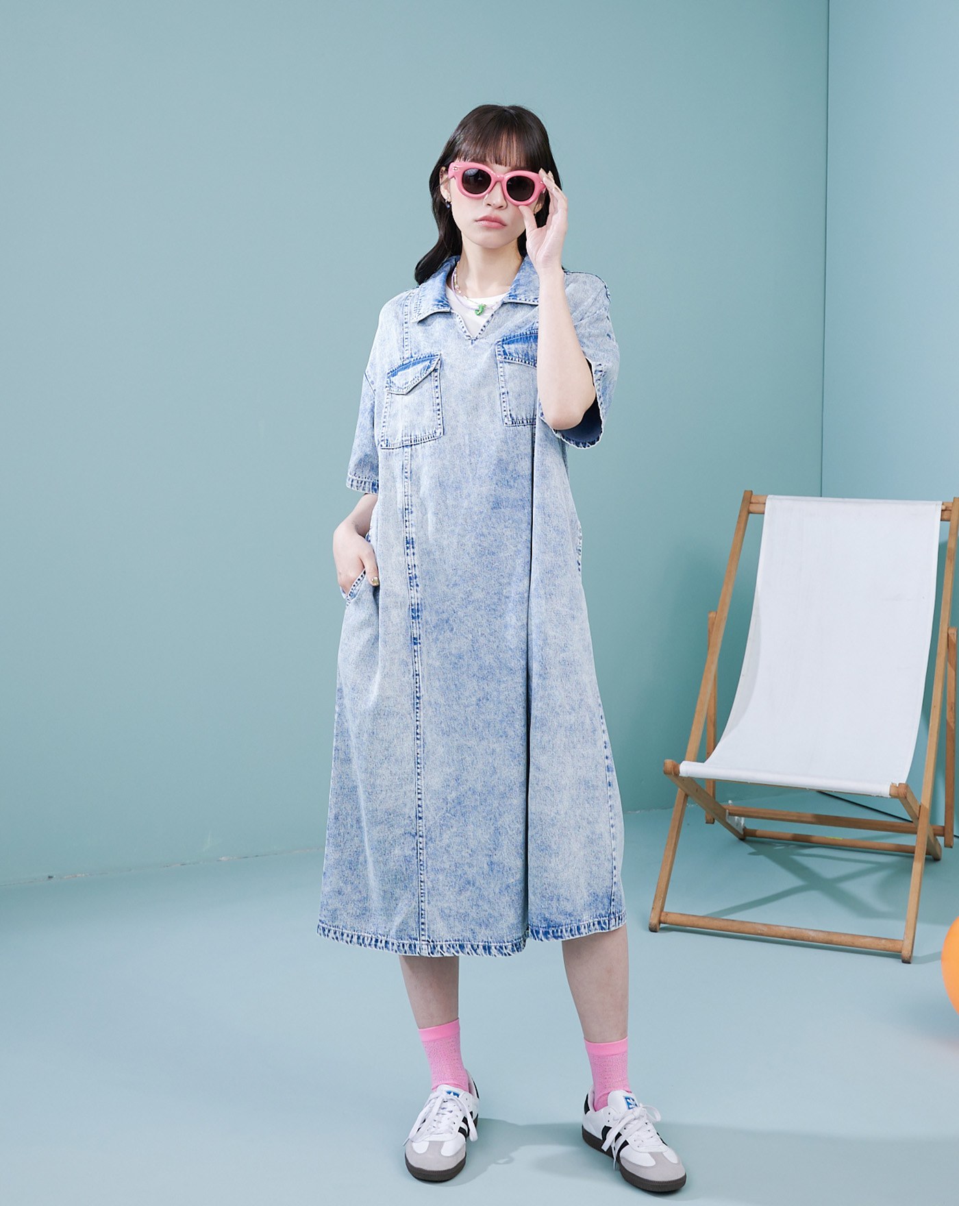 音樂撥放器水洗polo領涼感短洋裝(兩色)