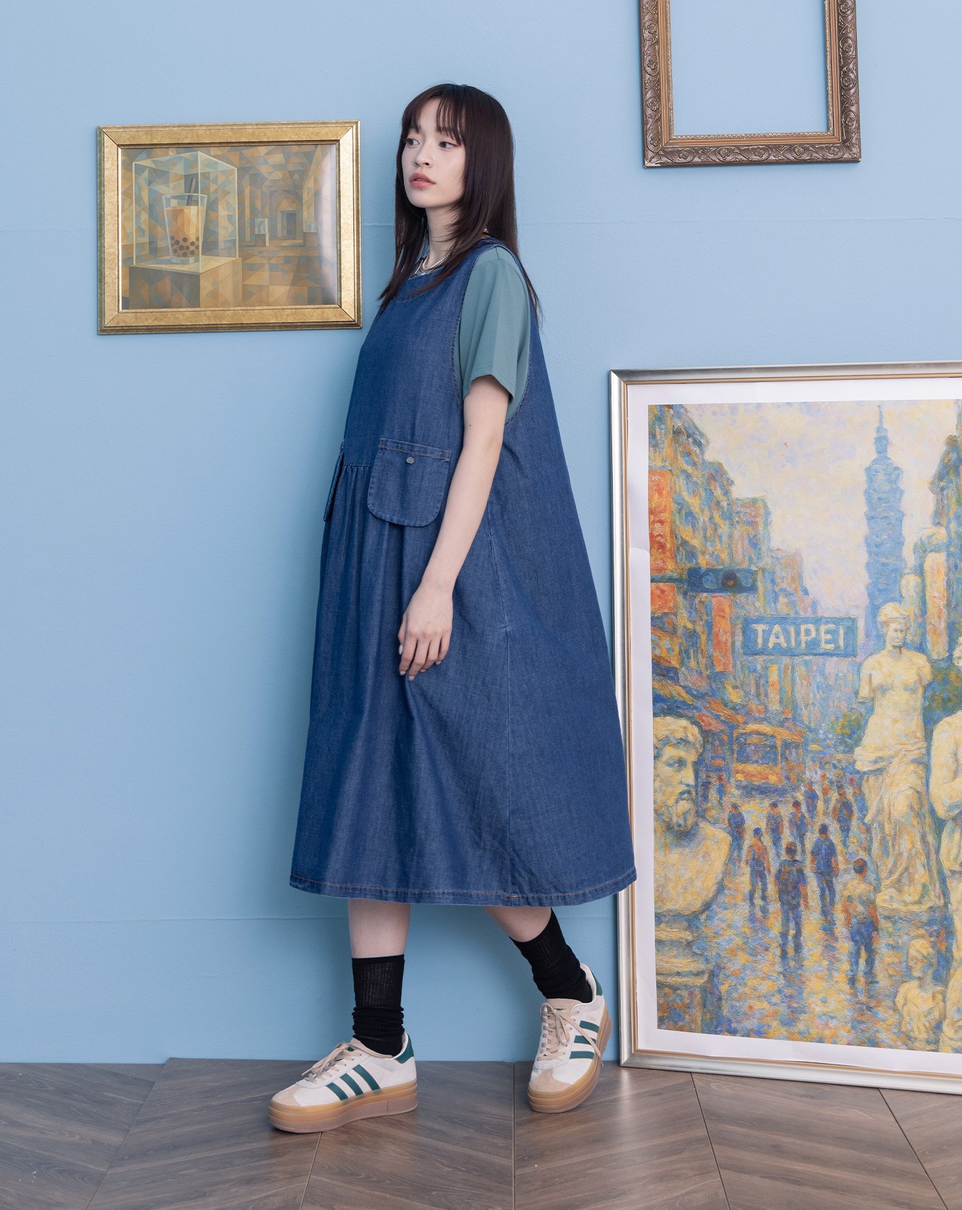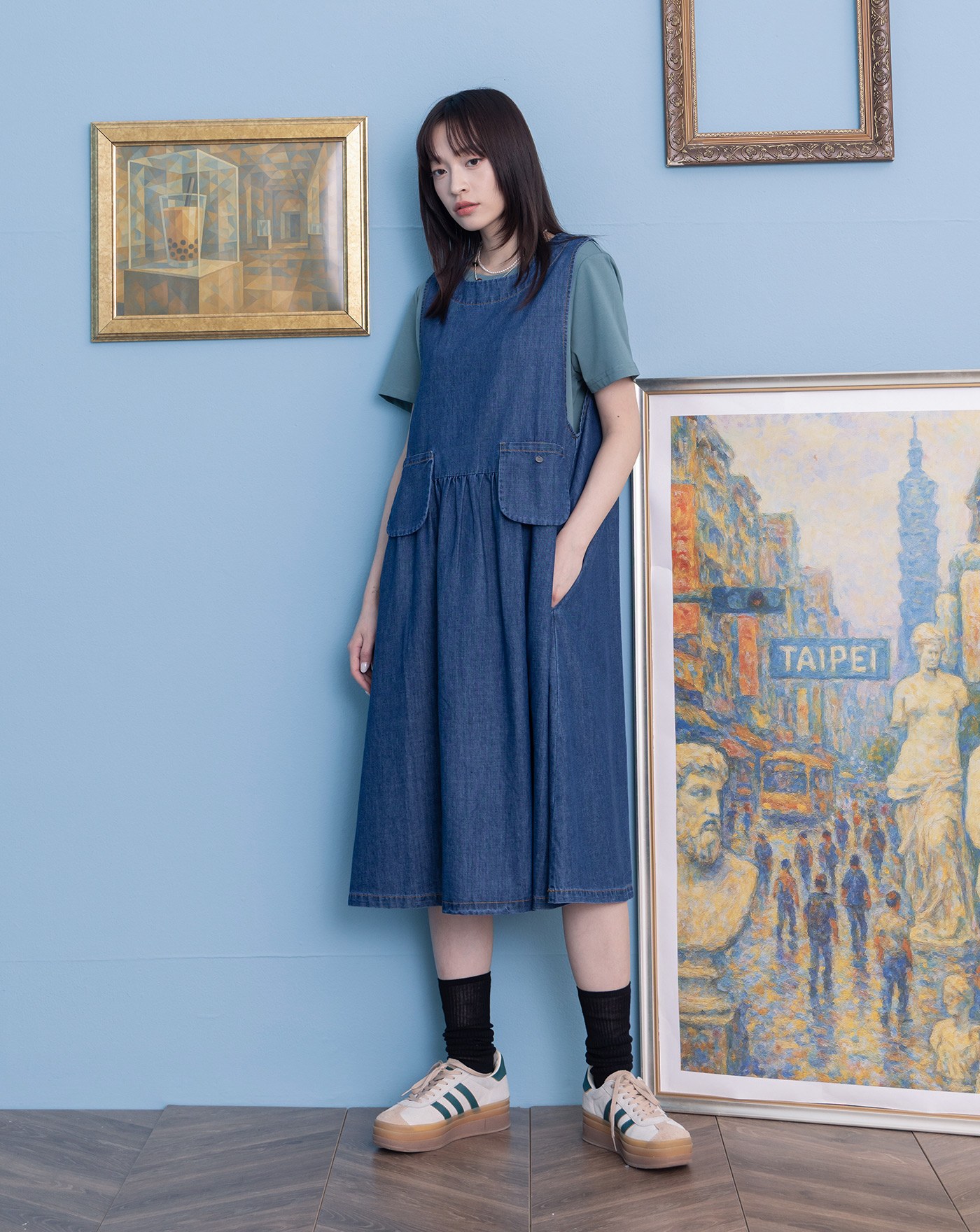 涼感天絲牛仔顯瘦車線洋裝(兩色)