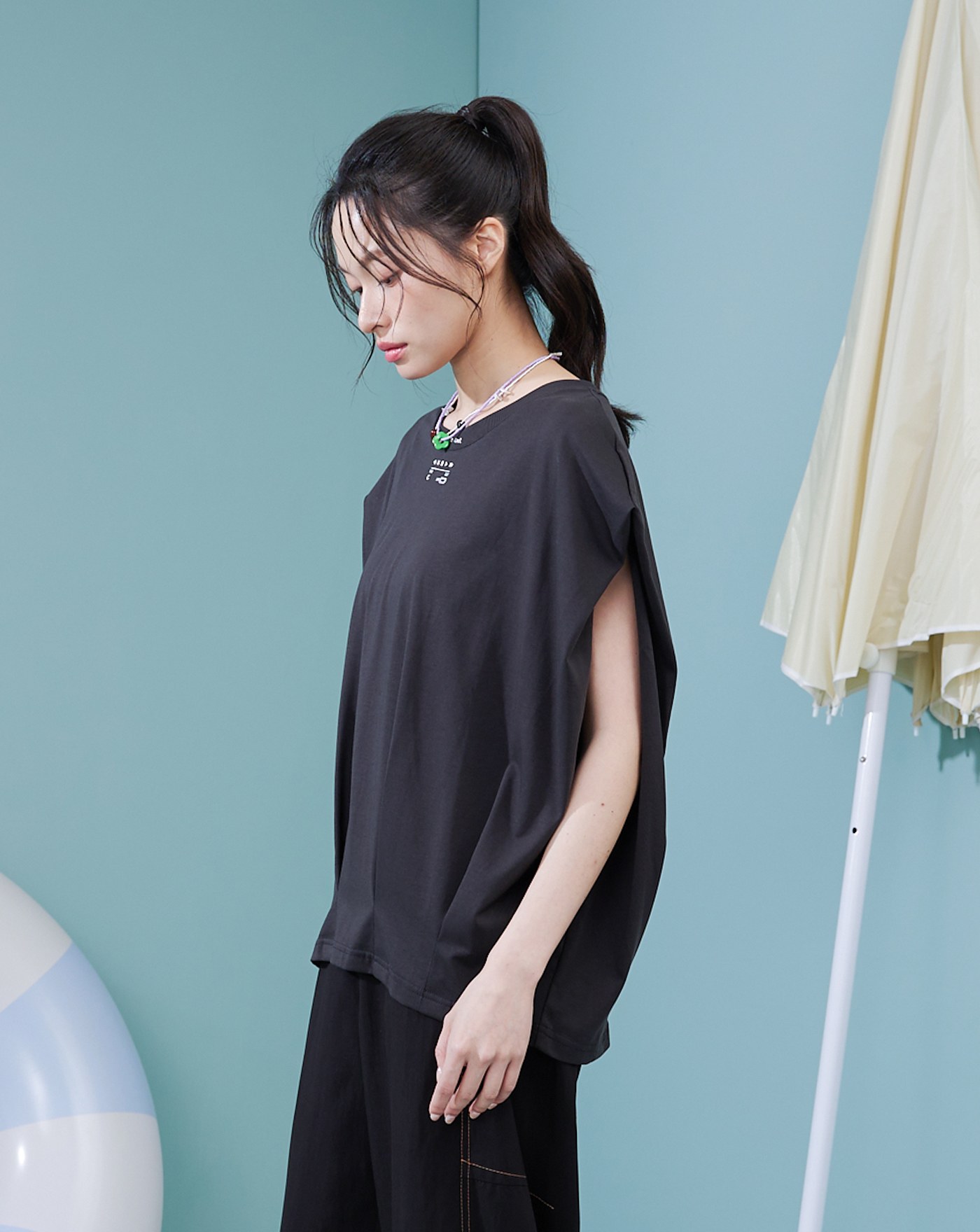 海邊CHILL㇐下抓褶造型涼感上衣(兩色)