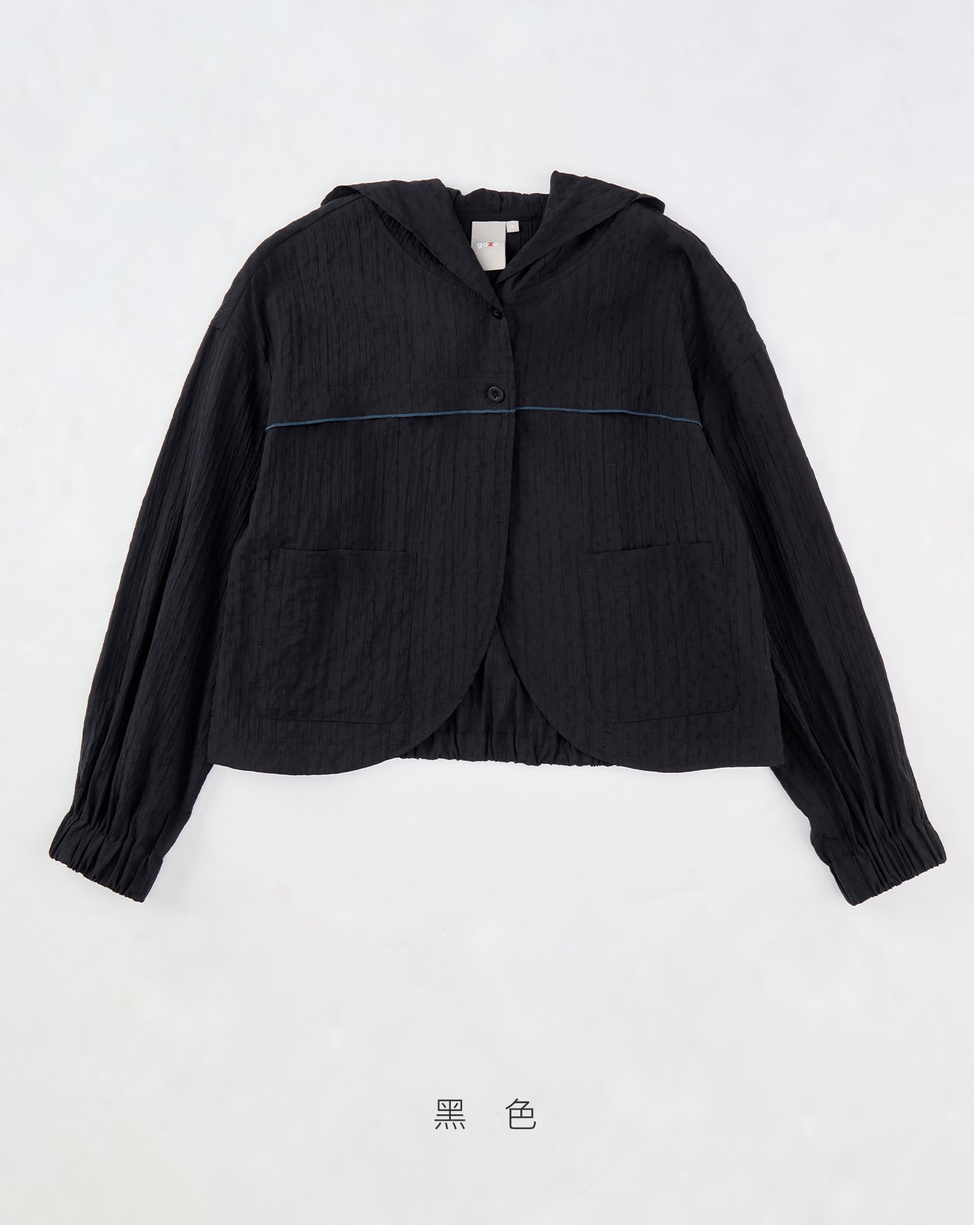 ➤下擺抽繩七分袖遮陽連帽外套(兩色)