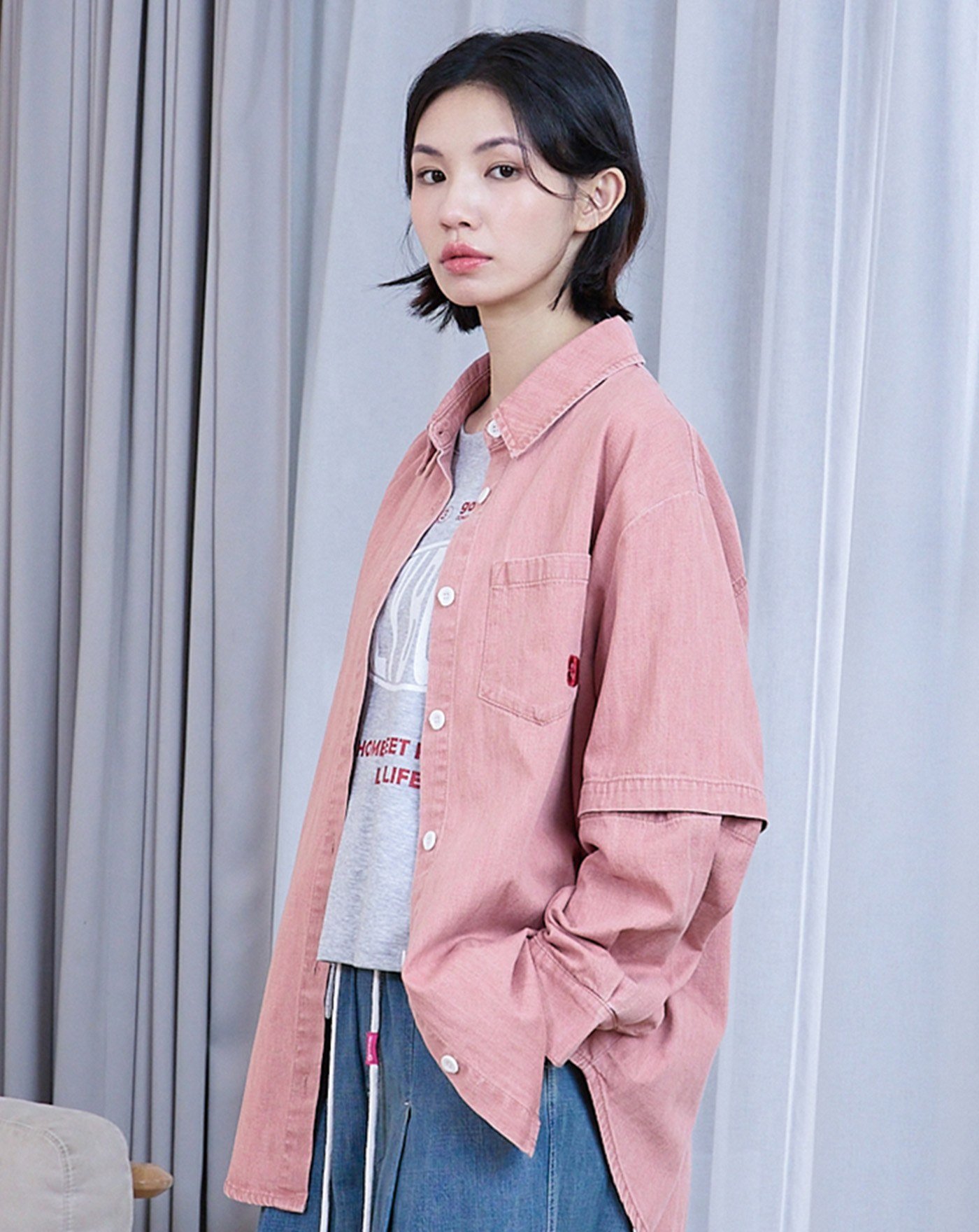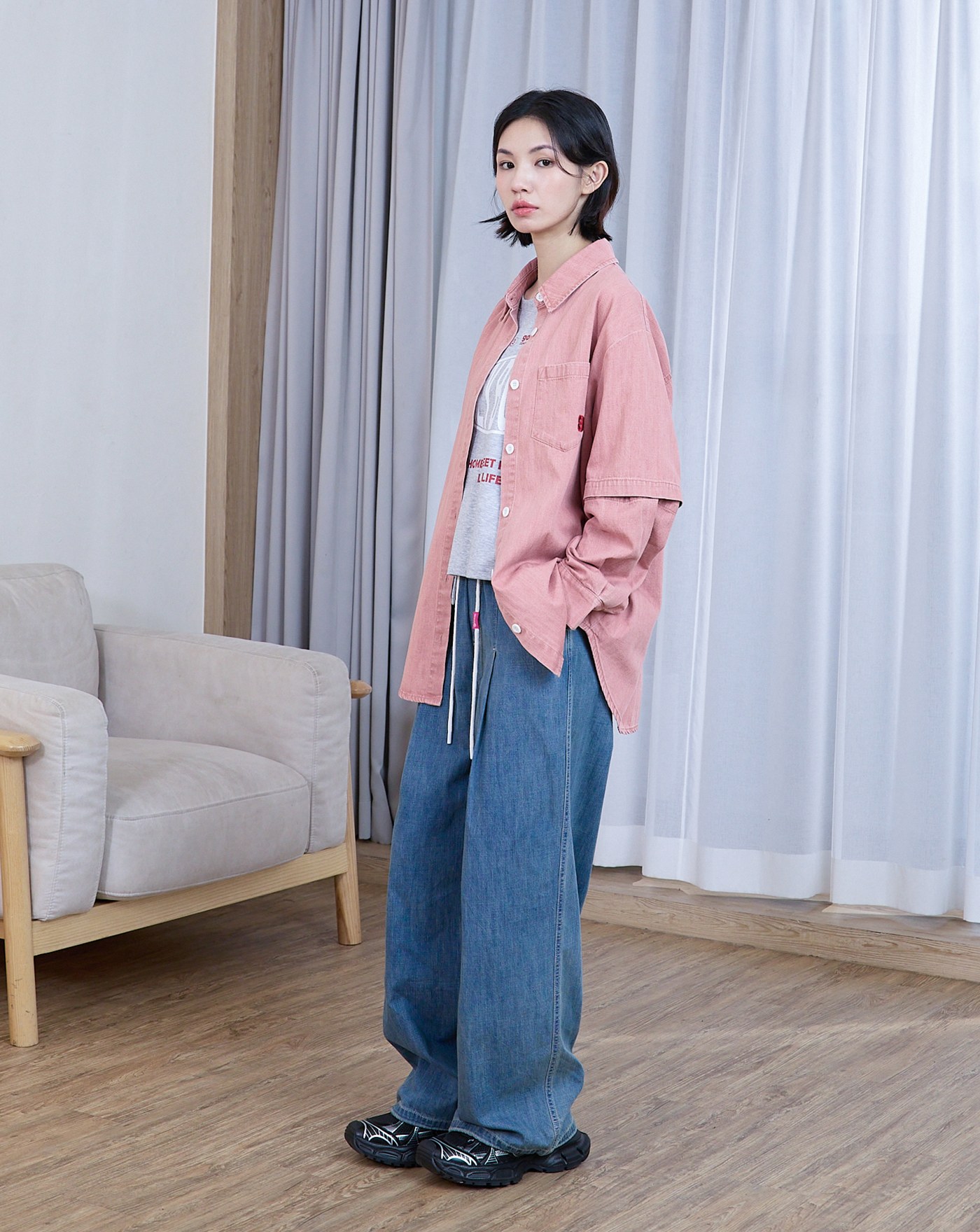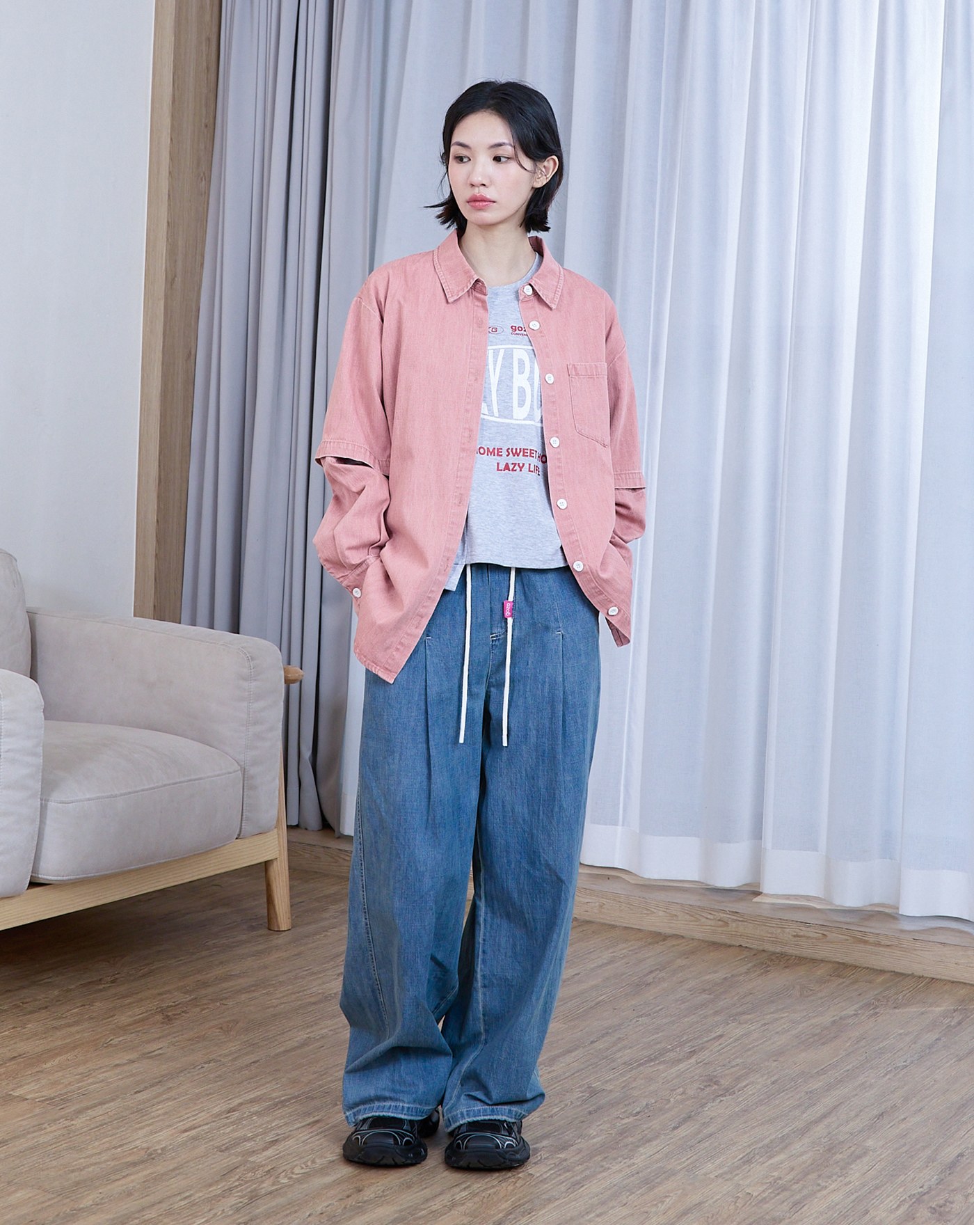 好比例鑰匙吊飾打褶牛仔大寬褲(兩色)