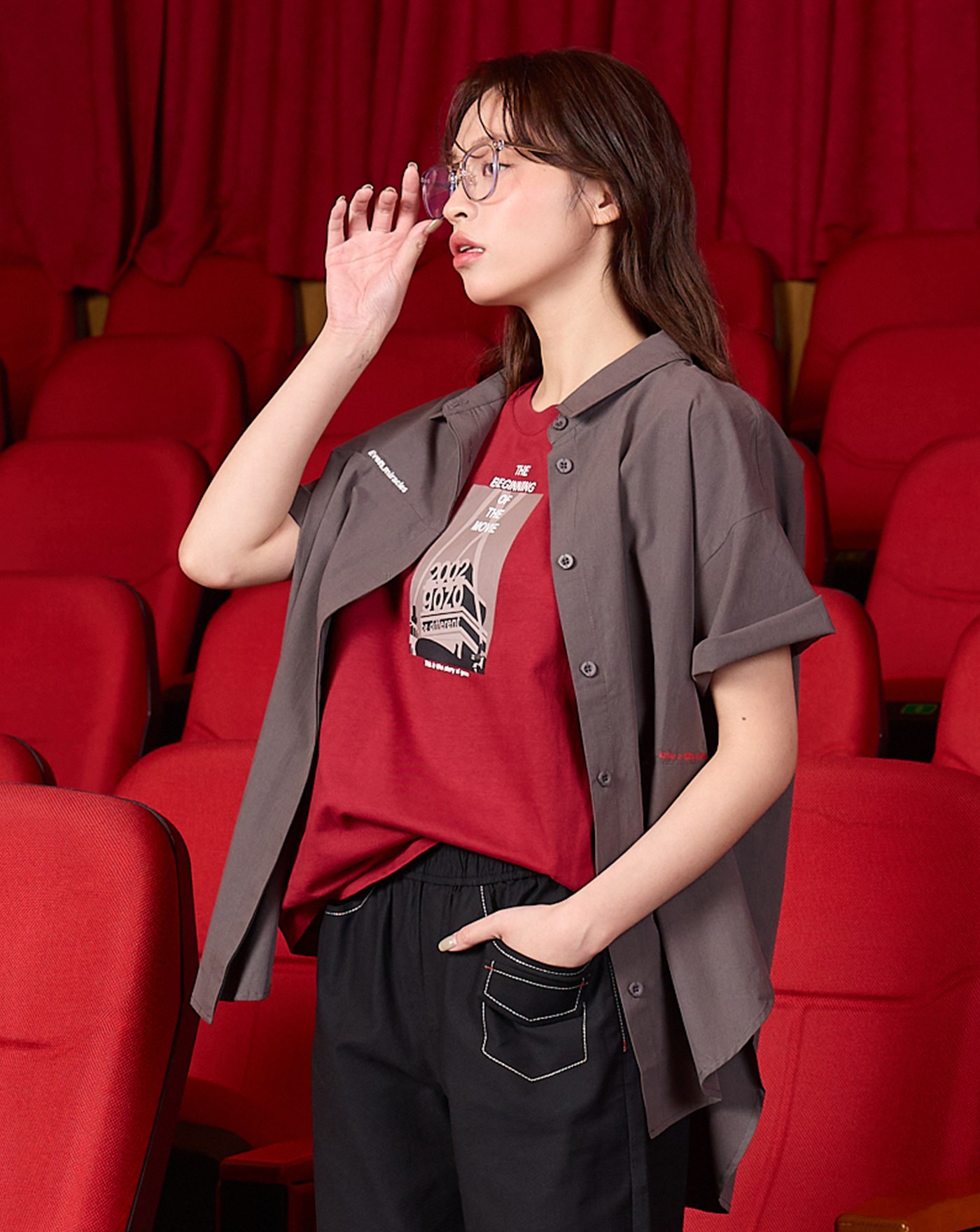 電影台詞配色壓線鬆緊男友褲(兩色)