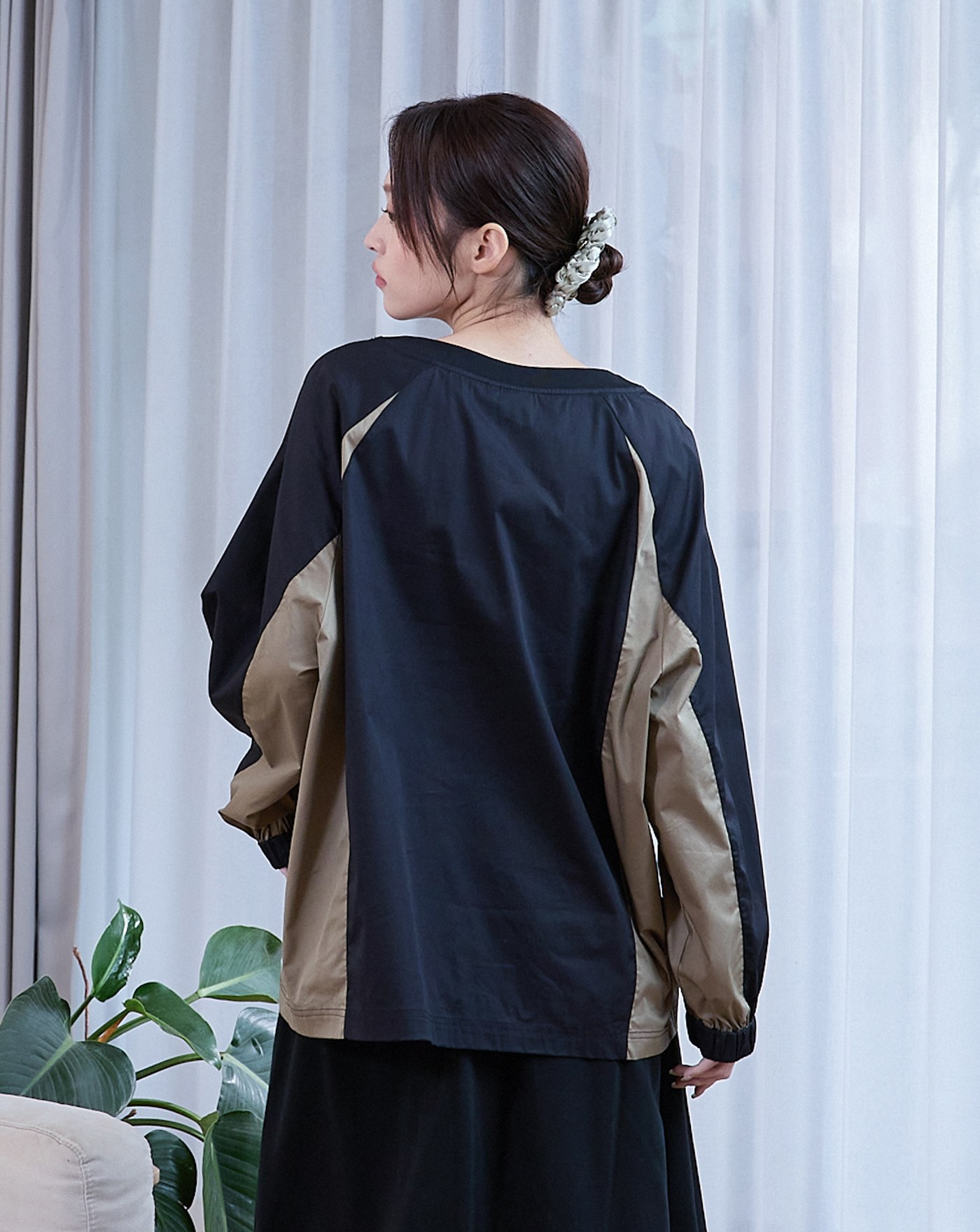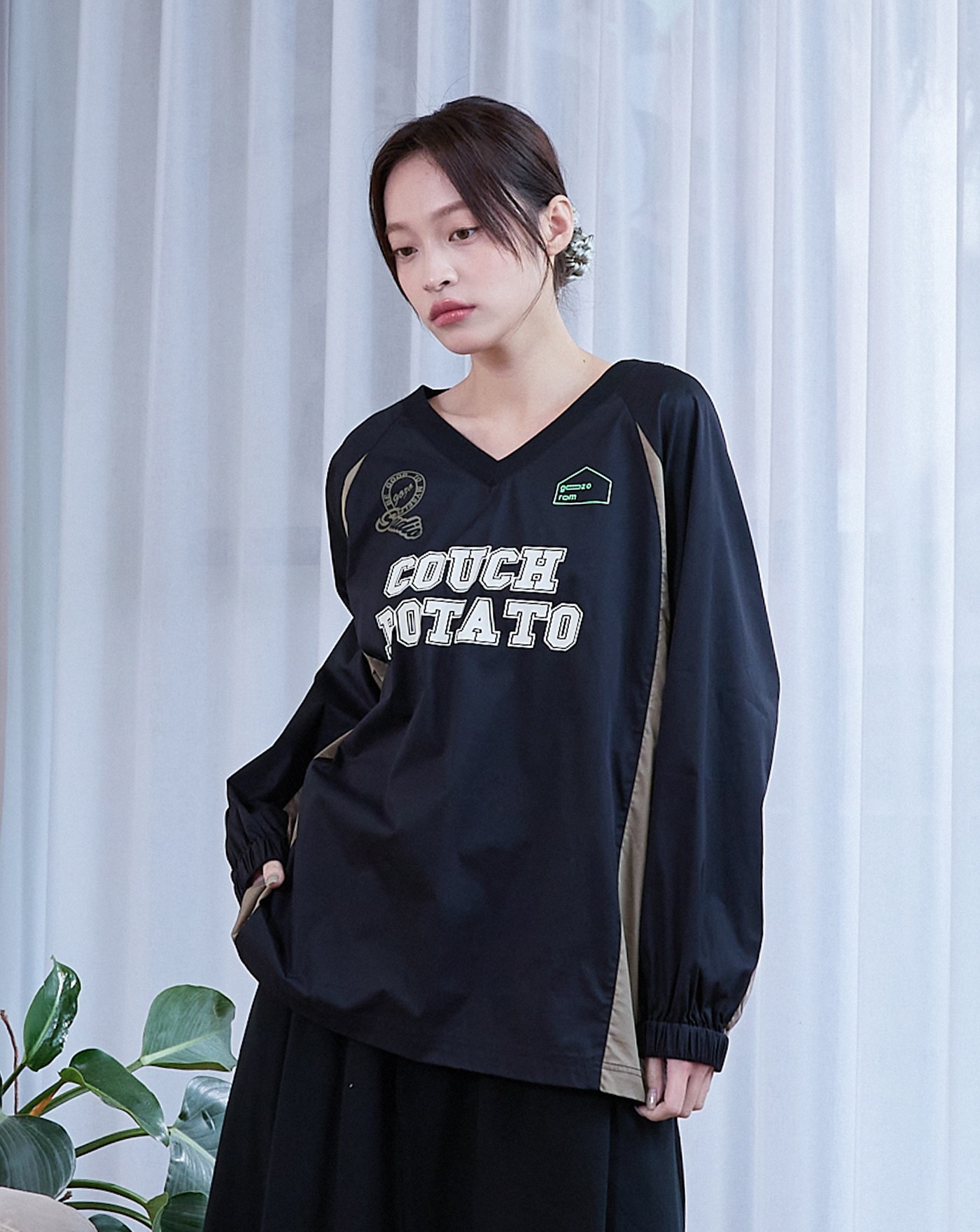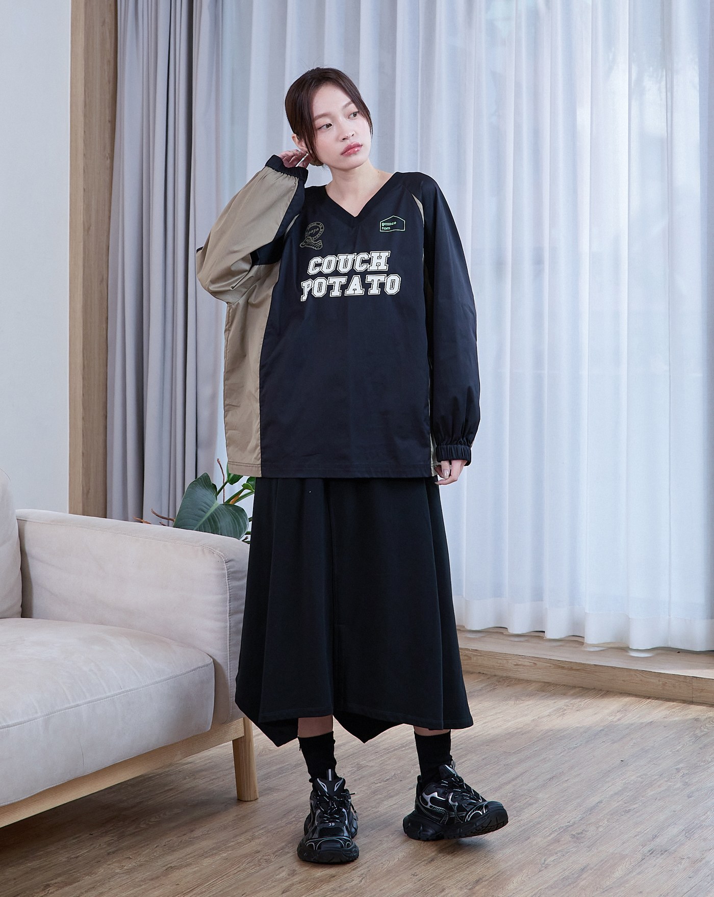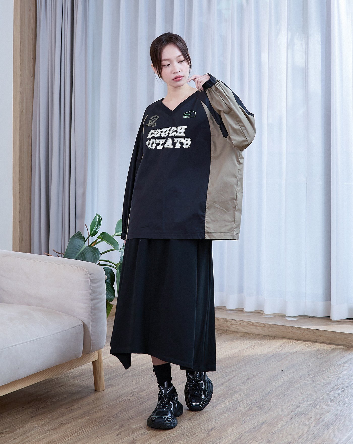 線條傢俱假兩件寬版大學T(兩色)