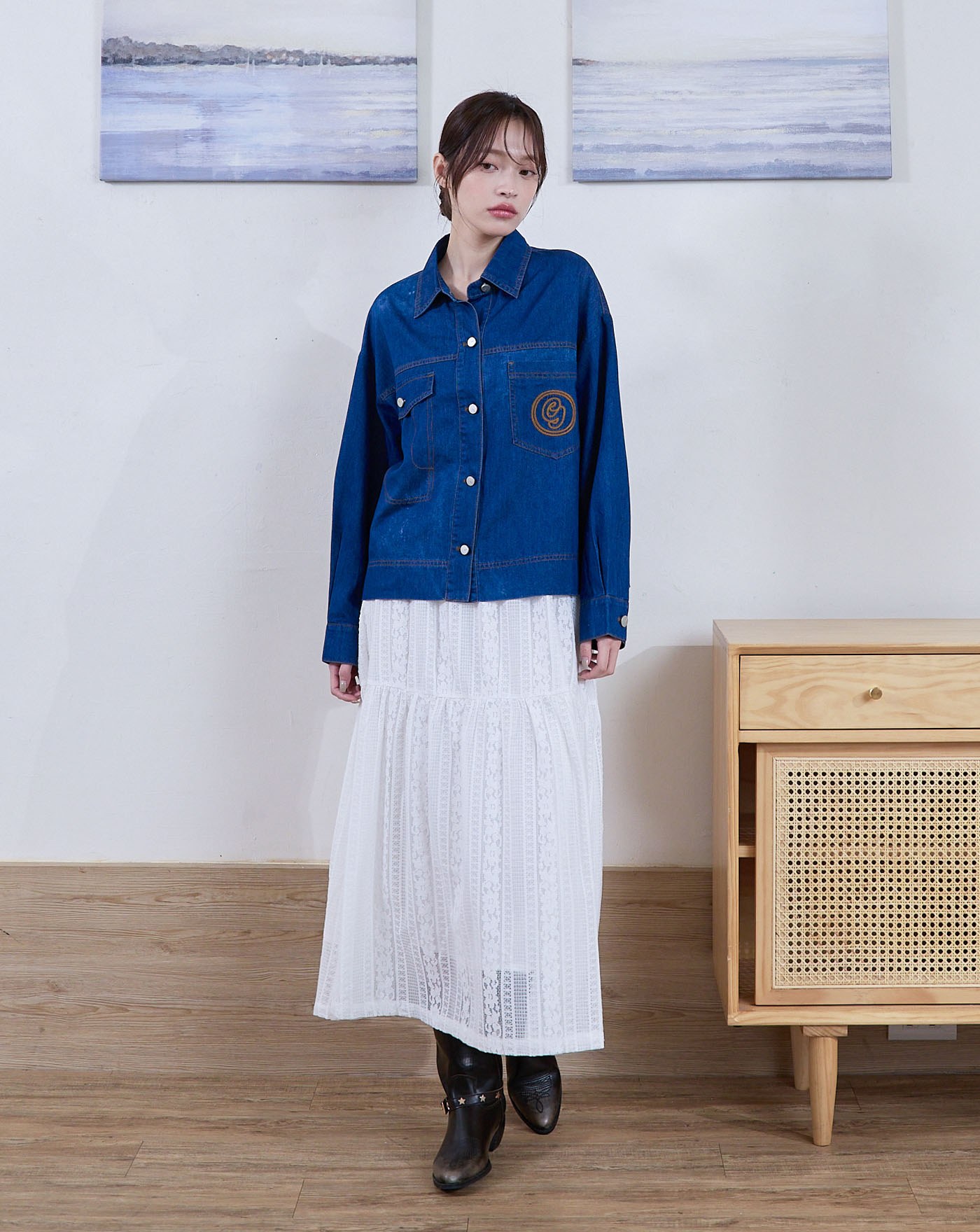 雙層兩穿鬆緊蕾絲長裙(兩色)