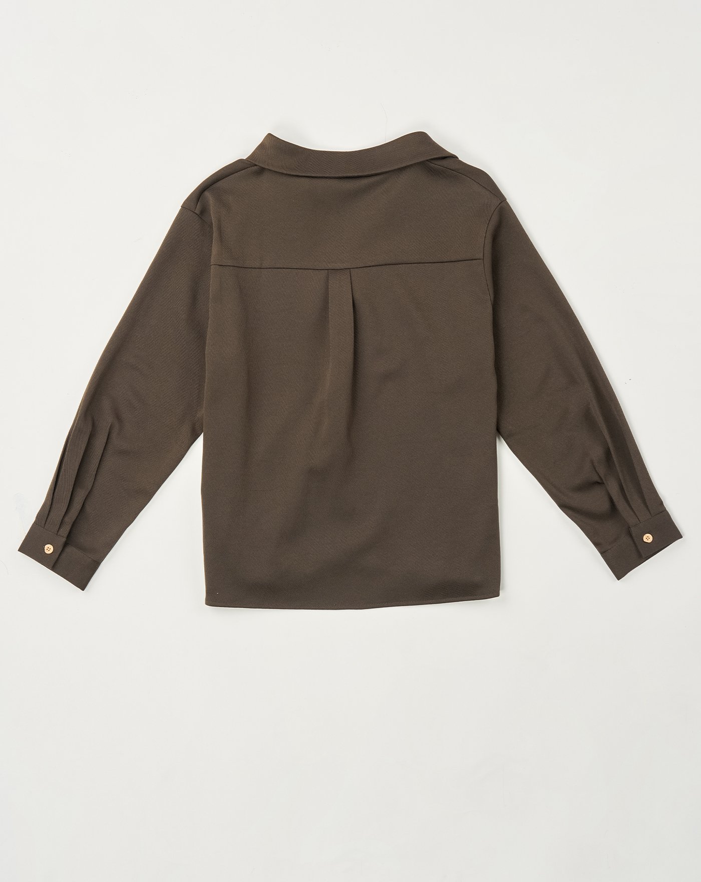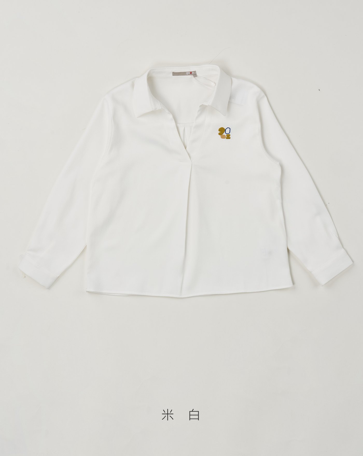g字繡花落肩彈力牛仔襯衫(兩色)