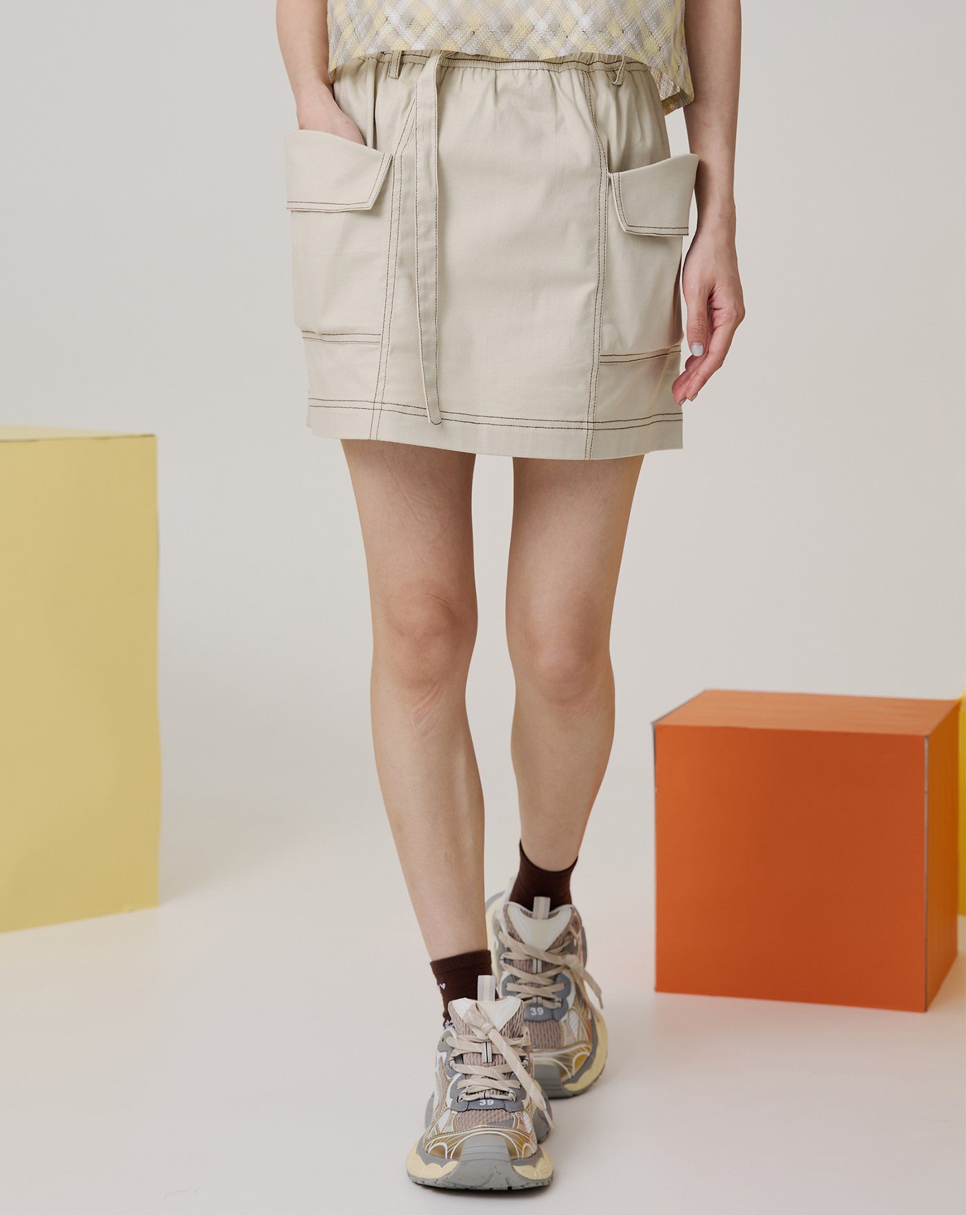 澎澎水洗牛仔鬆緊花苞短裙(兩色)