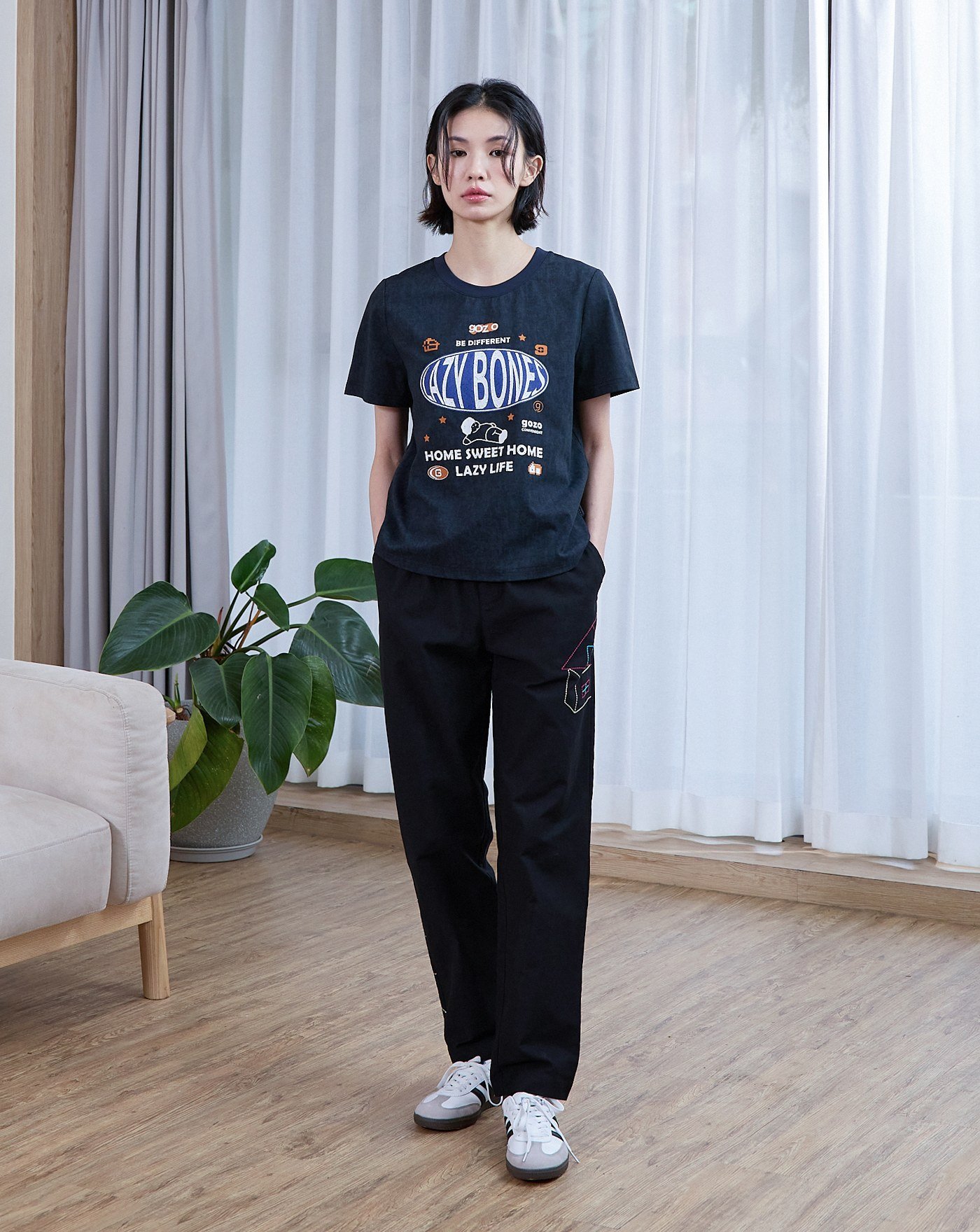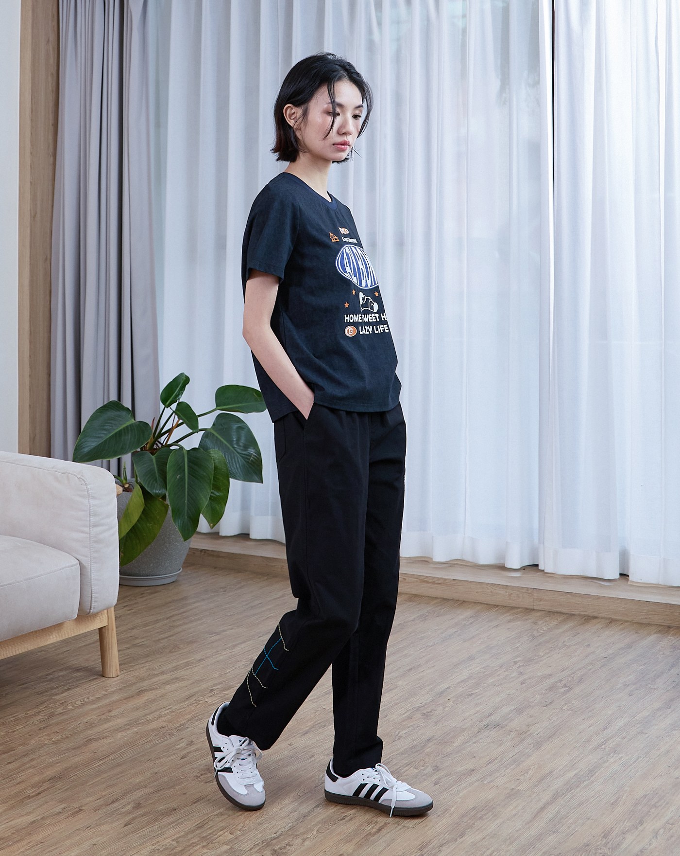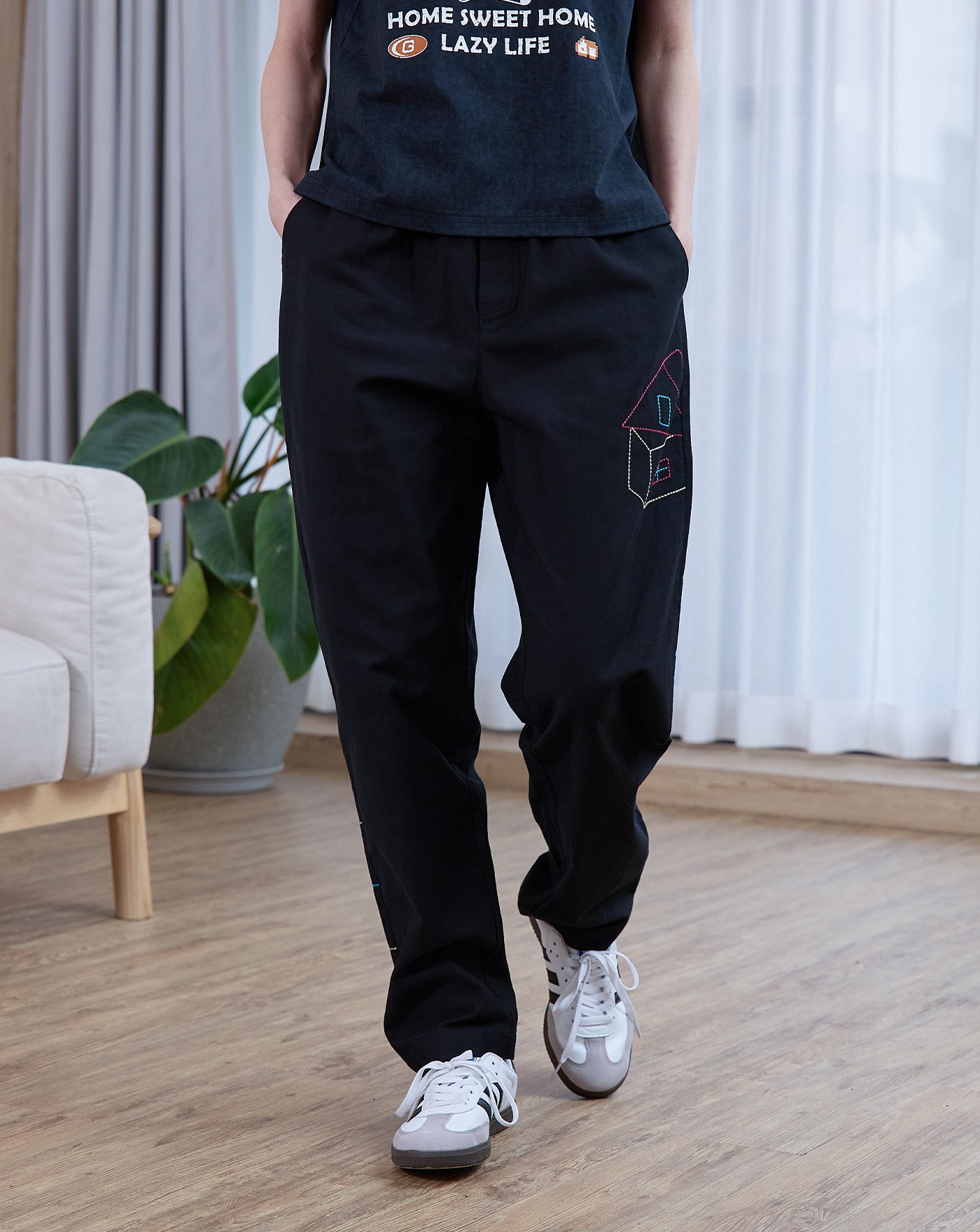 gozo幾何繡花後鬆緊窄管褲(兩色)