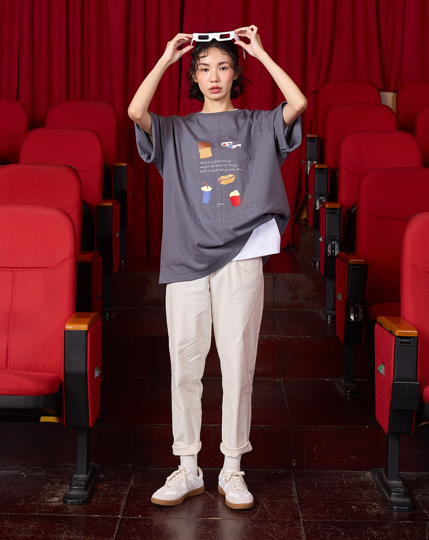 看電影的好朋友繡花長版T恤(兩色)