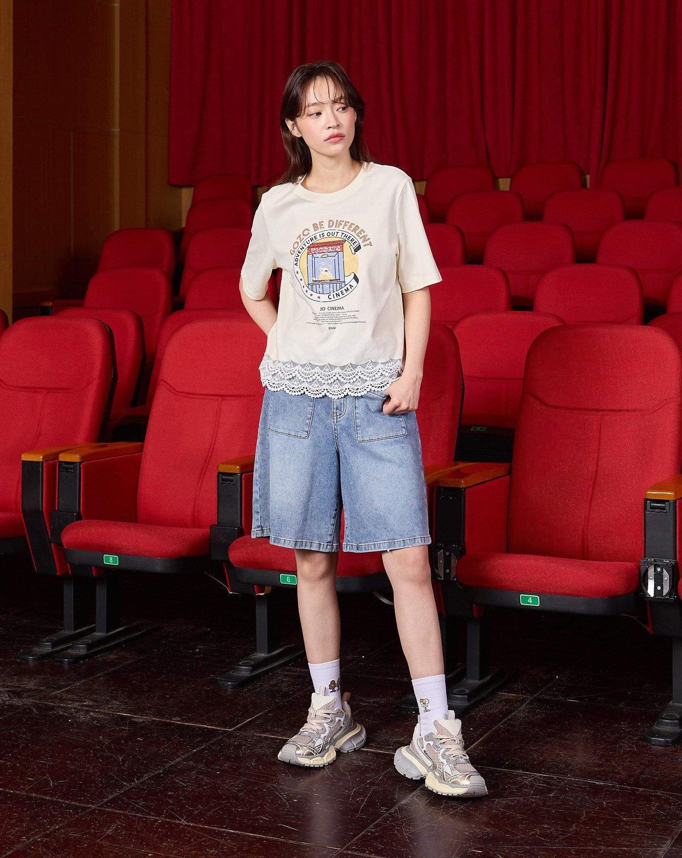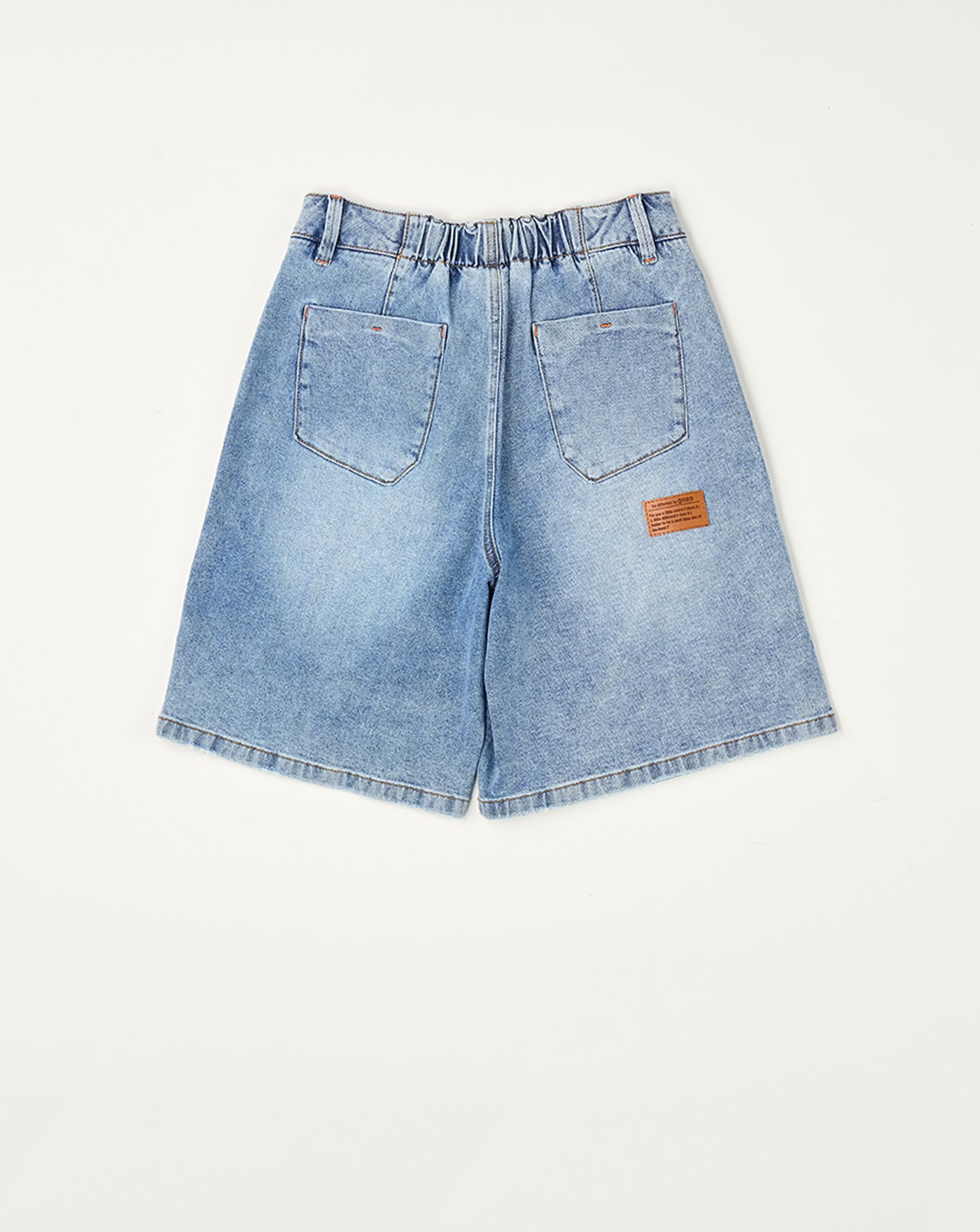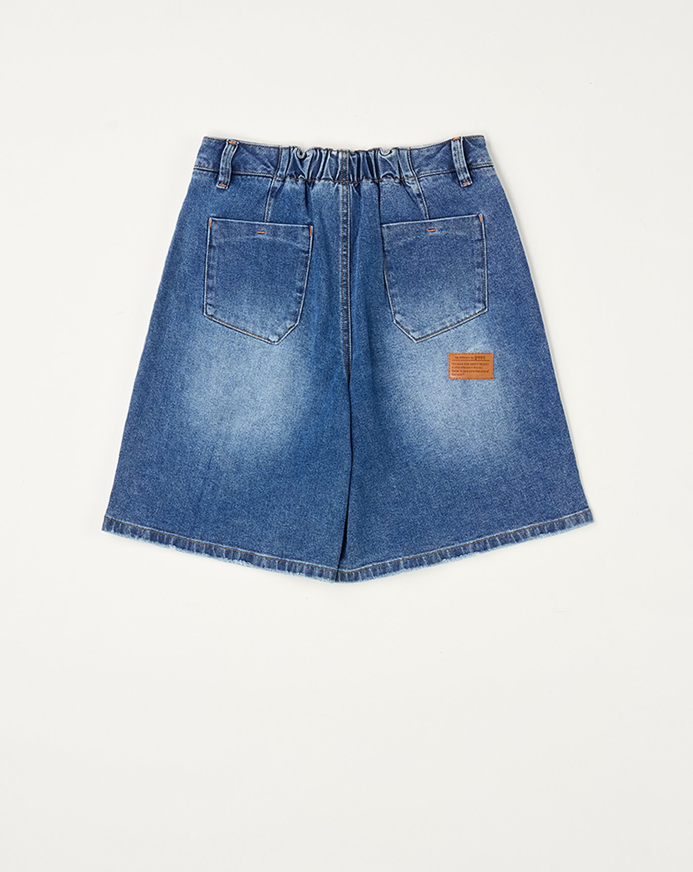 澎澎水洗牛仔鬆緊花苞短裙(兩色)