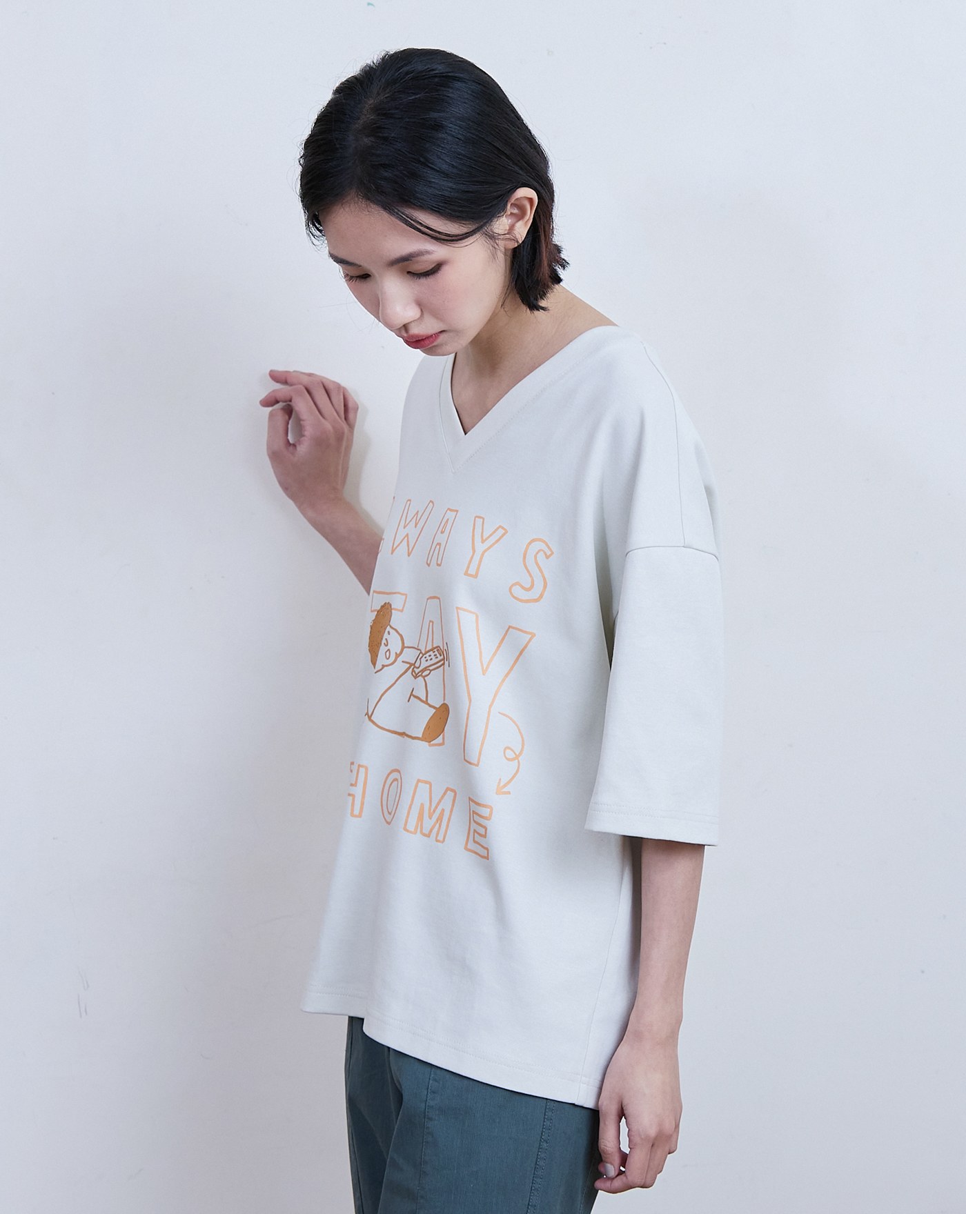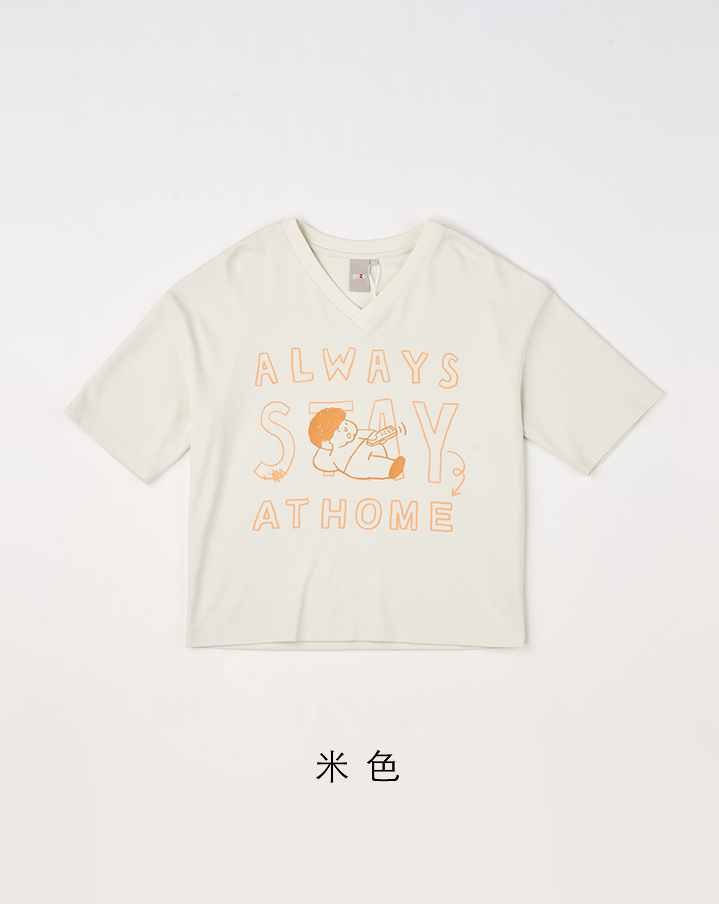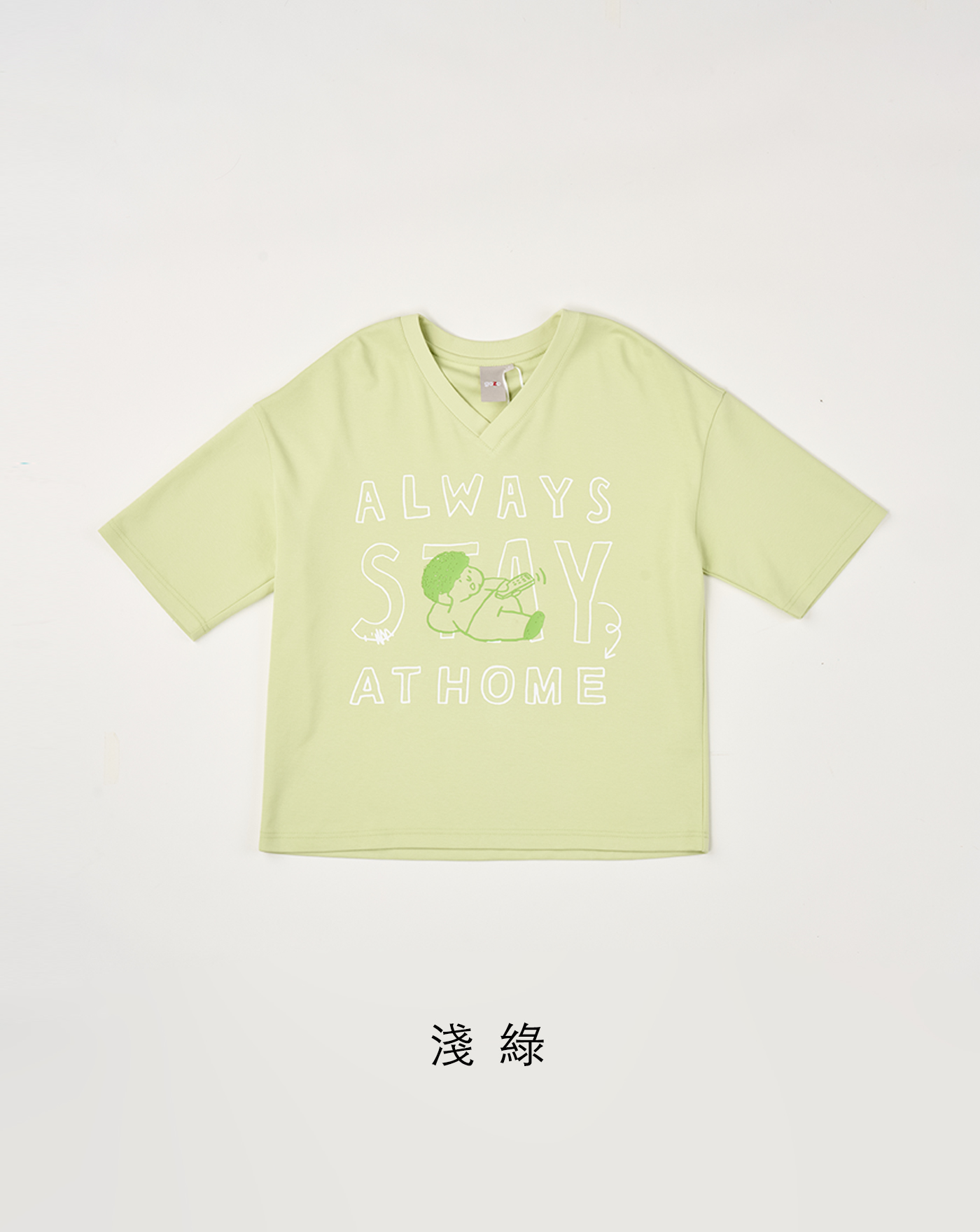 宅在家繡花異材質拼接7分袖T恤(兩色)
