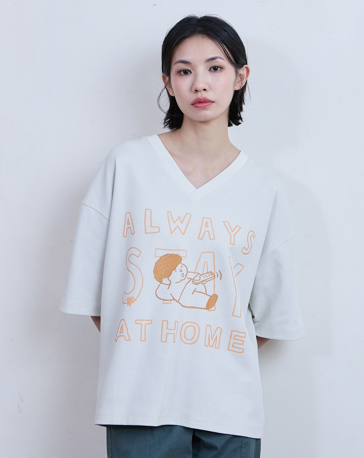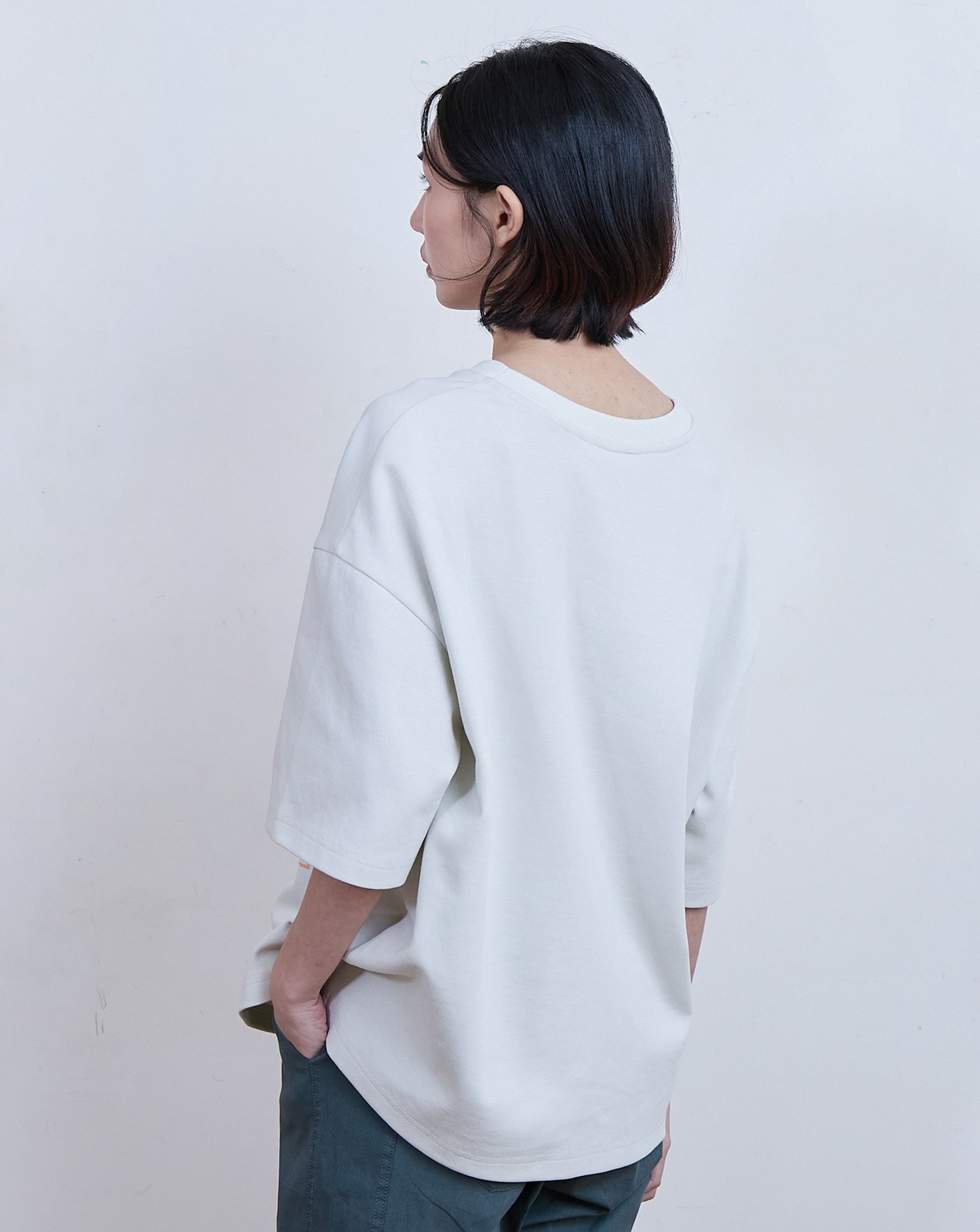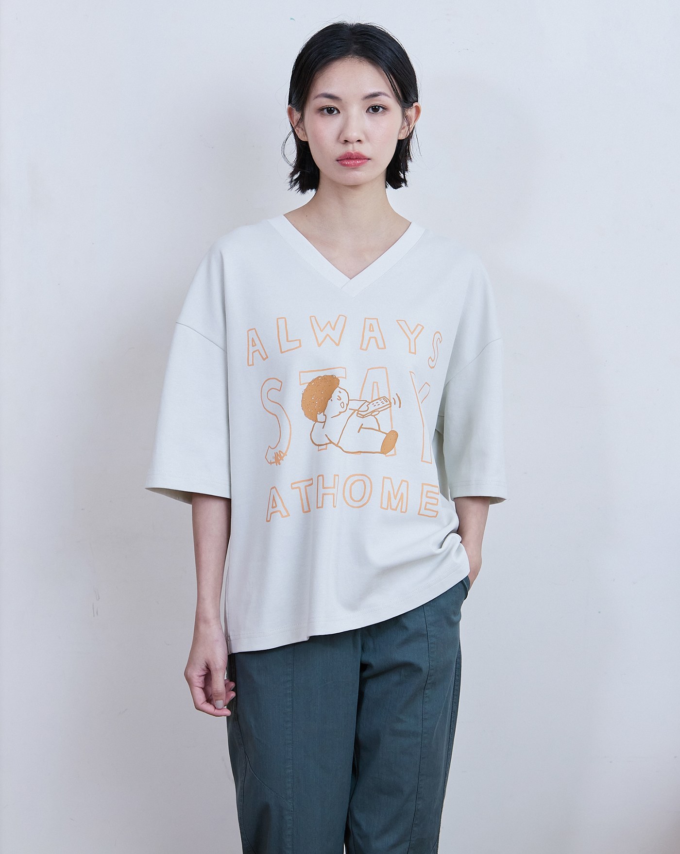 宅在家繡花異材質拼接7分袖T恤(兩色)