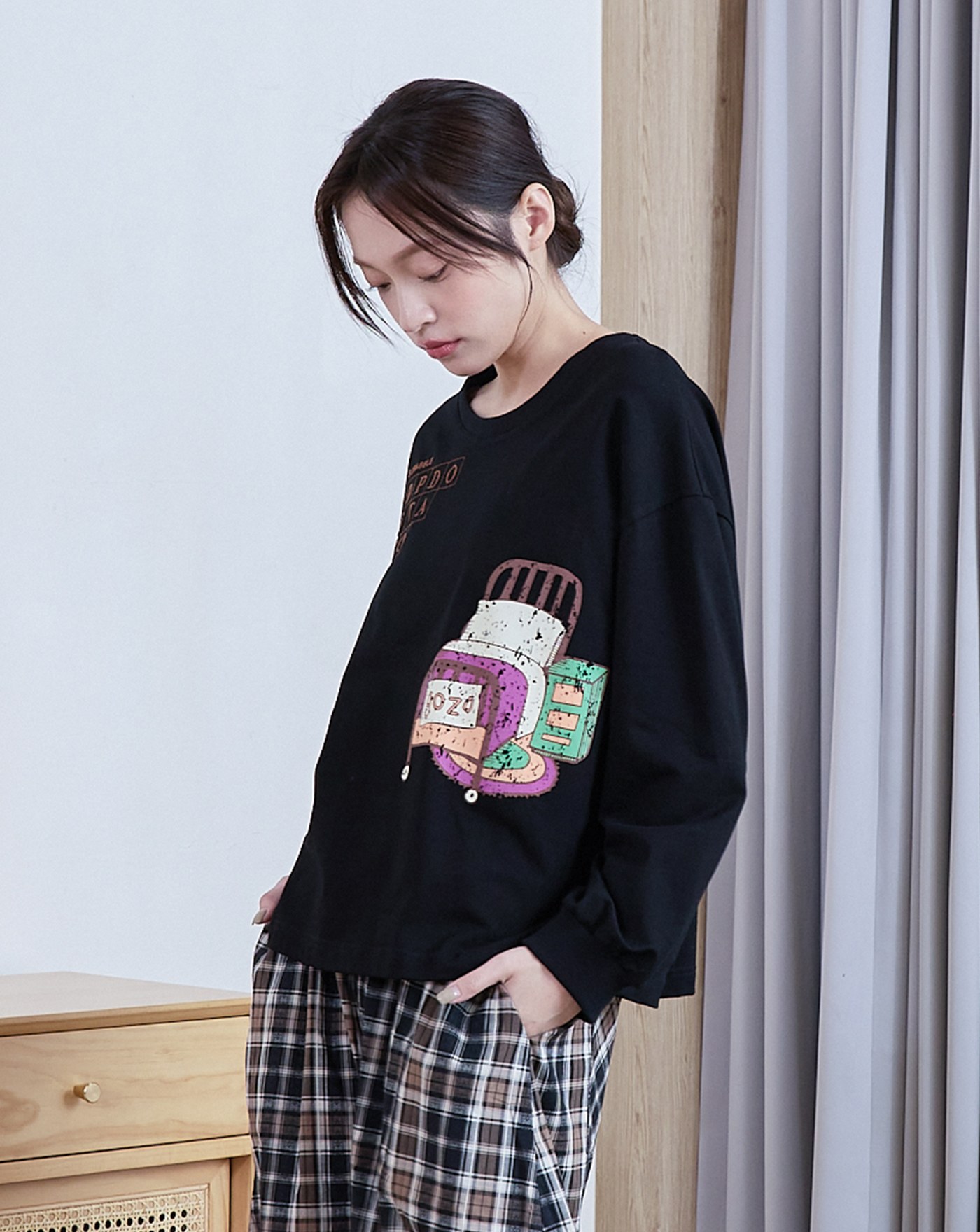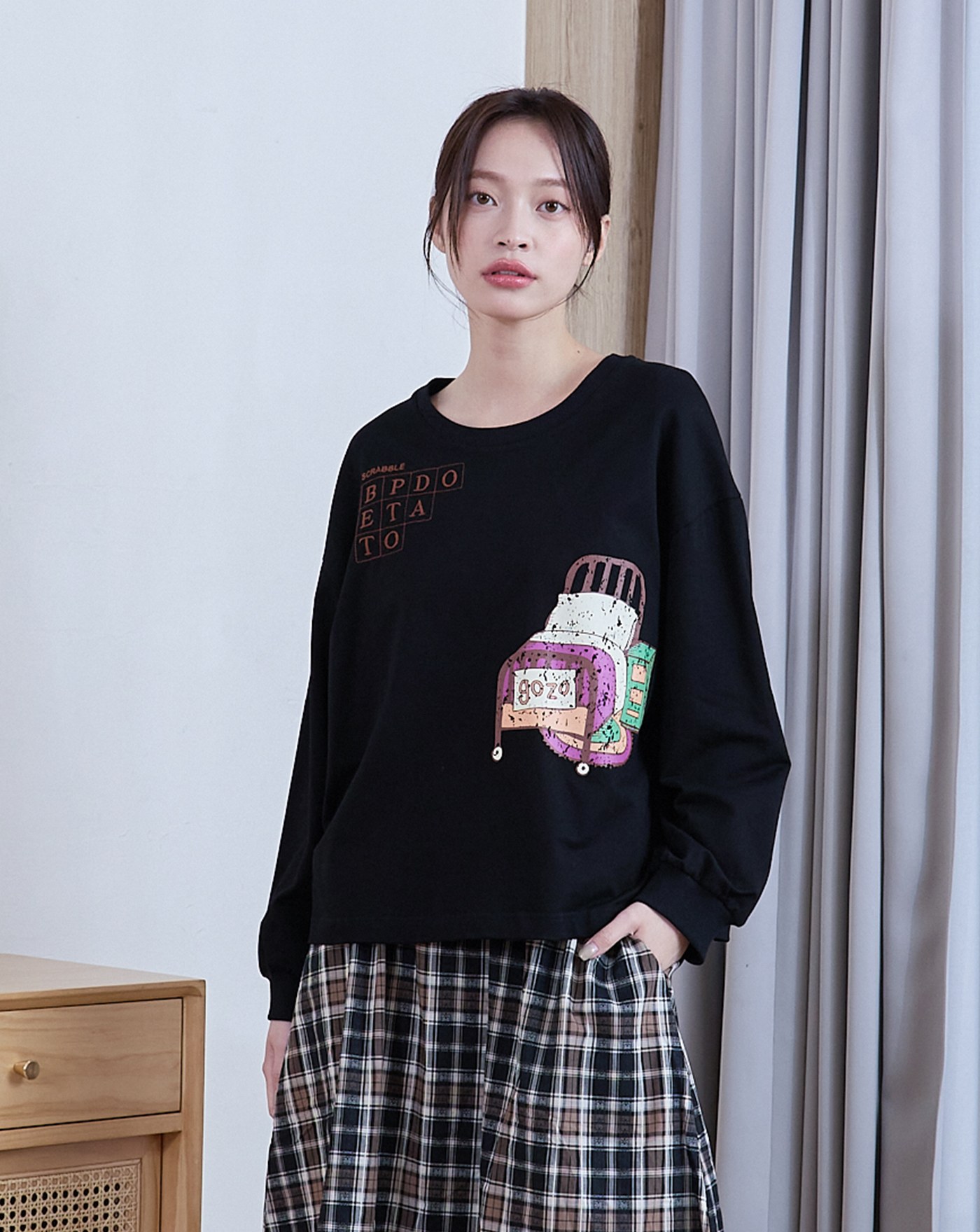 線條傢俱假兩件寬版大學T(兩色)