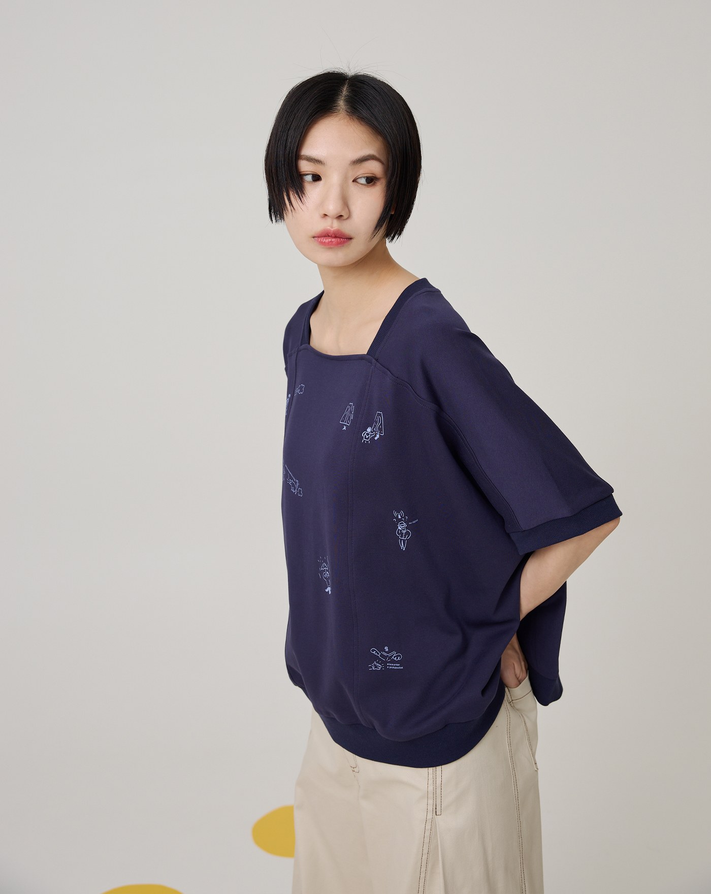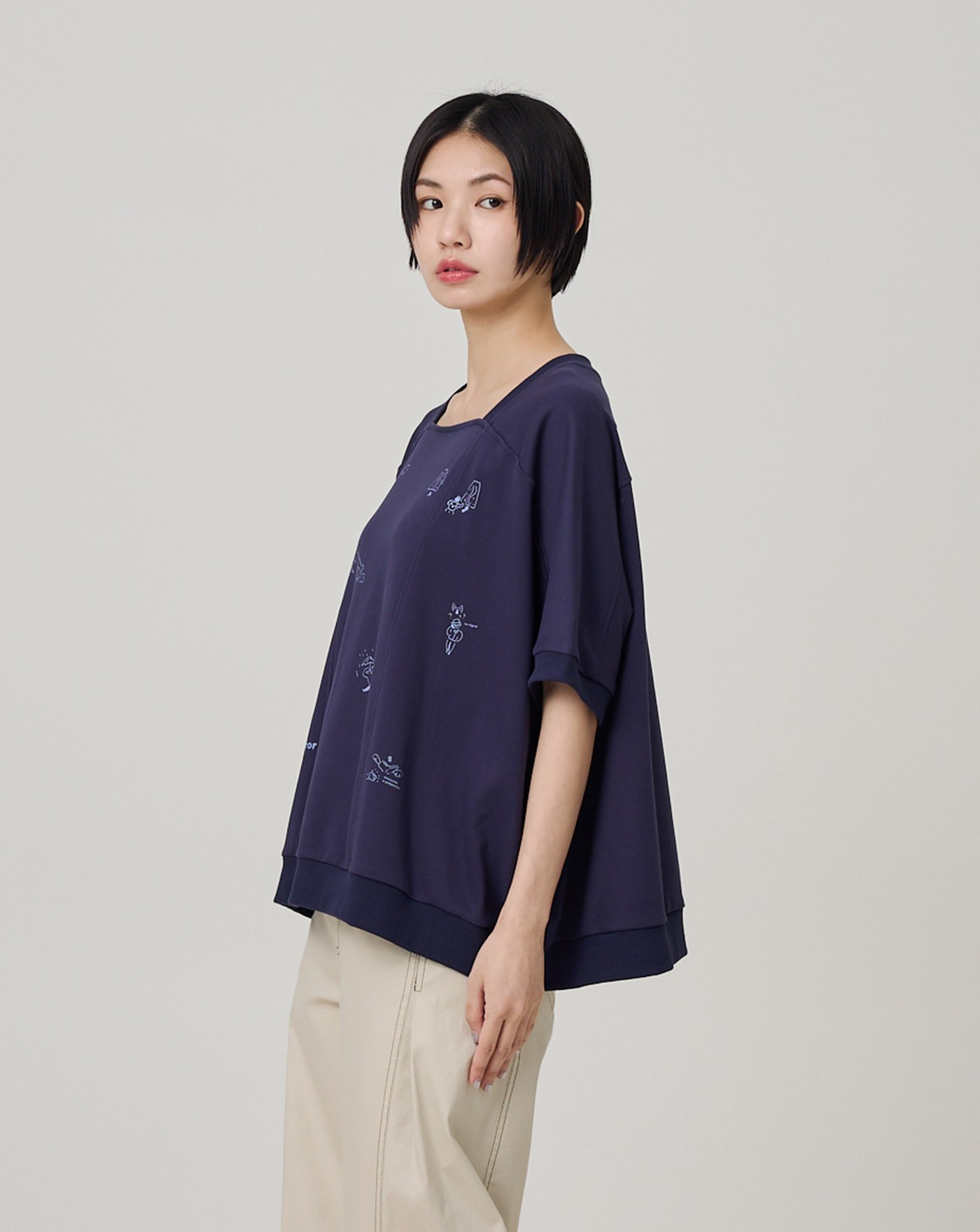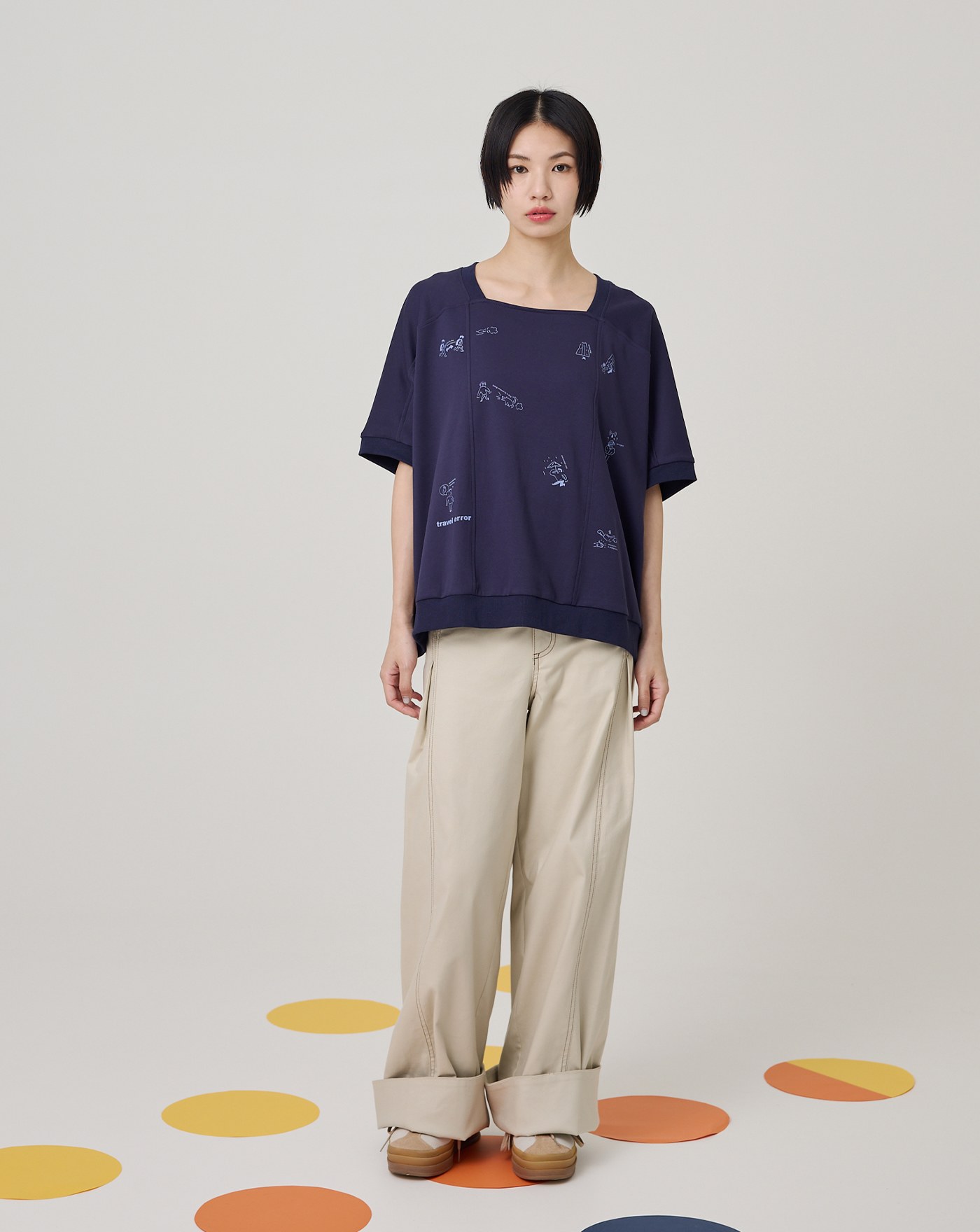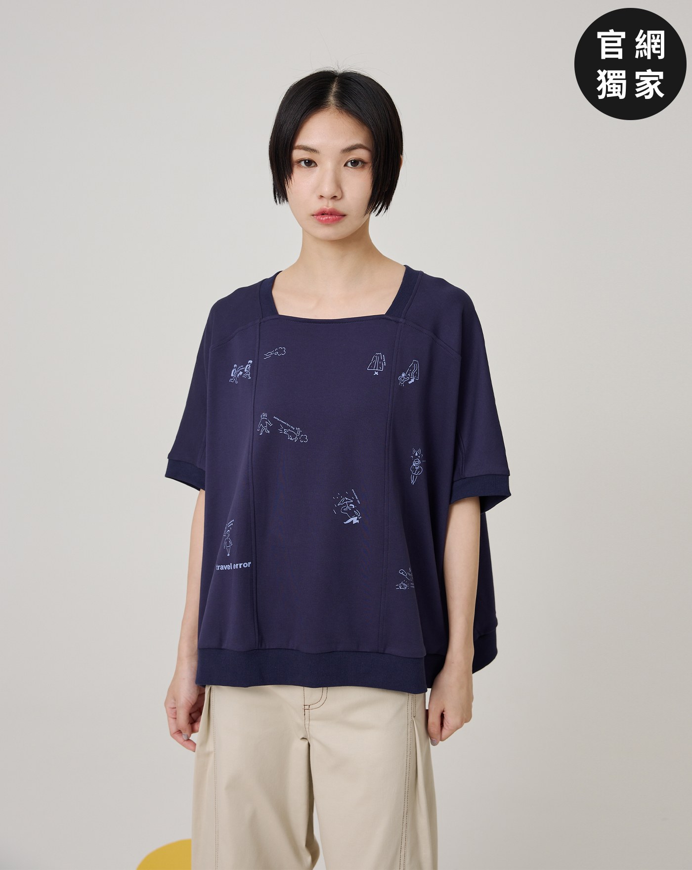 TRAVEL MAP不對稱造型連袖T恤(兩色)