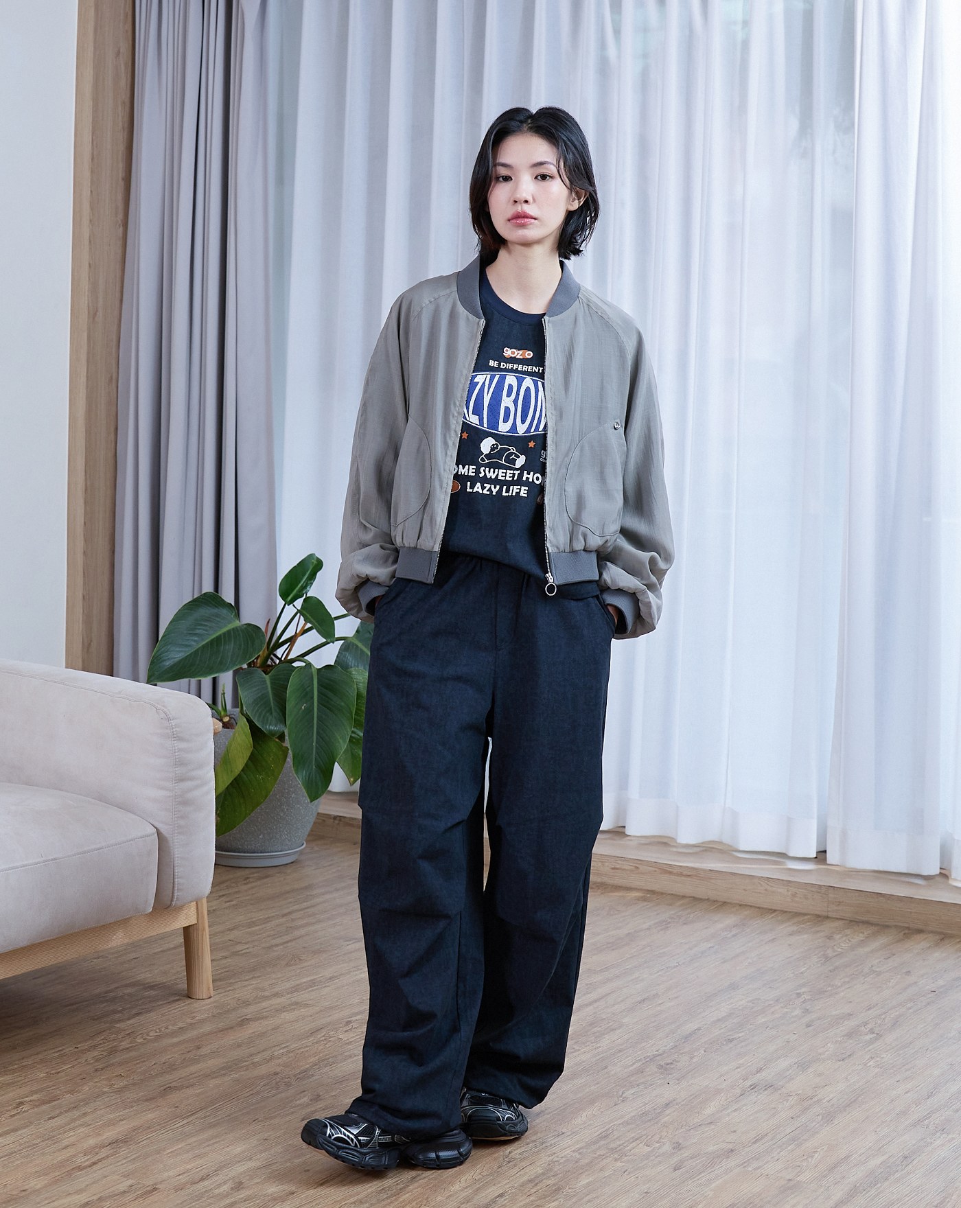 好比例水洗抽繩打褶牛仔寬褲(兩色)