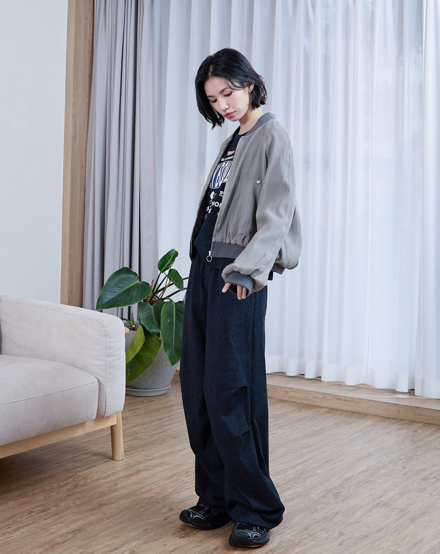特殊蠟洗針織寬鬆降落傘褲(兩色)