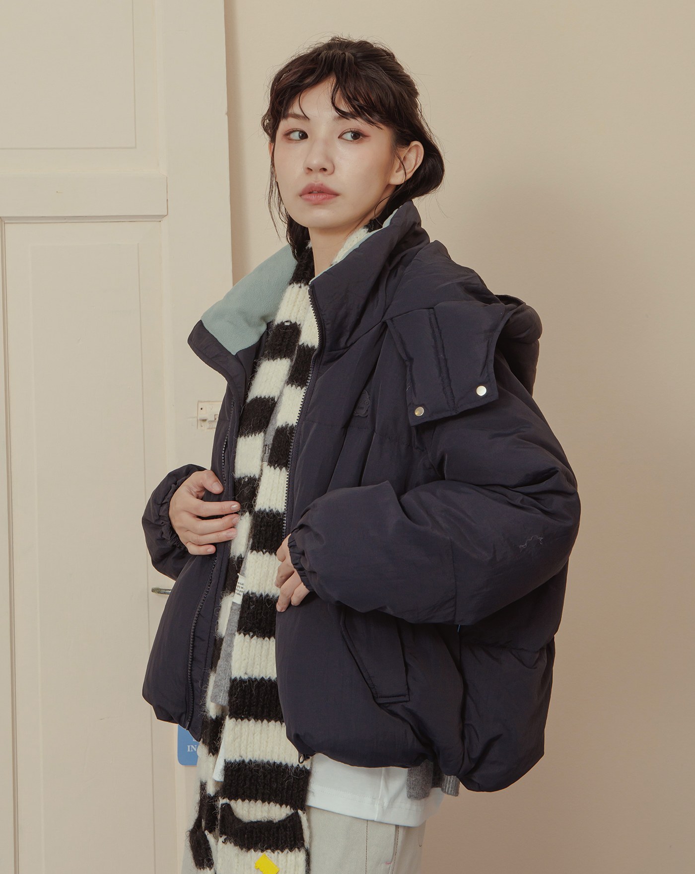 ➤顯瘦壓線擋風立領連帽長版羽絨外套(兩色)