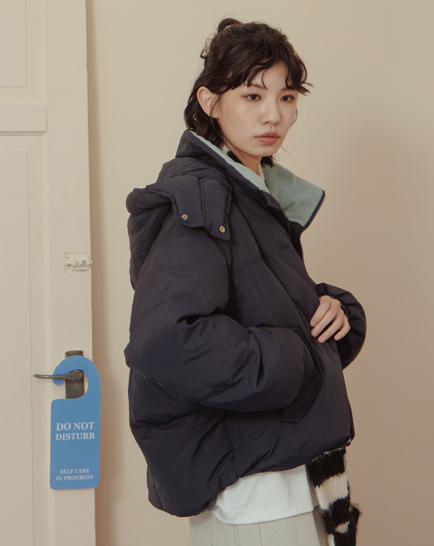 ➤防潑水雙向拉鍊可調節連帽羽絨外套(兩色)