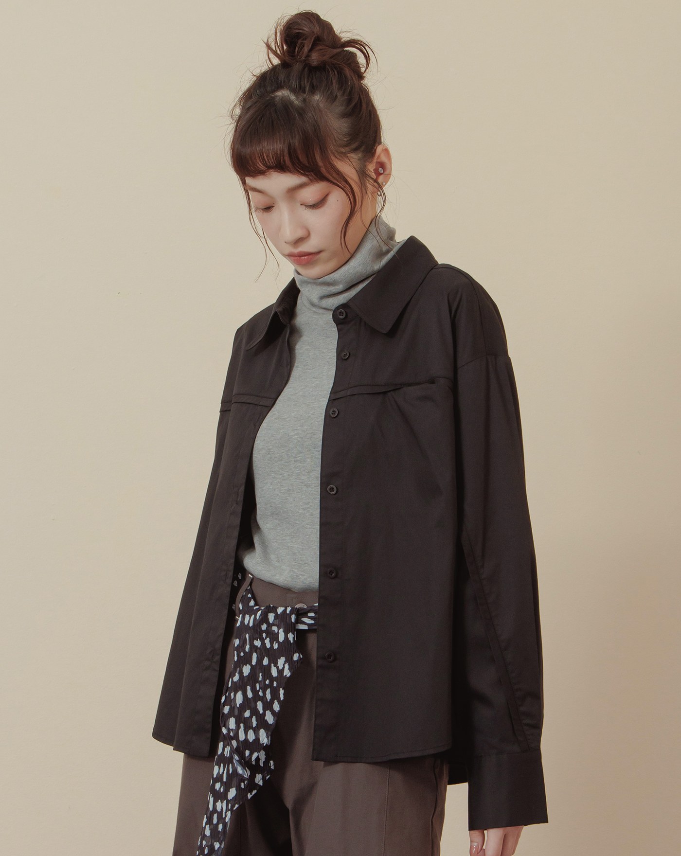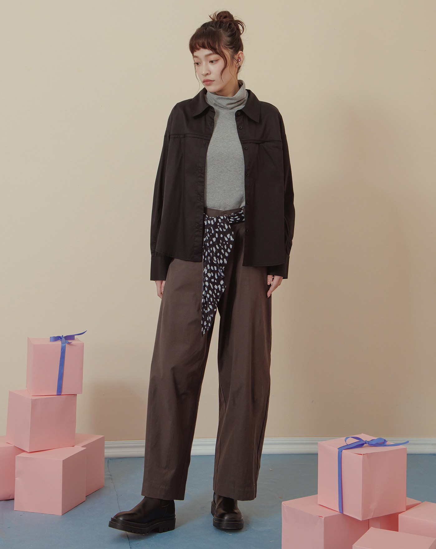 不對稱口袋顯瘦剪接廓型褲(附造型絲巾)(兩色)