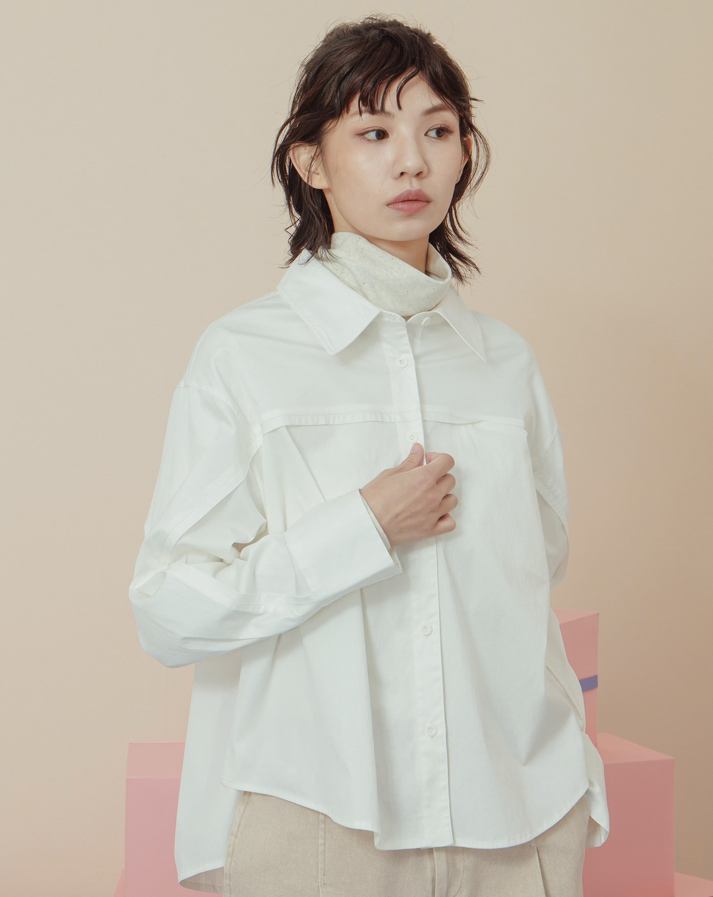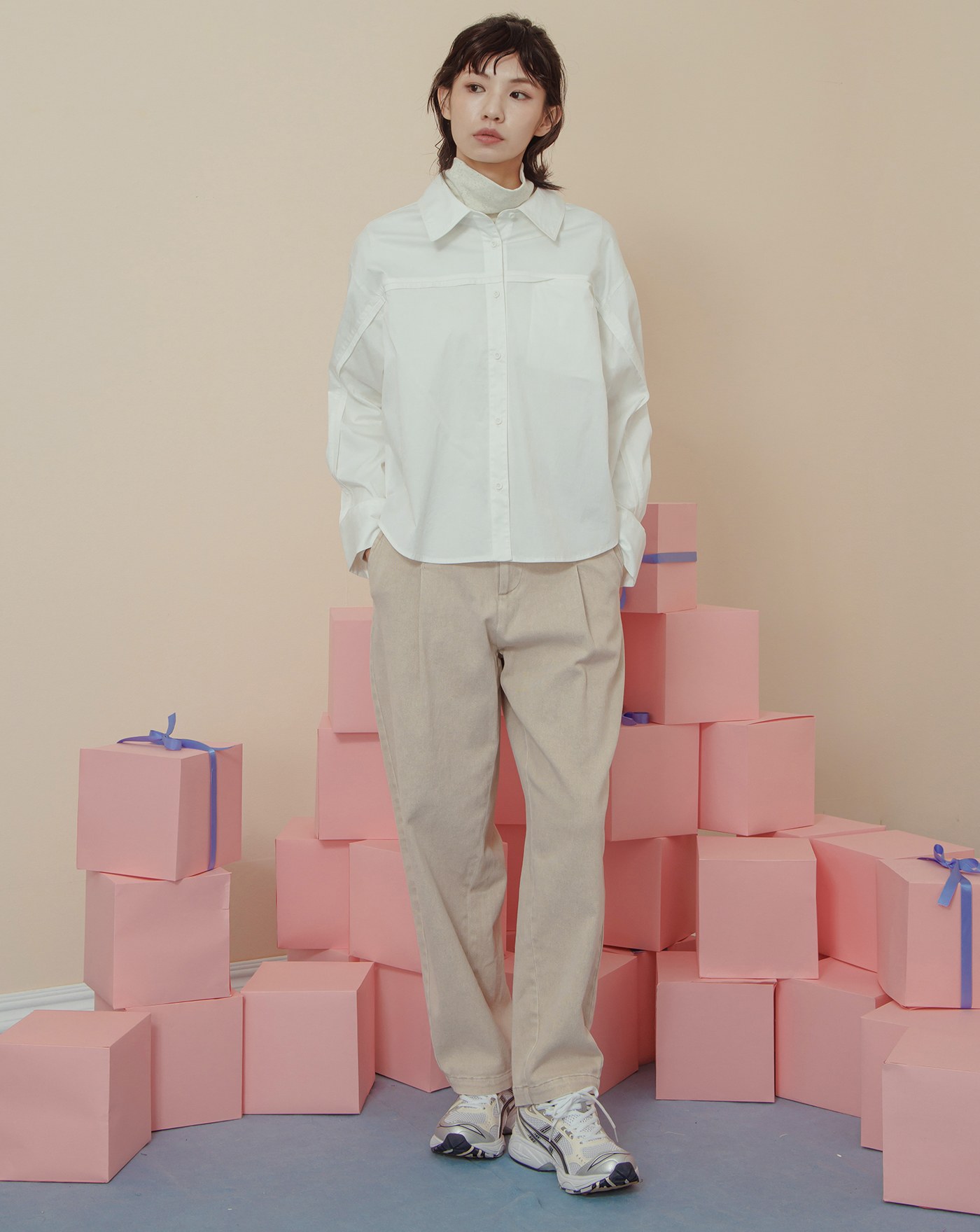 不對稱口袋顯瘦剪接廓型褲(附造型絲巾)(兩色)