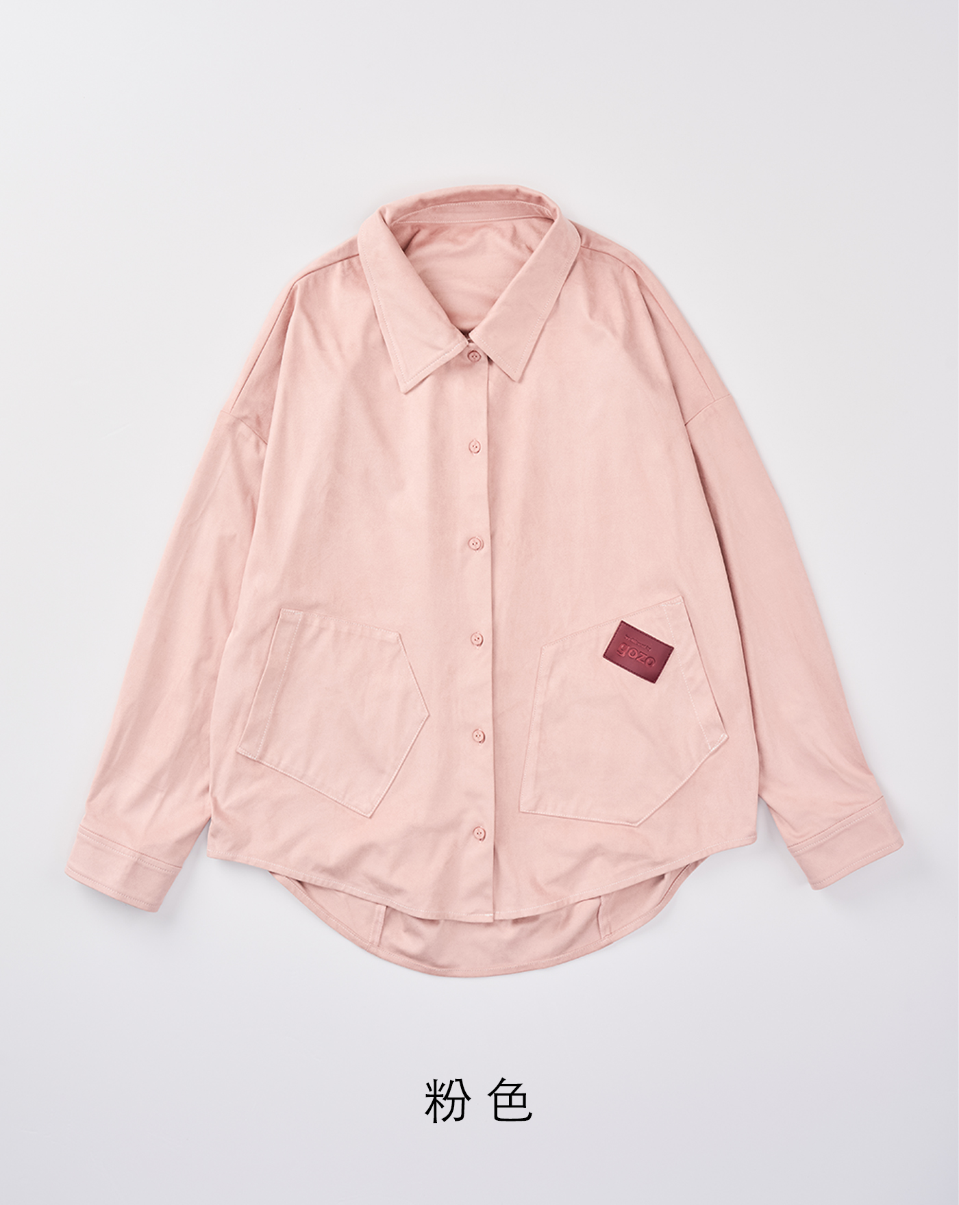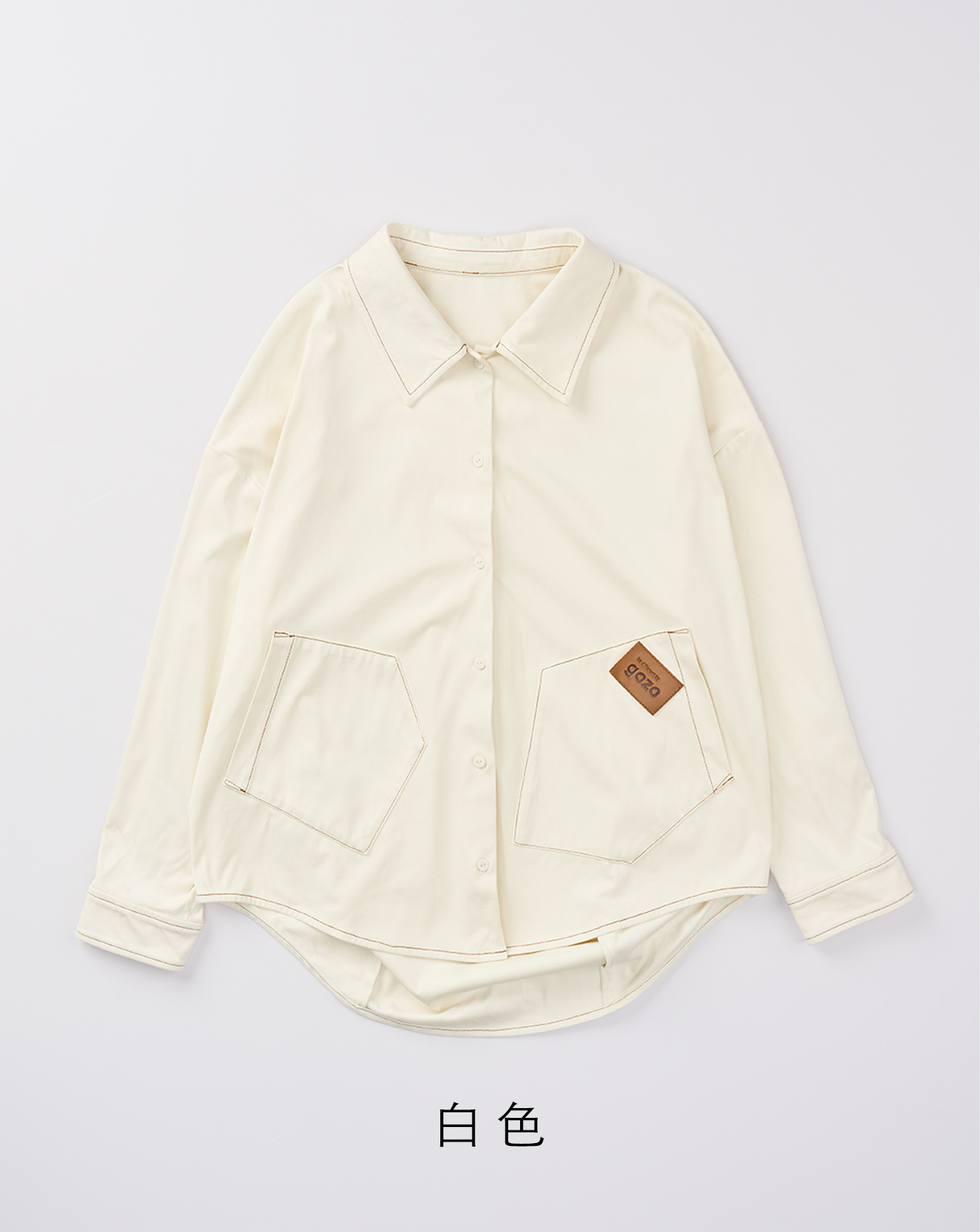 配色釦造型打褶下擺長袖襯衫(三色)