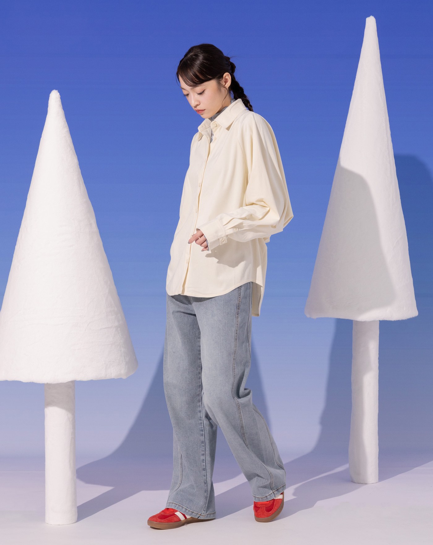 刺繡仿羊絨剪接長袖襯衫(兩色)