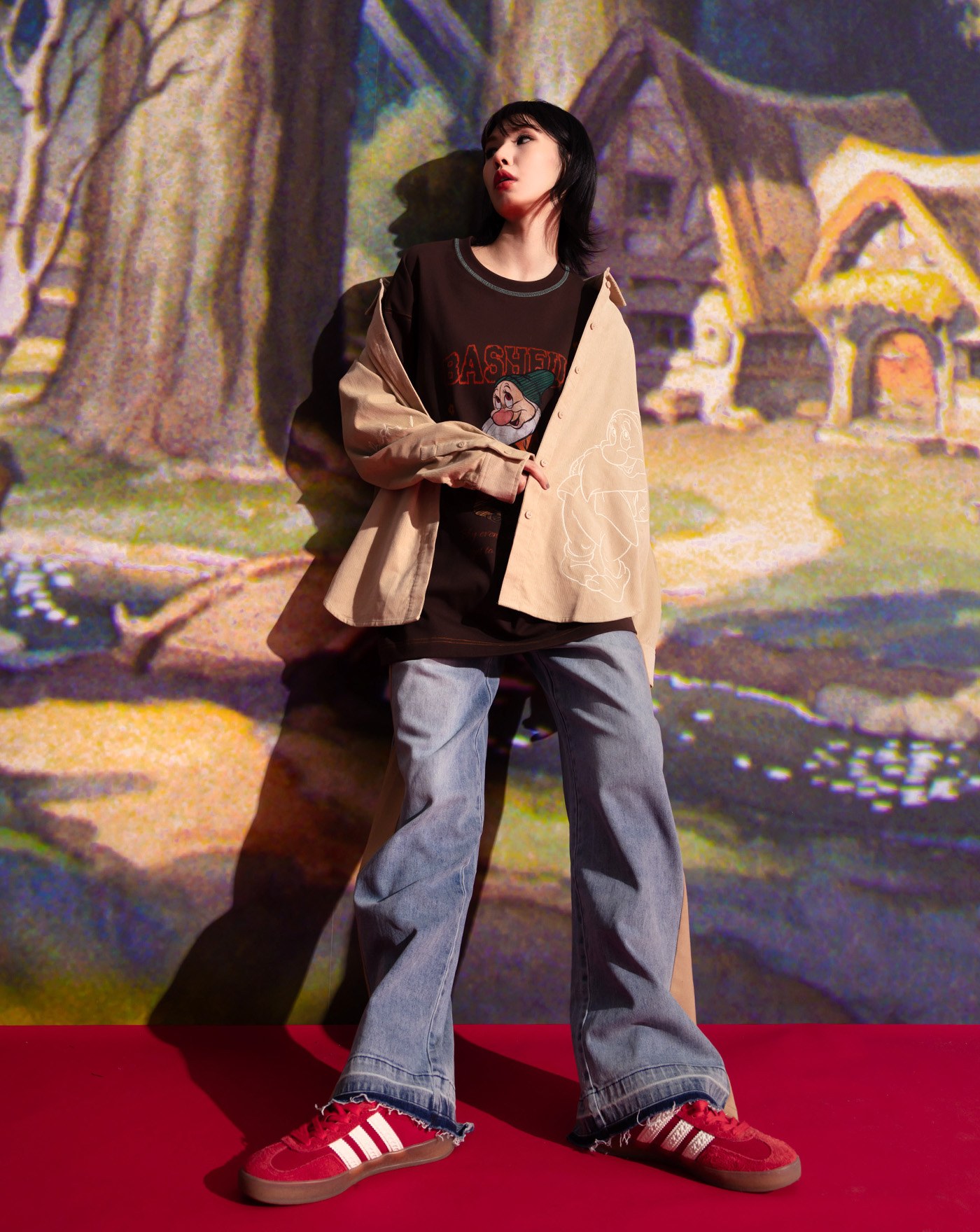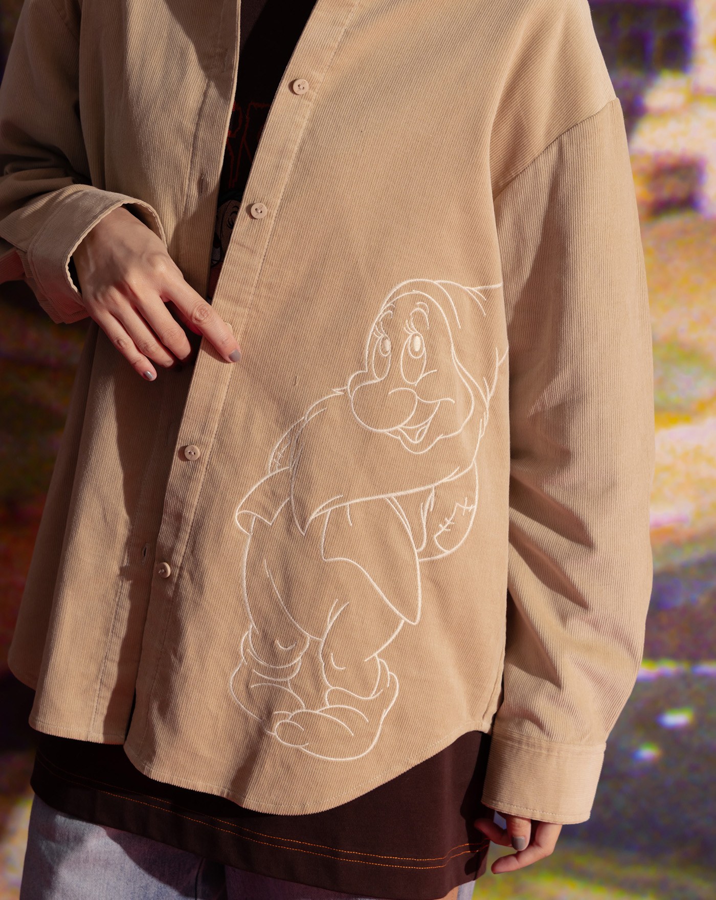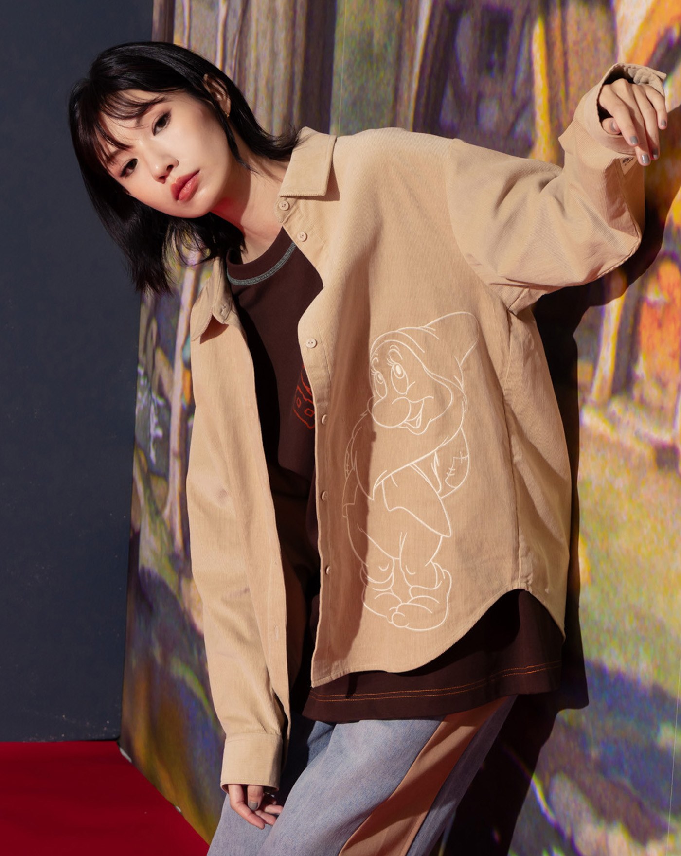 迪士尼系列 小矮人繡花復古格紋長袖襯衫(兩色)