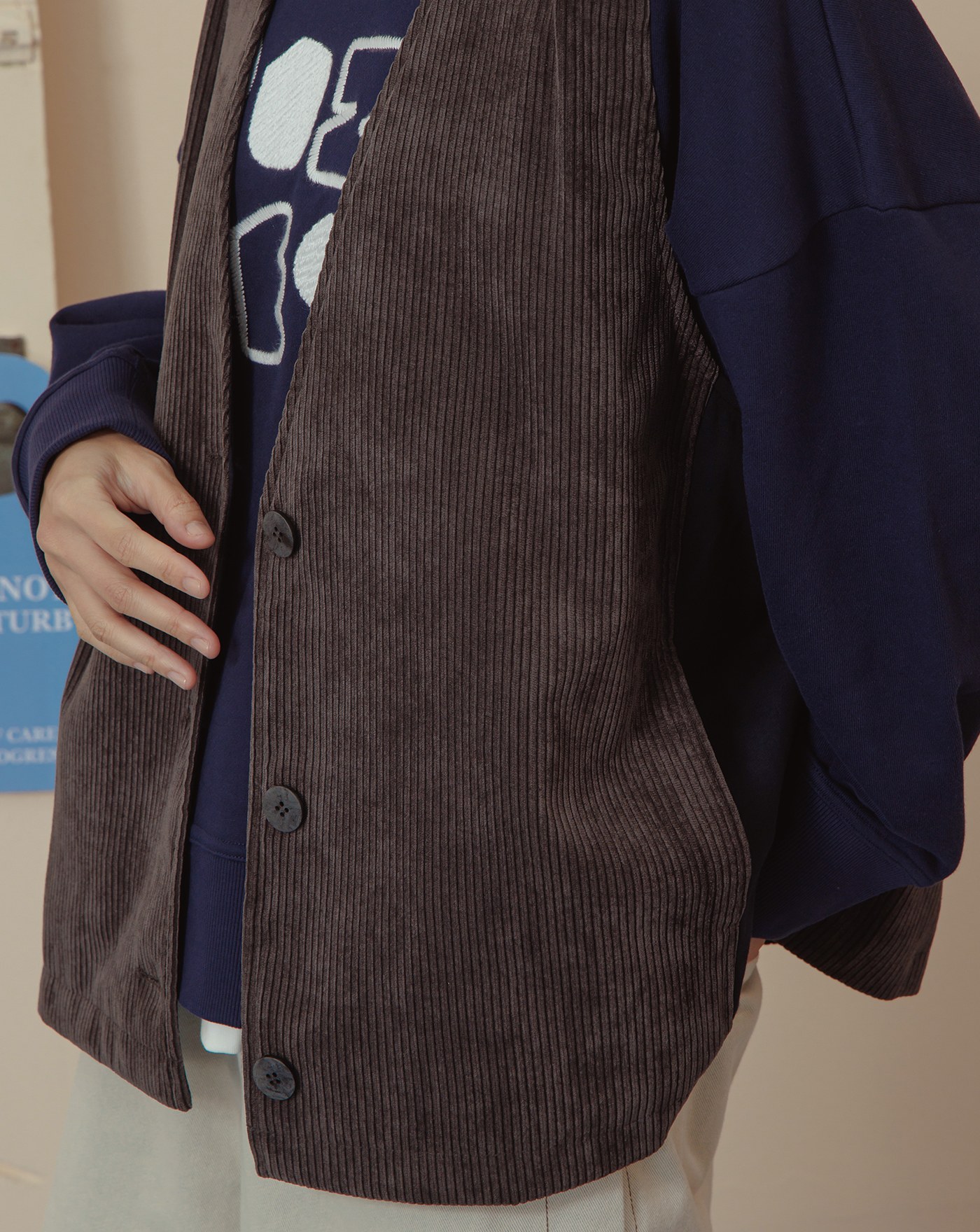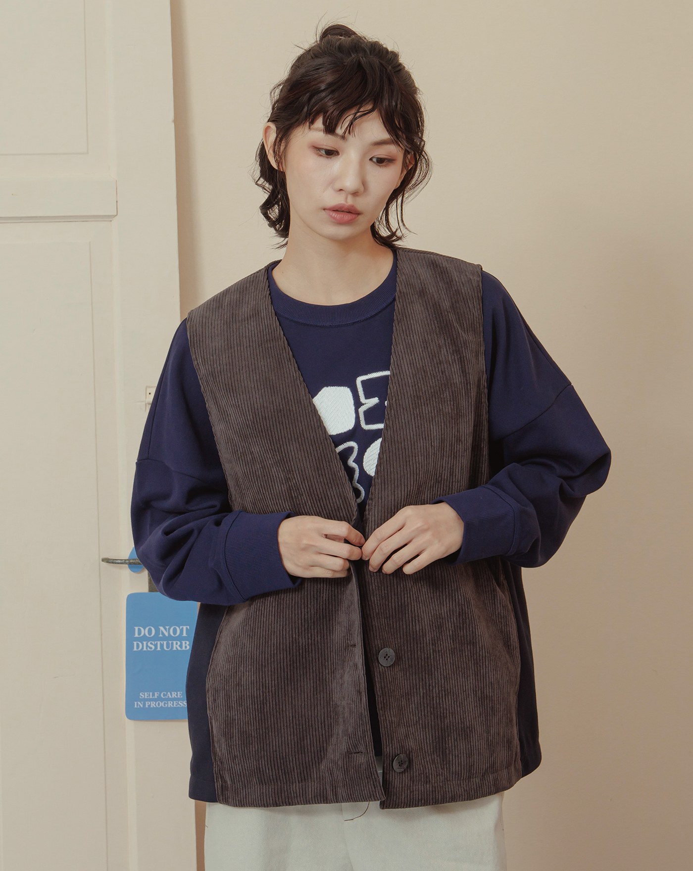 顯瘦遮臀異材質拼接開襟背心(兩色)查看原圖尺寸