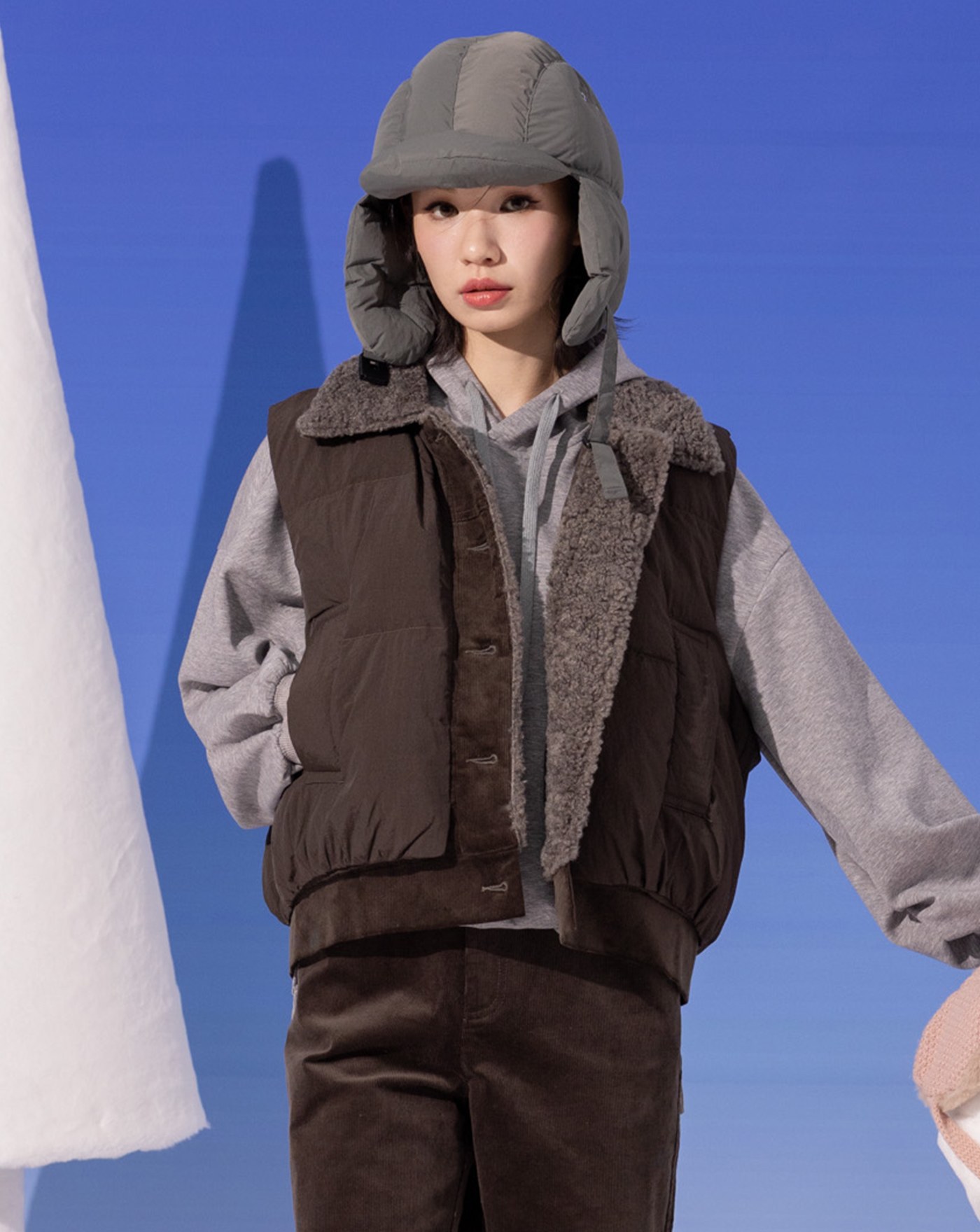 ➤仿羊絨坑條保暖拉鍊背心(兩色)