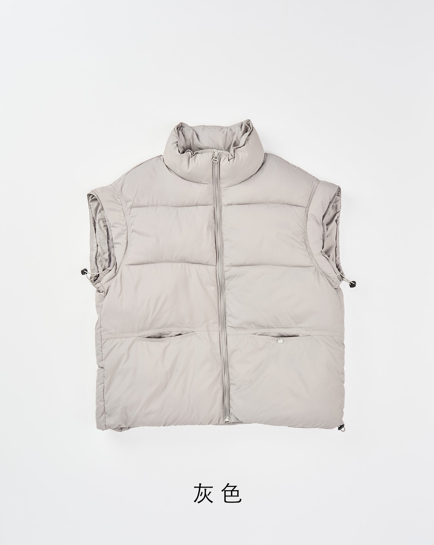 ➤大口袋立體廓型連帽羽絨背心(兩色)