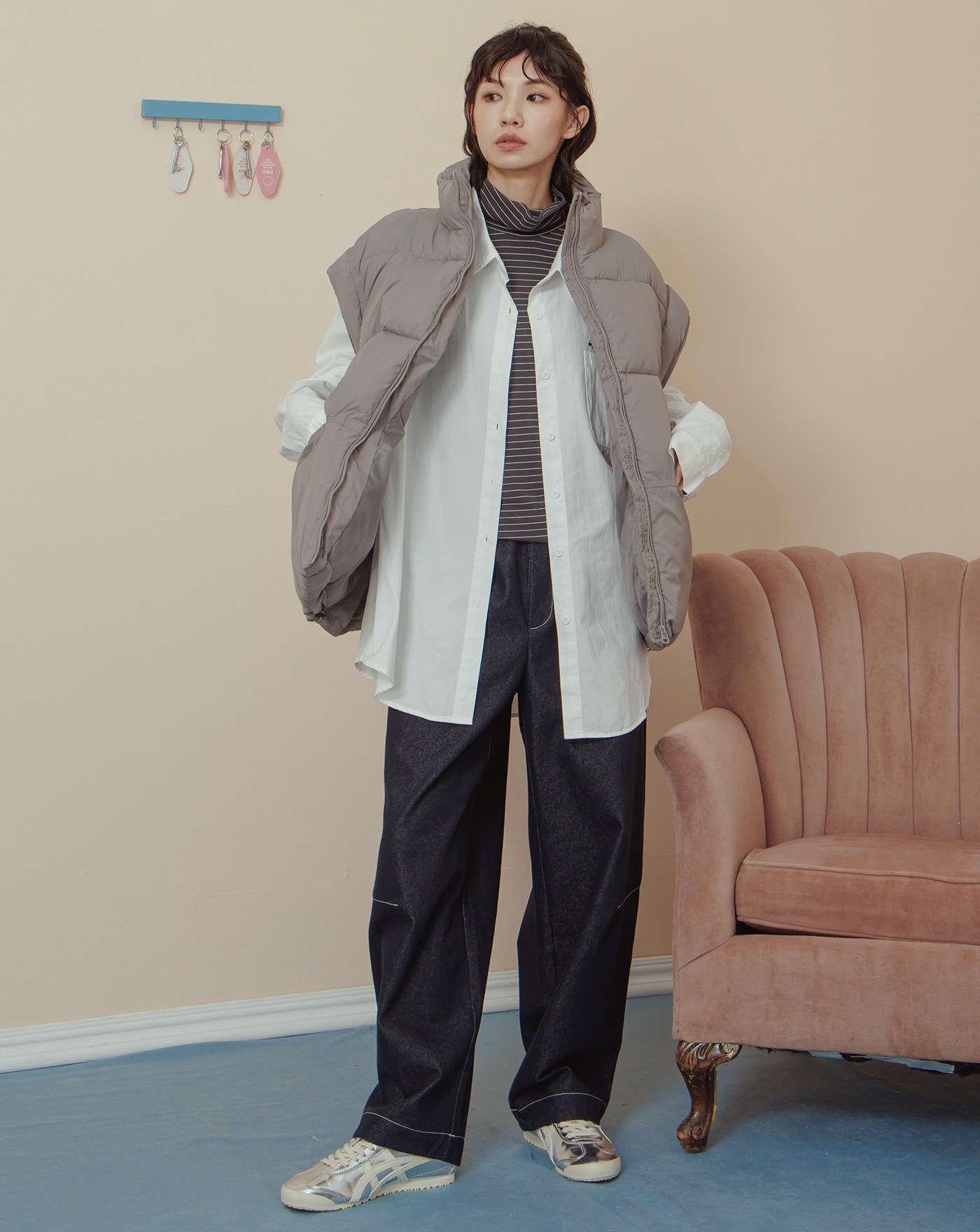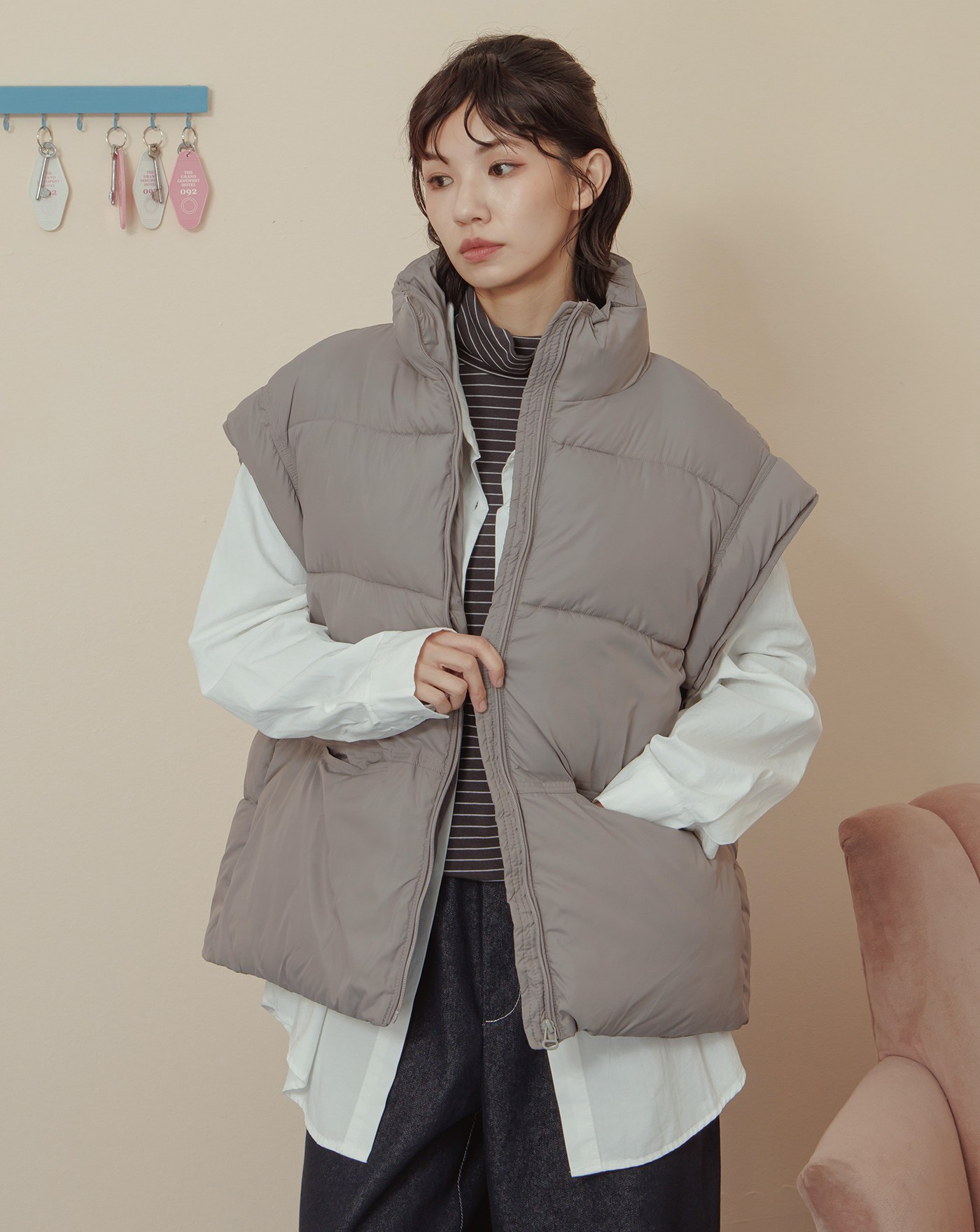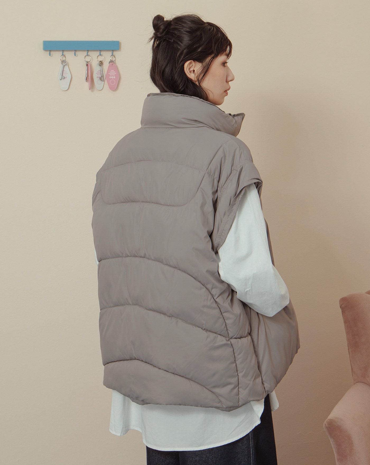 ➤大口袋立體廓型連帽羽絨背心(兩色)