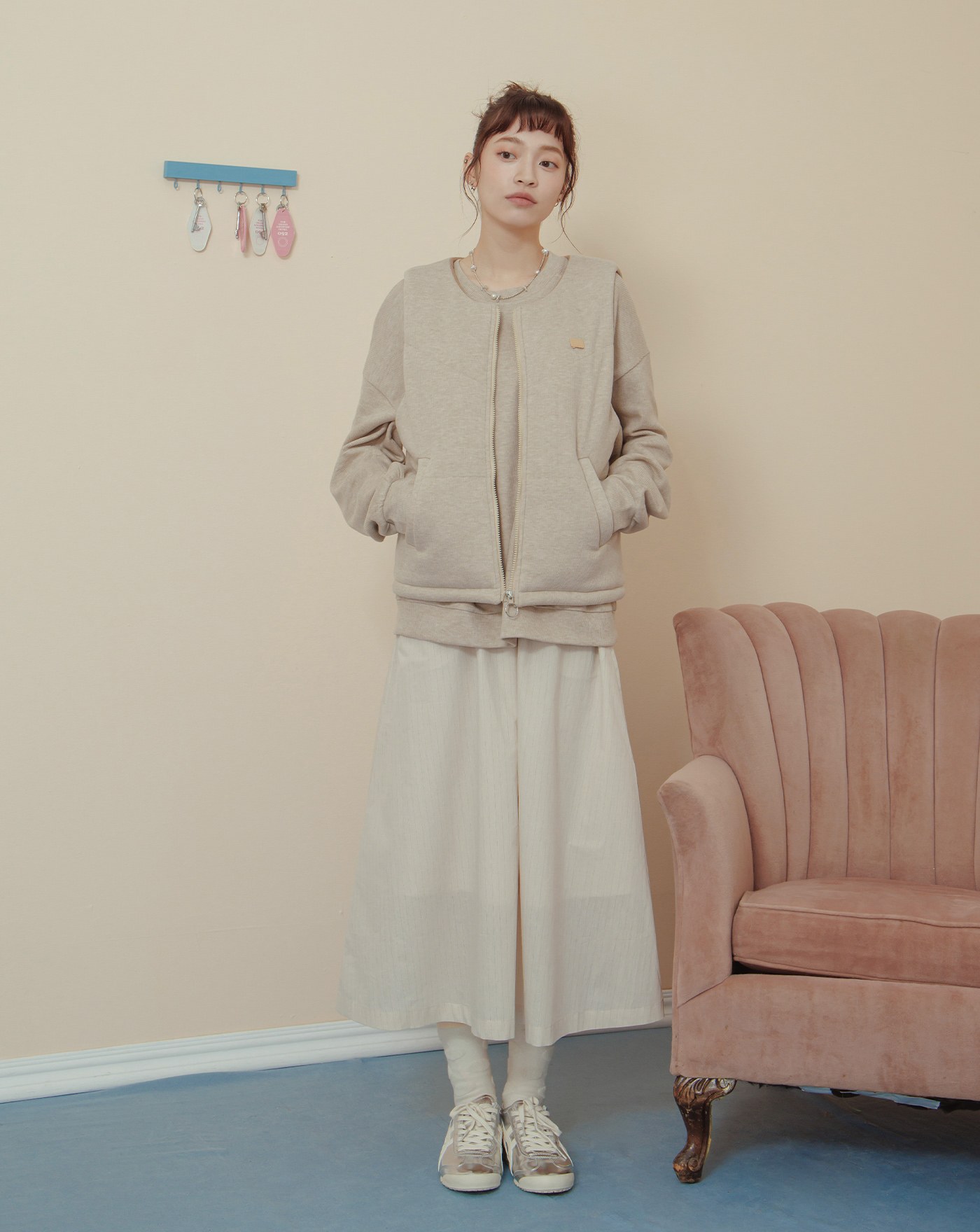 顯瘦遮臀異材質拼接開襟背心(兩色)