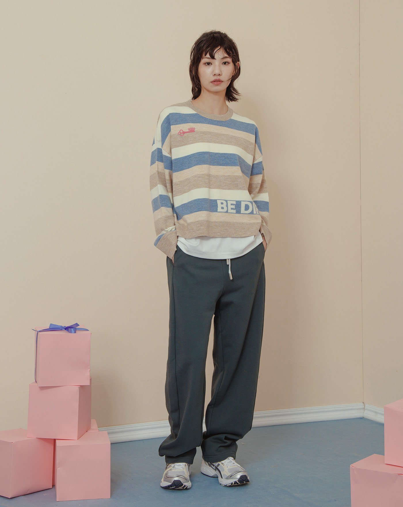 皺皺織紋彈性寬褲